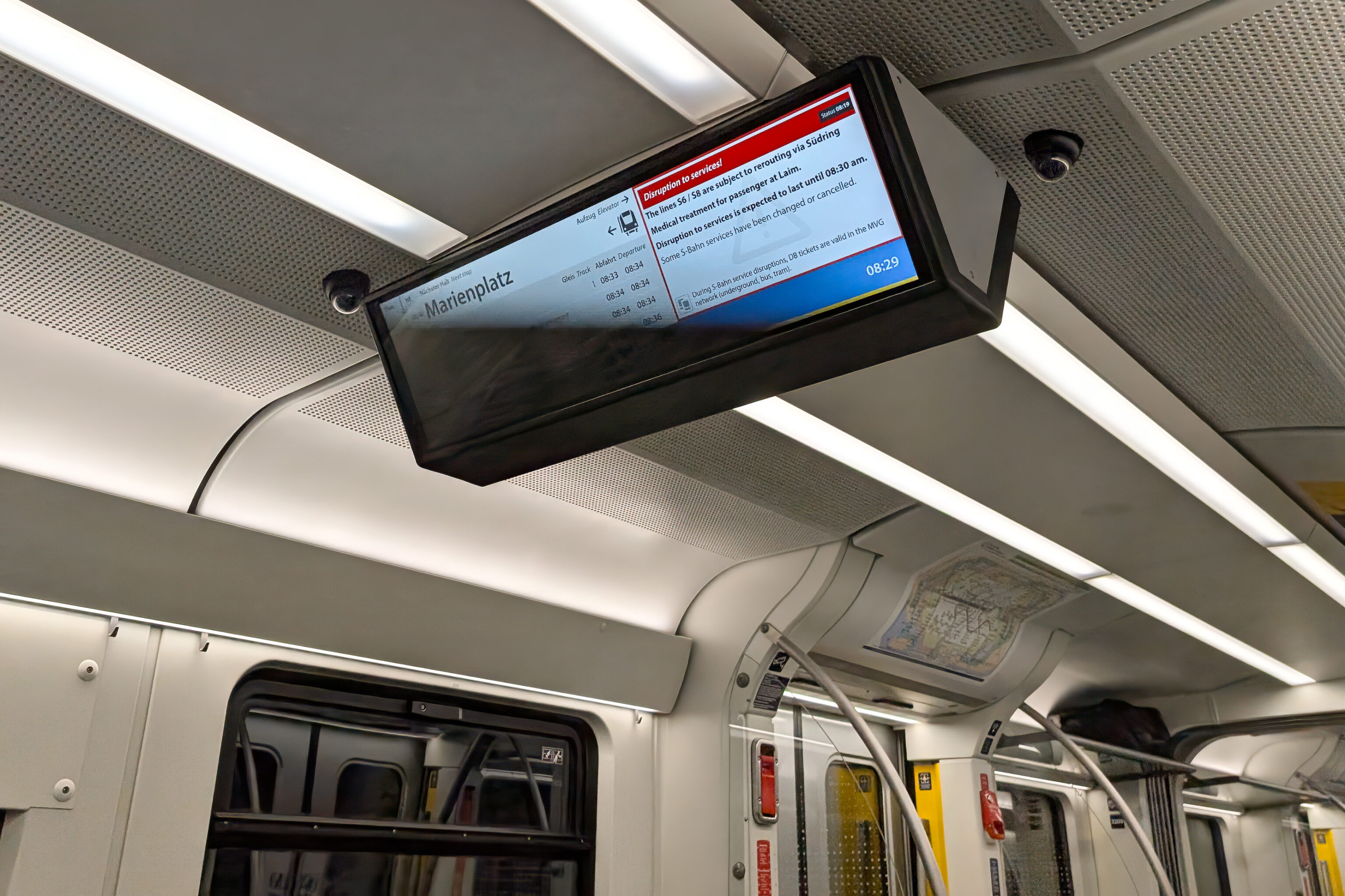 One option was to take the S1, which goes to the airport via a slightly longer route in the opposite direction. We were about to board a S1 when our delayed S8 finally arrived, around 30 minutes late!
