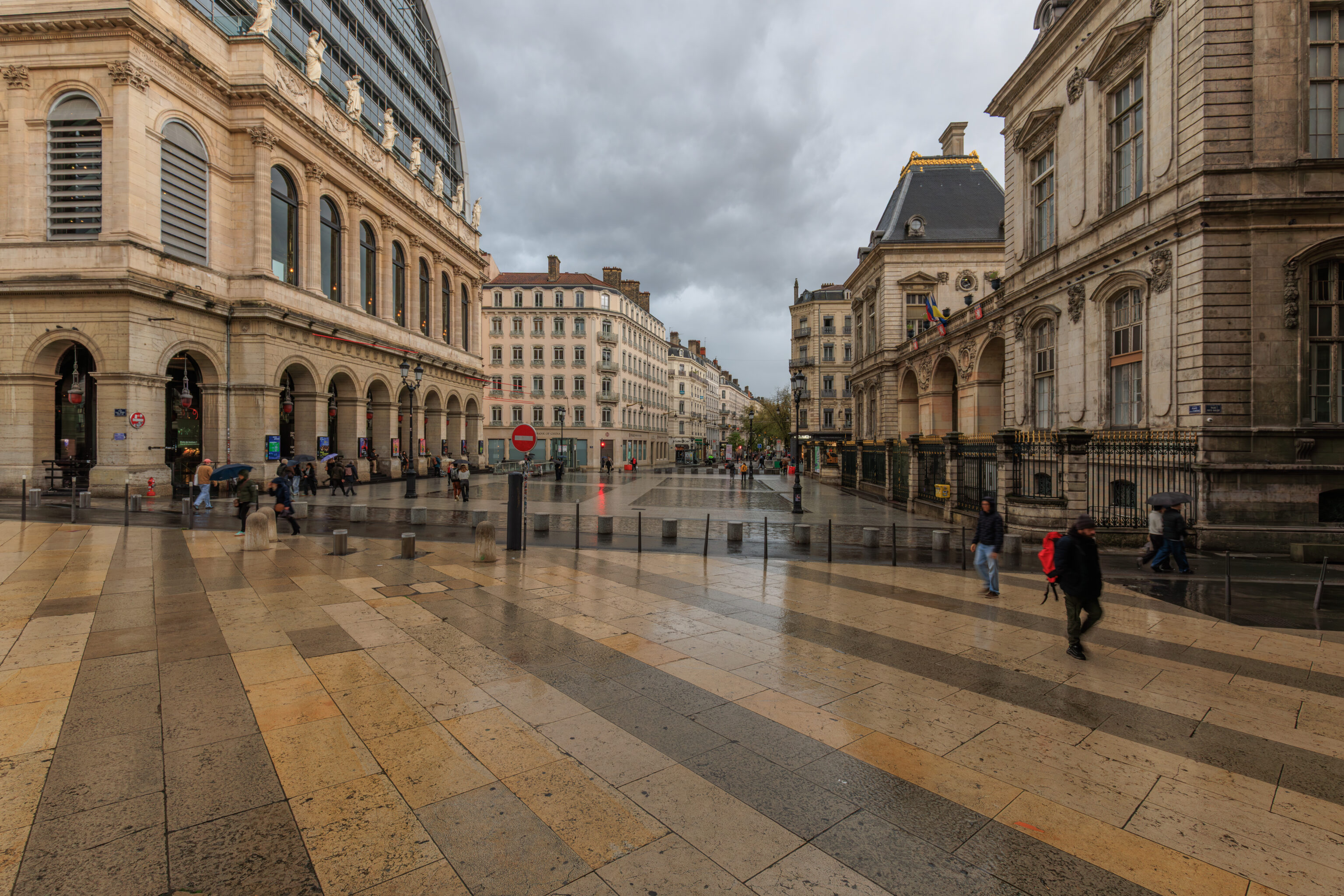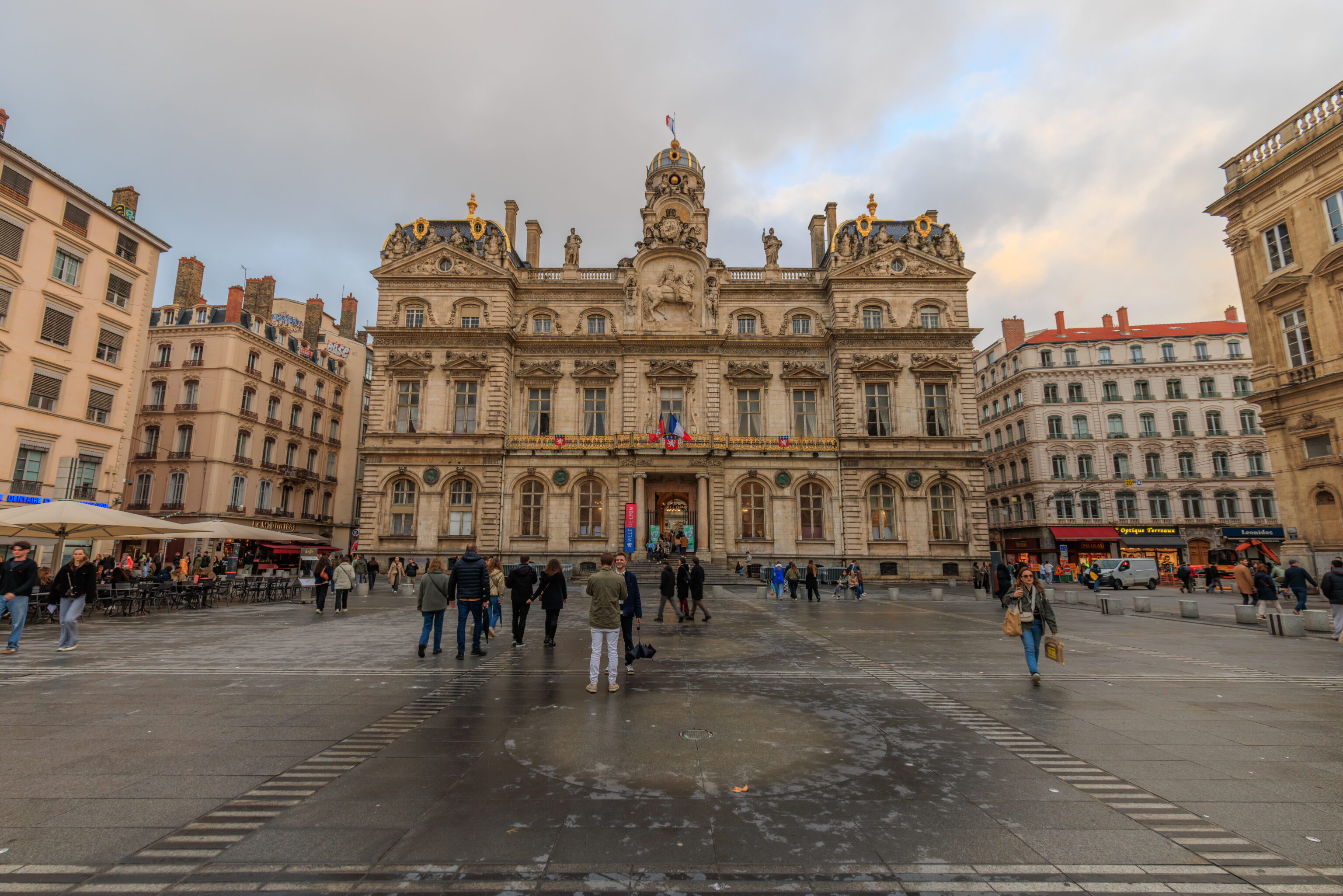 We walked over to the Bellecour Metro station and took Line A up to Hôtel de Ville L. Pradel station. We exited the station to the north of the Opéra National de Lyon, here on the left, and City Hall, on the right.
