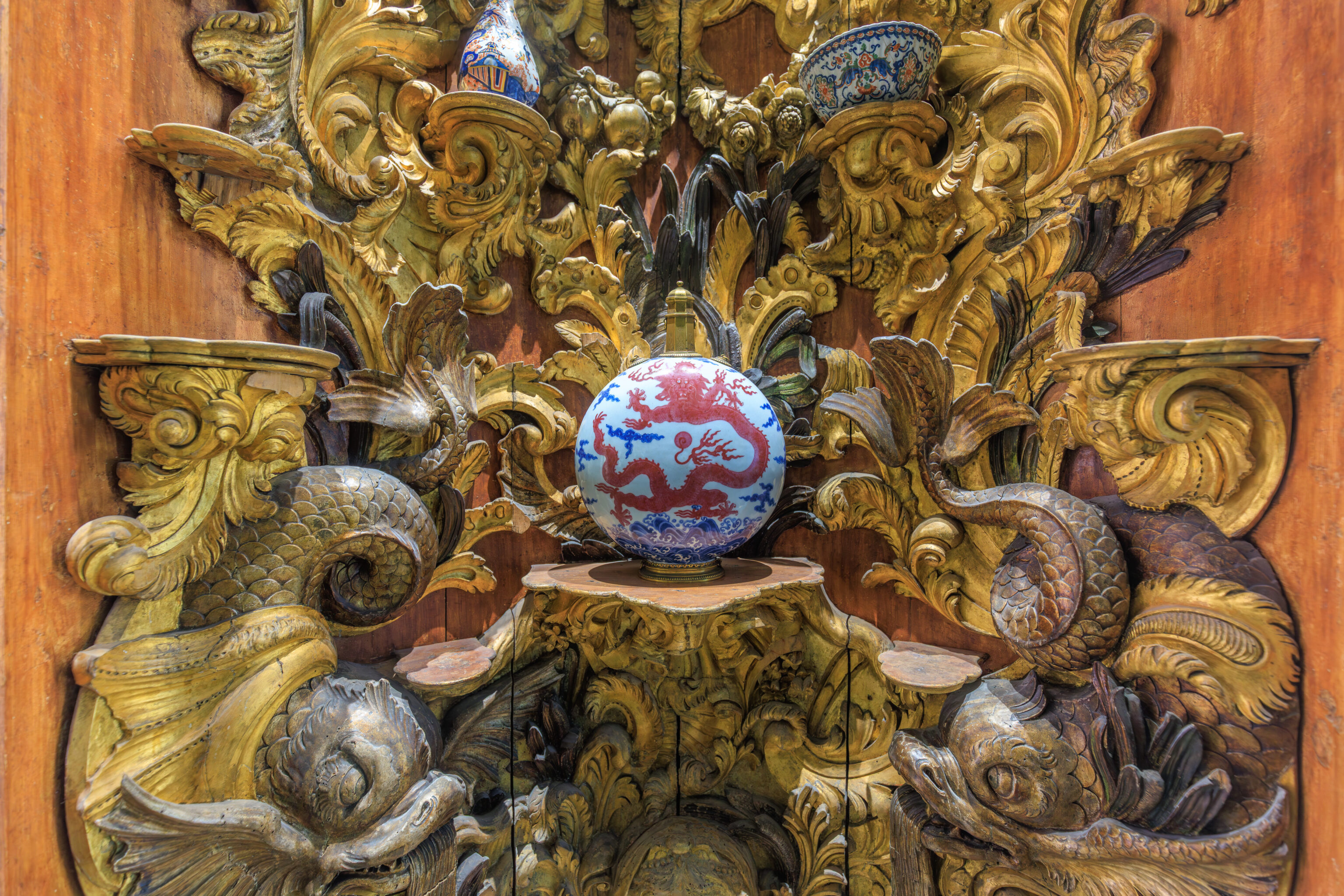 The balustrade on which the masonry cylinder rests is older and seems to date back to the construction of the staircase, around 1680. The function of this balustrade is not clearly established: did it mark an opening made in the staircase dome?  What was the reason for this opening?