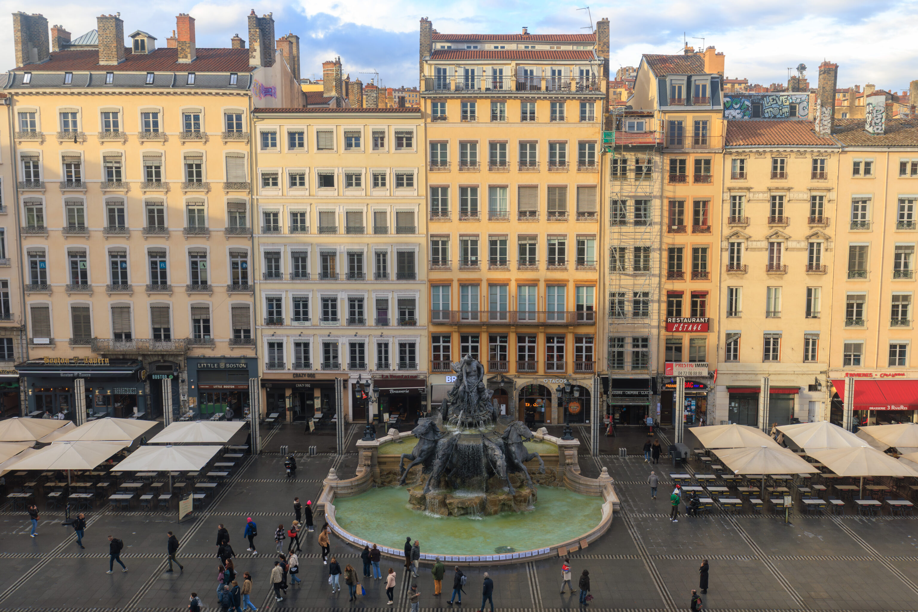 The view to the north from the museum facing the Place des Terreaux and the Bartholdi Fountain.