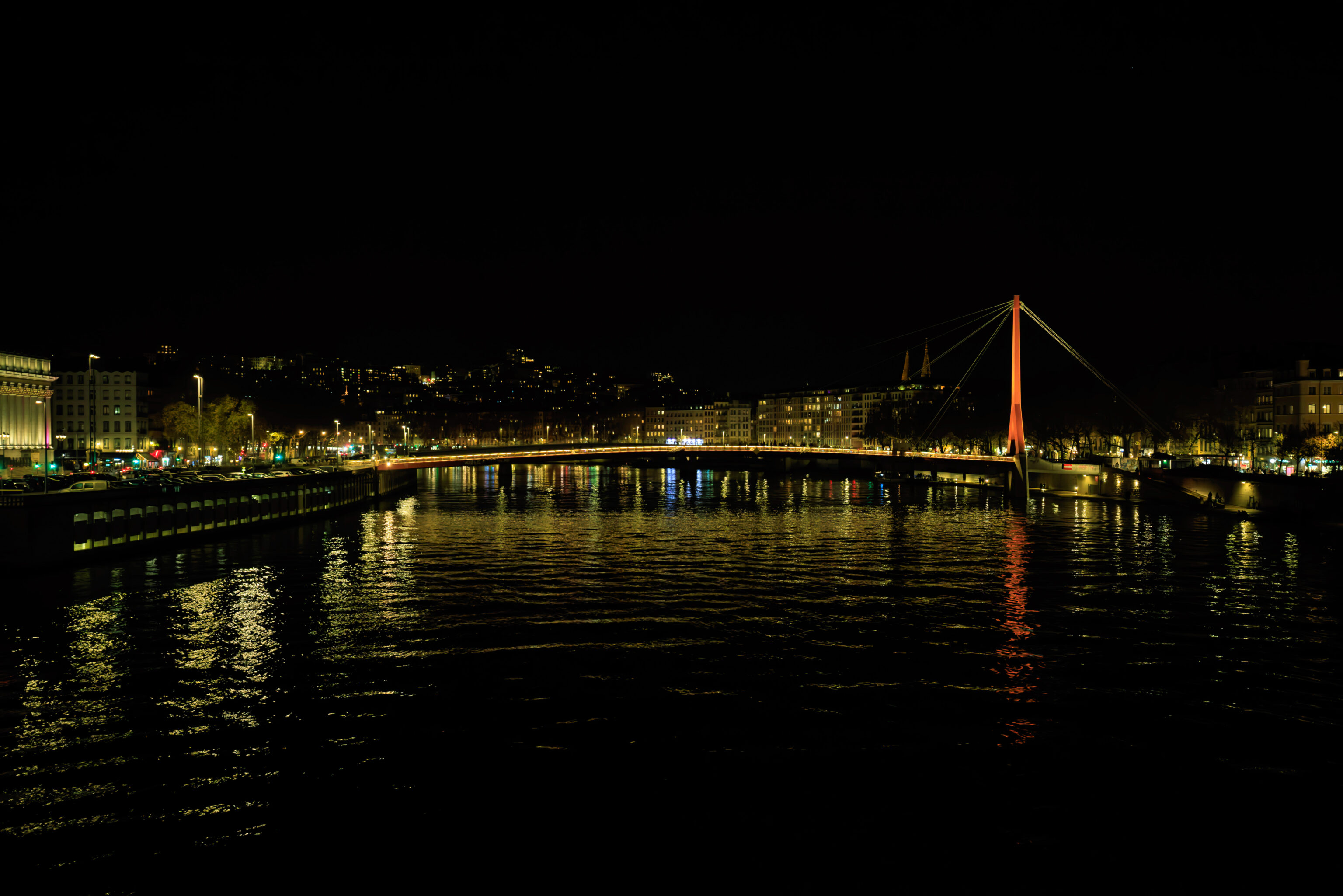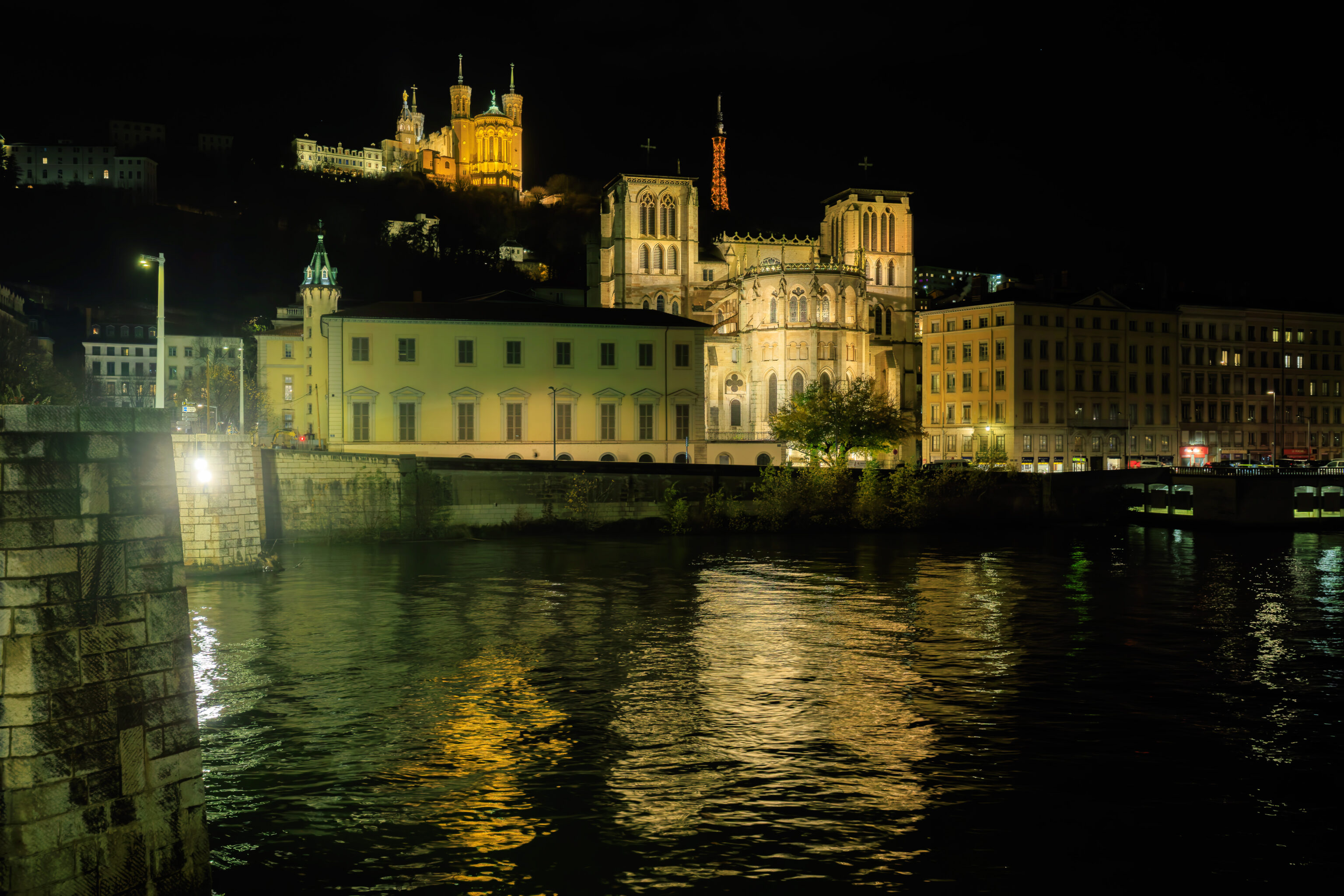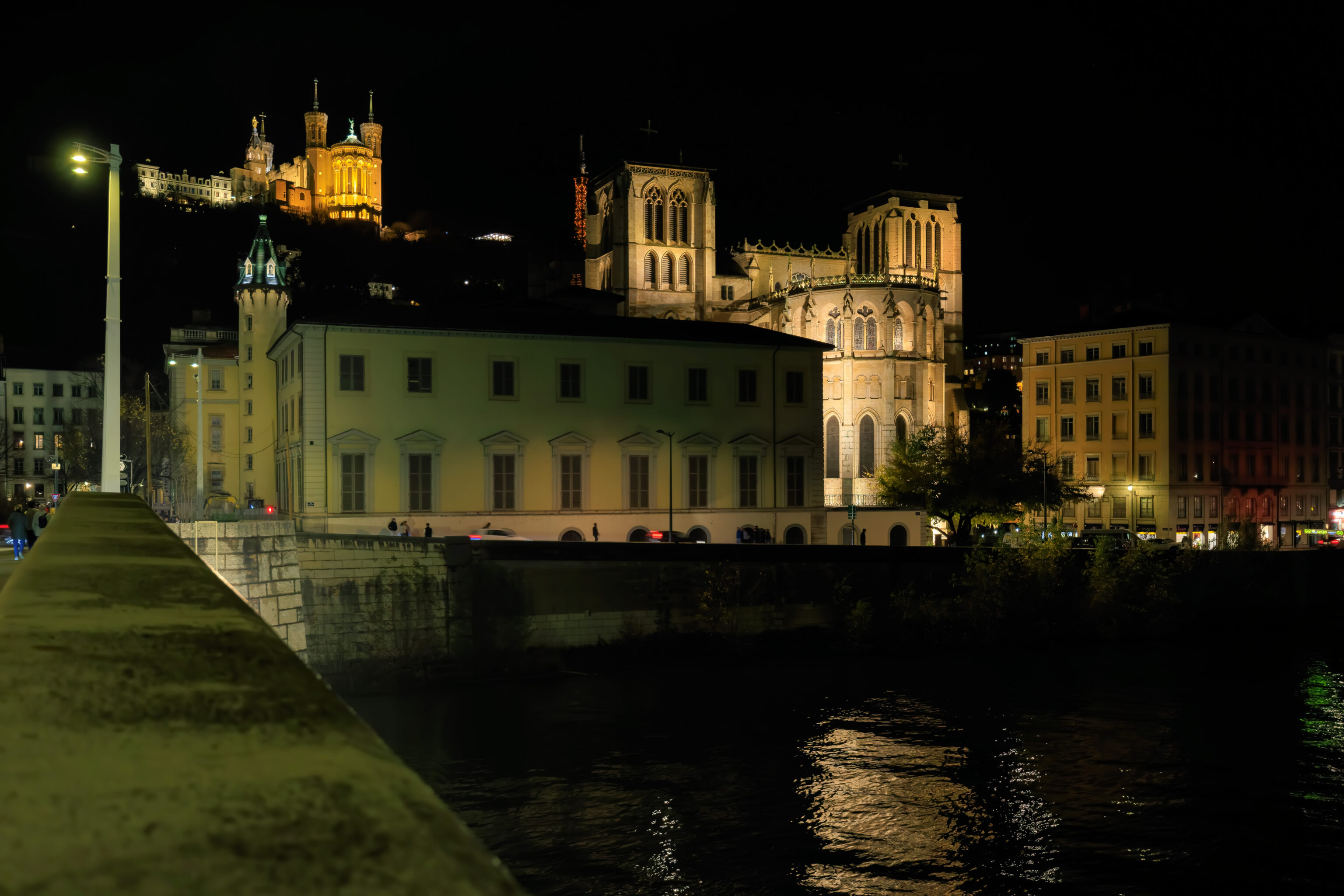 We continued on to cross the Saone via the Pont Bonaparte. Looking back, we had nice illuminated view of the basilica and tower above as well as the cathedral by the river.