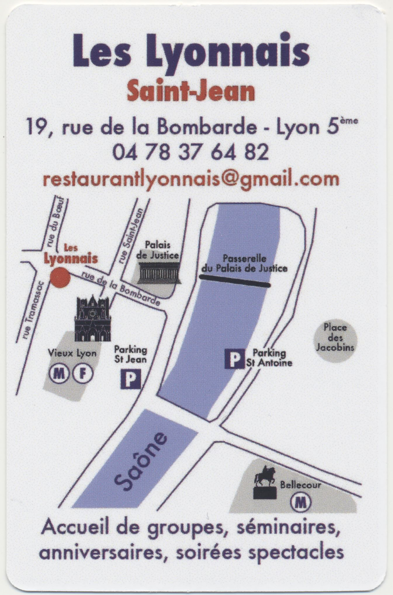 Les Lyonnais is a certified bouchon. Unfortunately, the website on their business card is no longer accurate. Their kitchen seems to open at 5pm, extremely early by Lyon standards. We visited at 5:15pm.