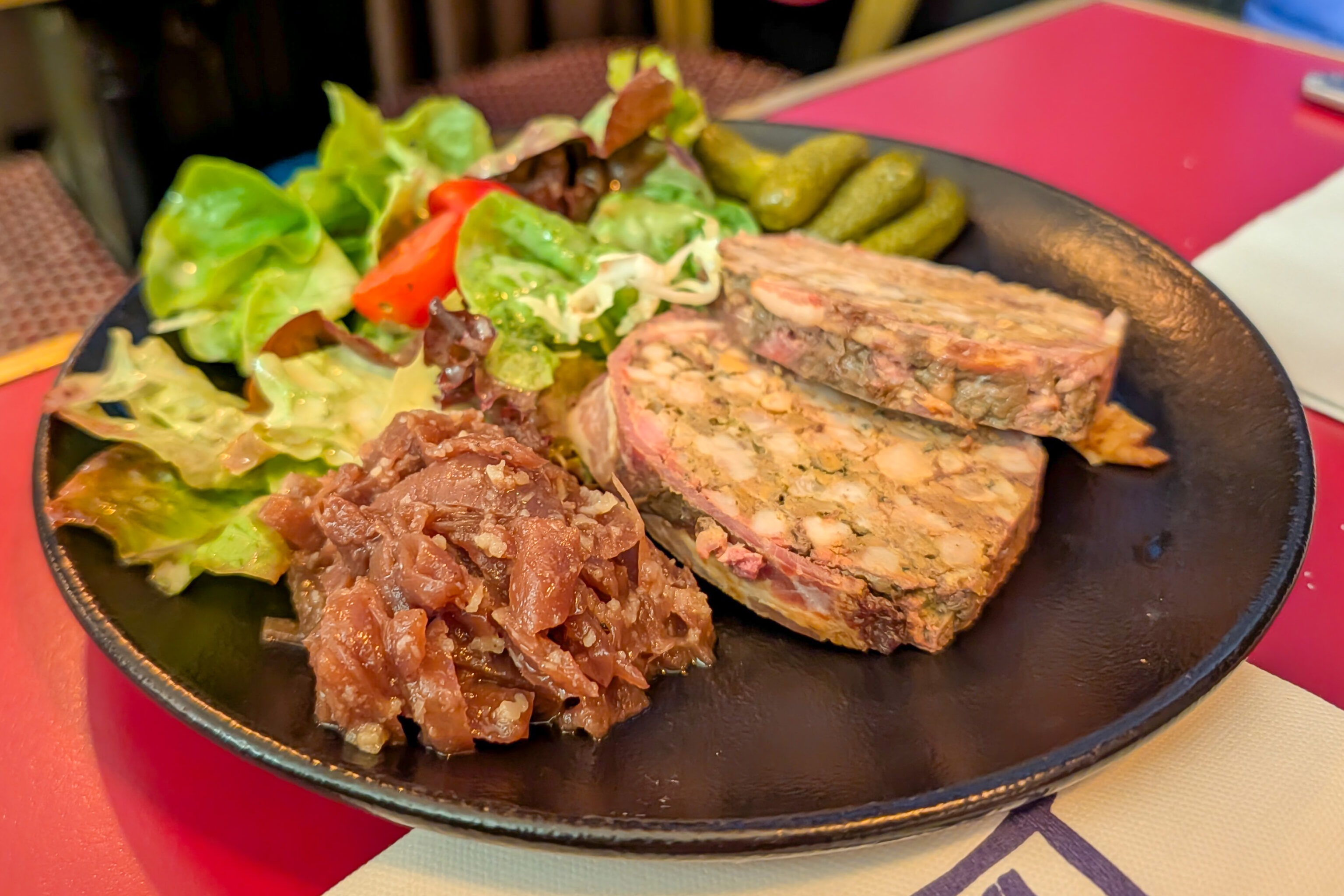 We started out with a red wine and a terrine appetizer. We actually wanted to try the pâté so we got the terrine as it is supposed to be similar. It was very good.