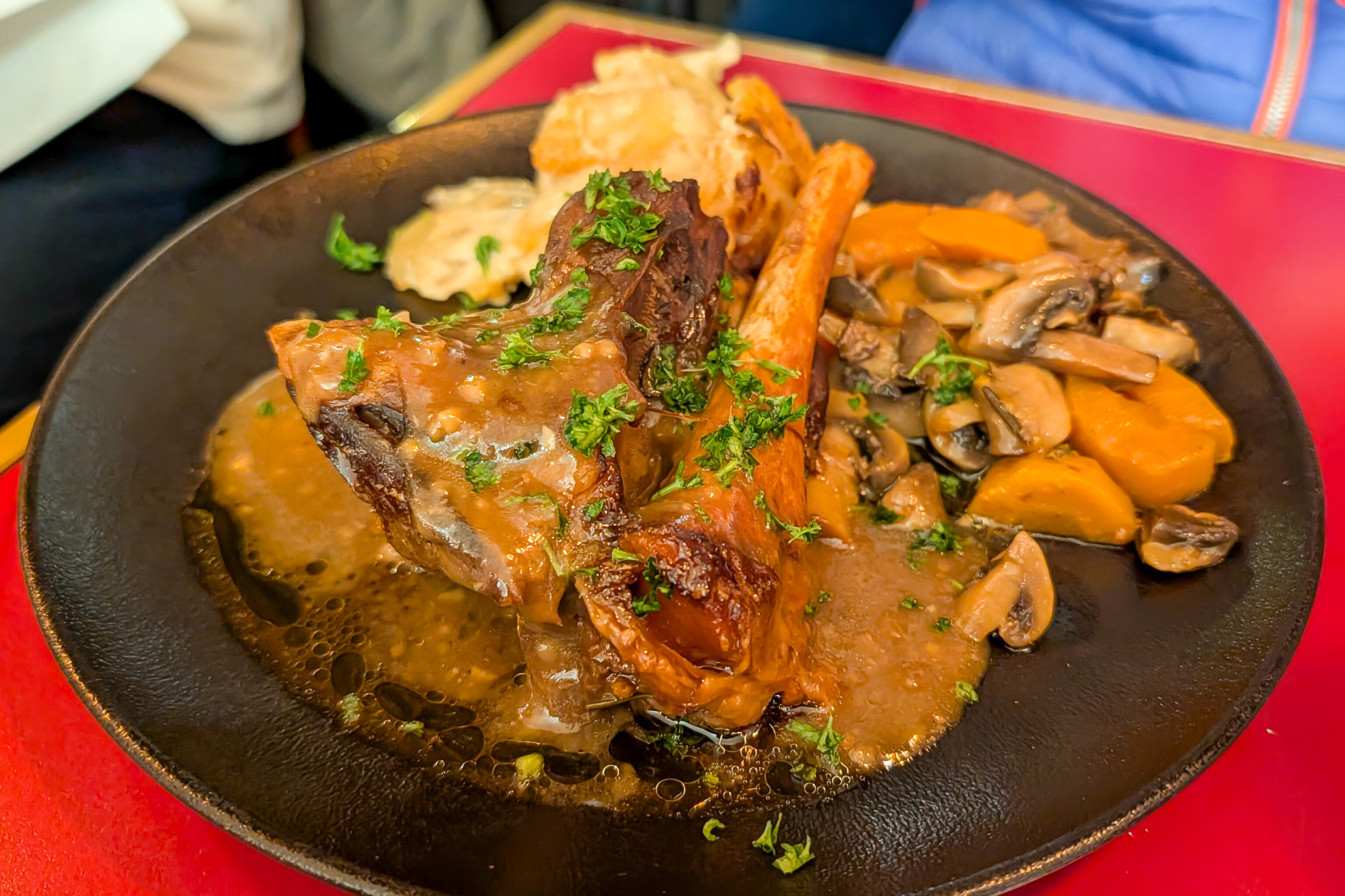 Our first main dish, a lamb shank, although the literal translation used on the menu is lamb mouse as souris is mouse. It was very good and extremely tender.