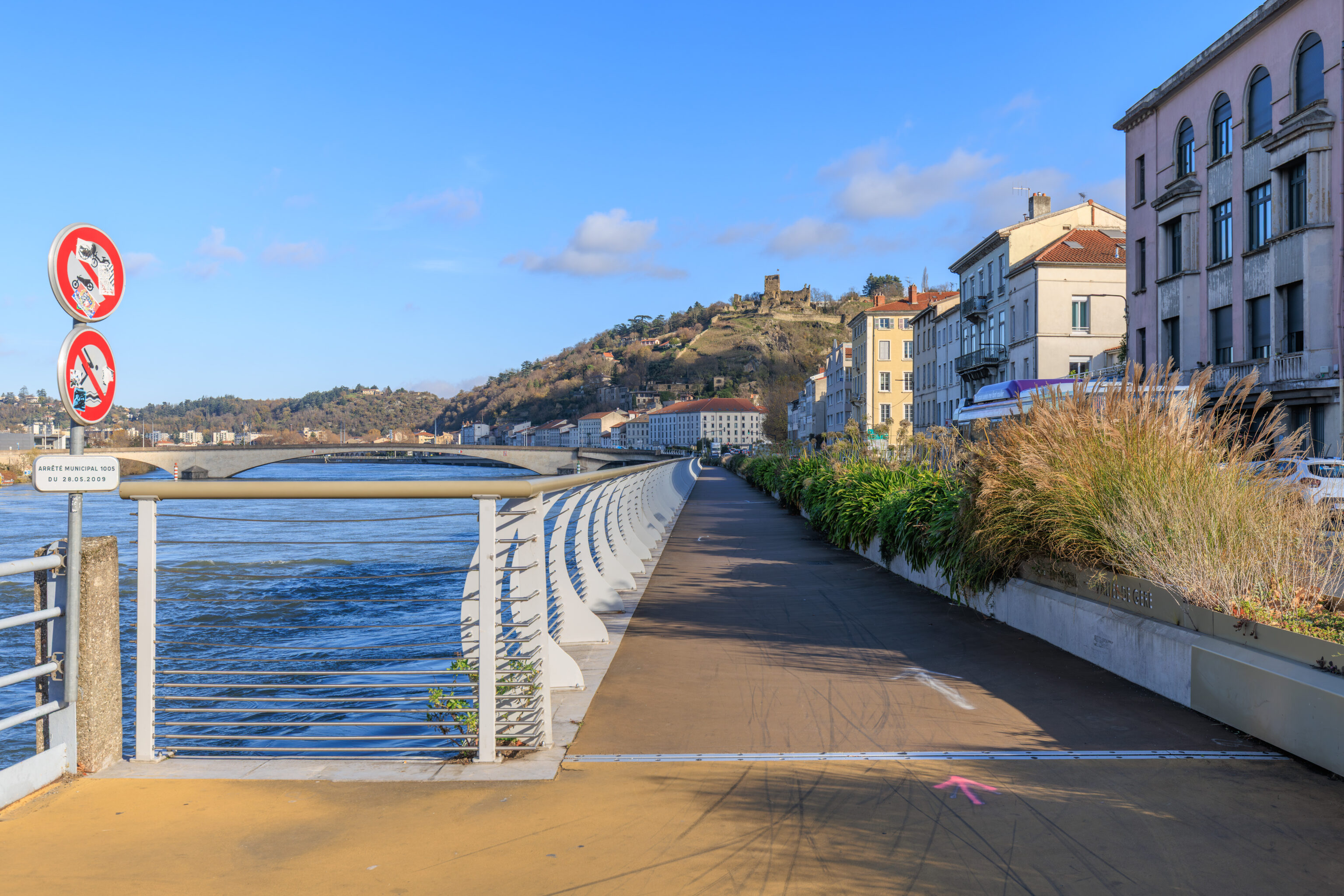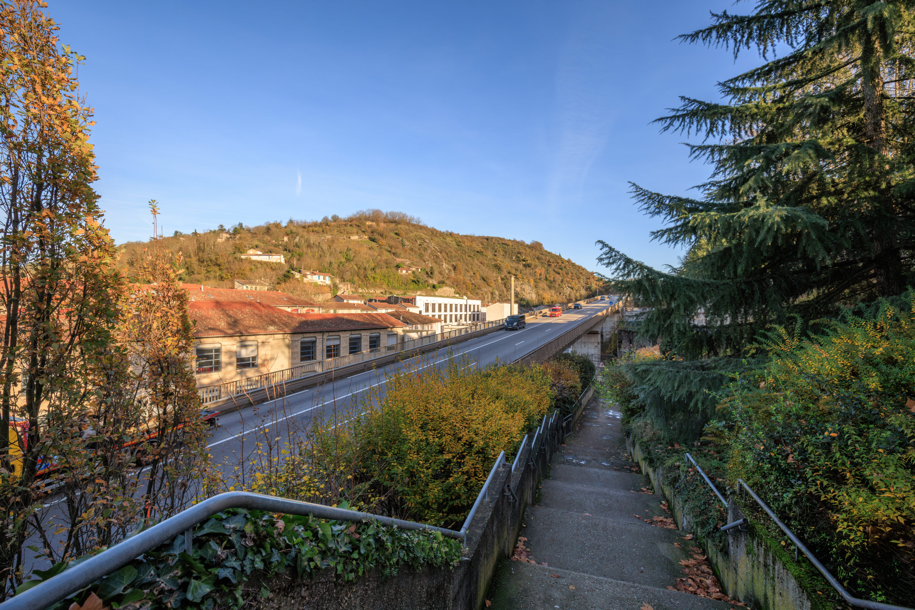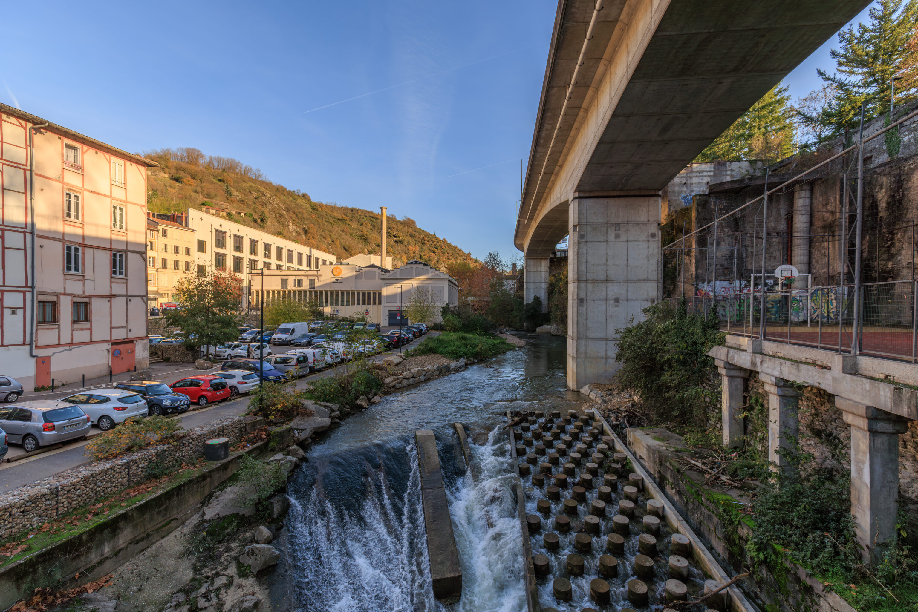 We decided to cross over the river from a pedestrian bridge across the street from La Martine. There is an elevated highway which runs above this crossing.