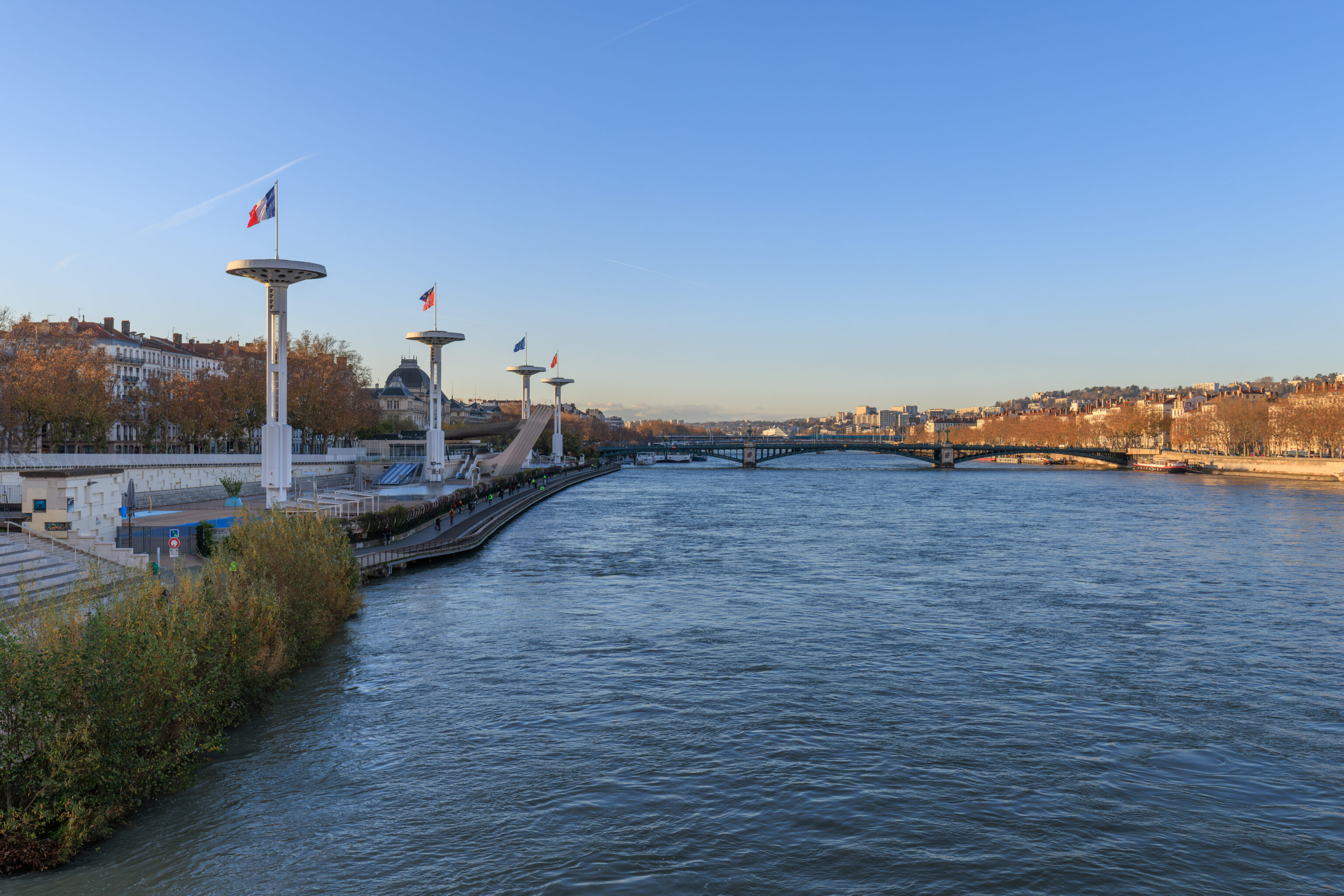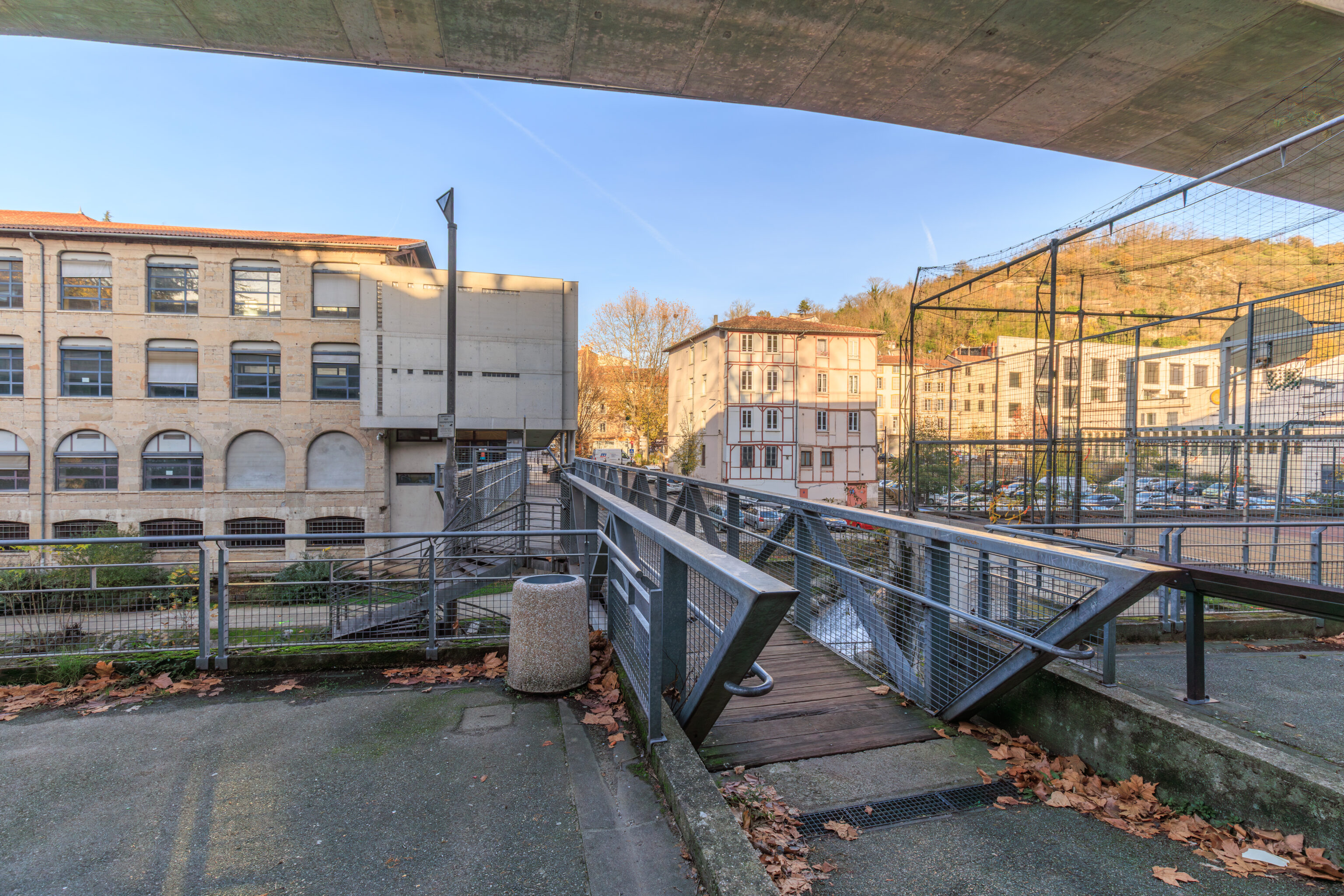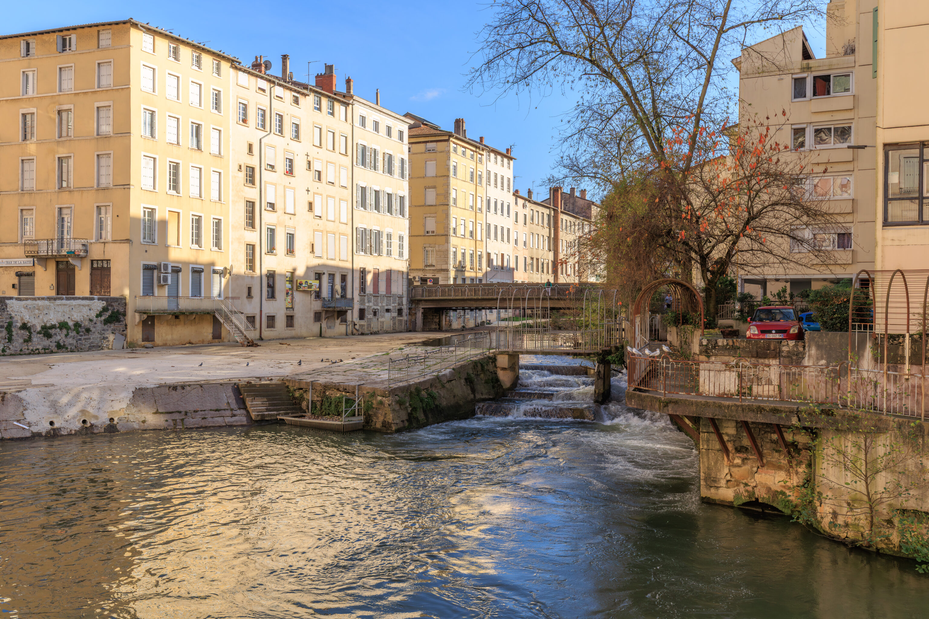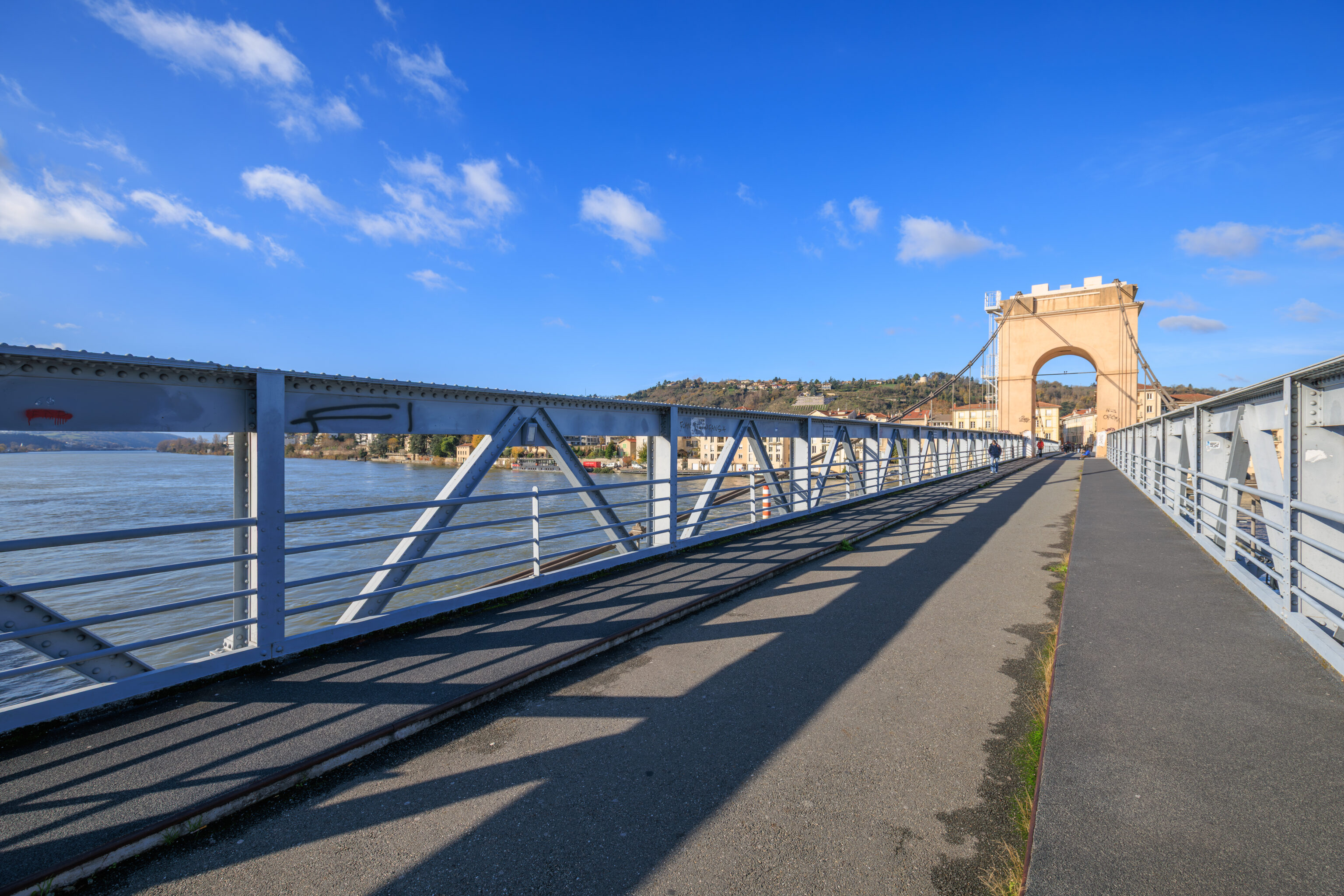 We decided to cross over the river from a pedestrian bridge across the street from La Martine. There is an elevated highway which runs above this crossing.