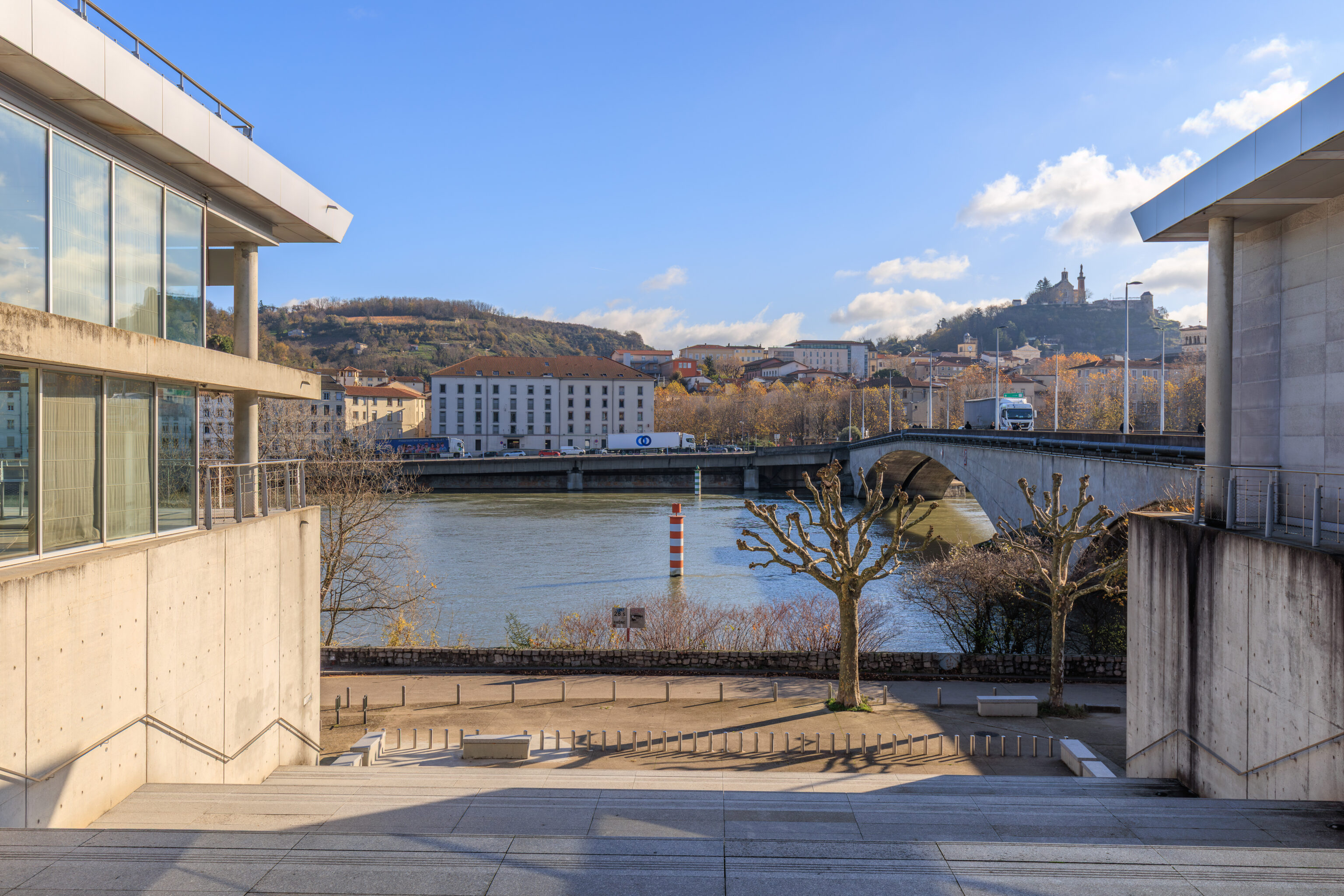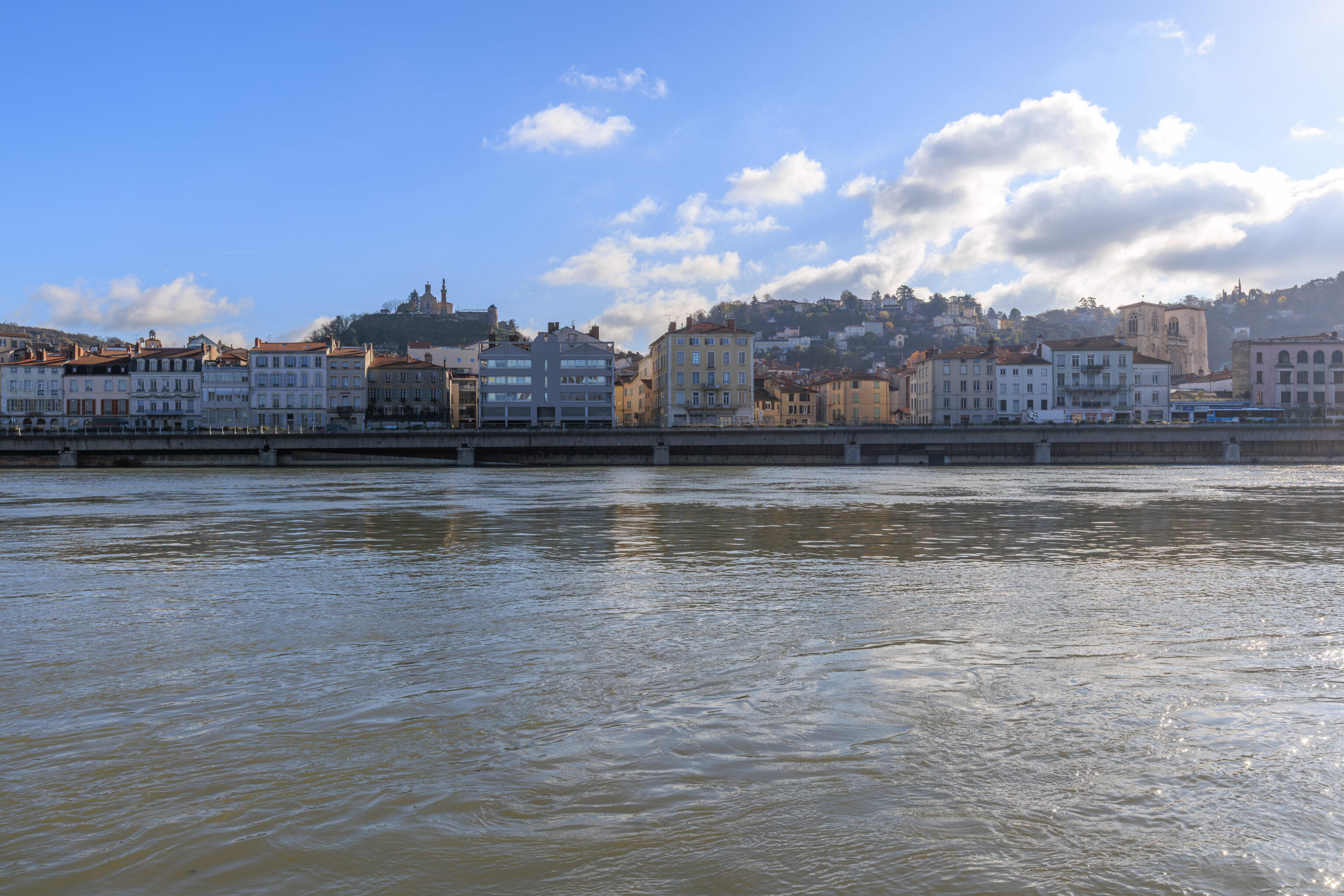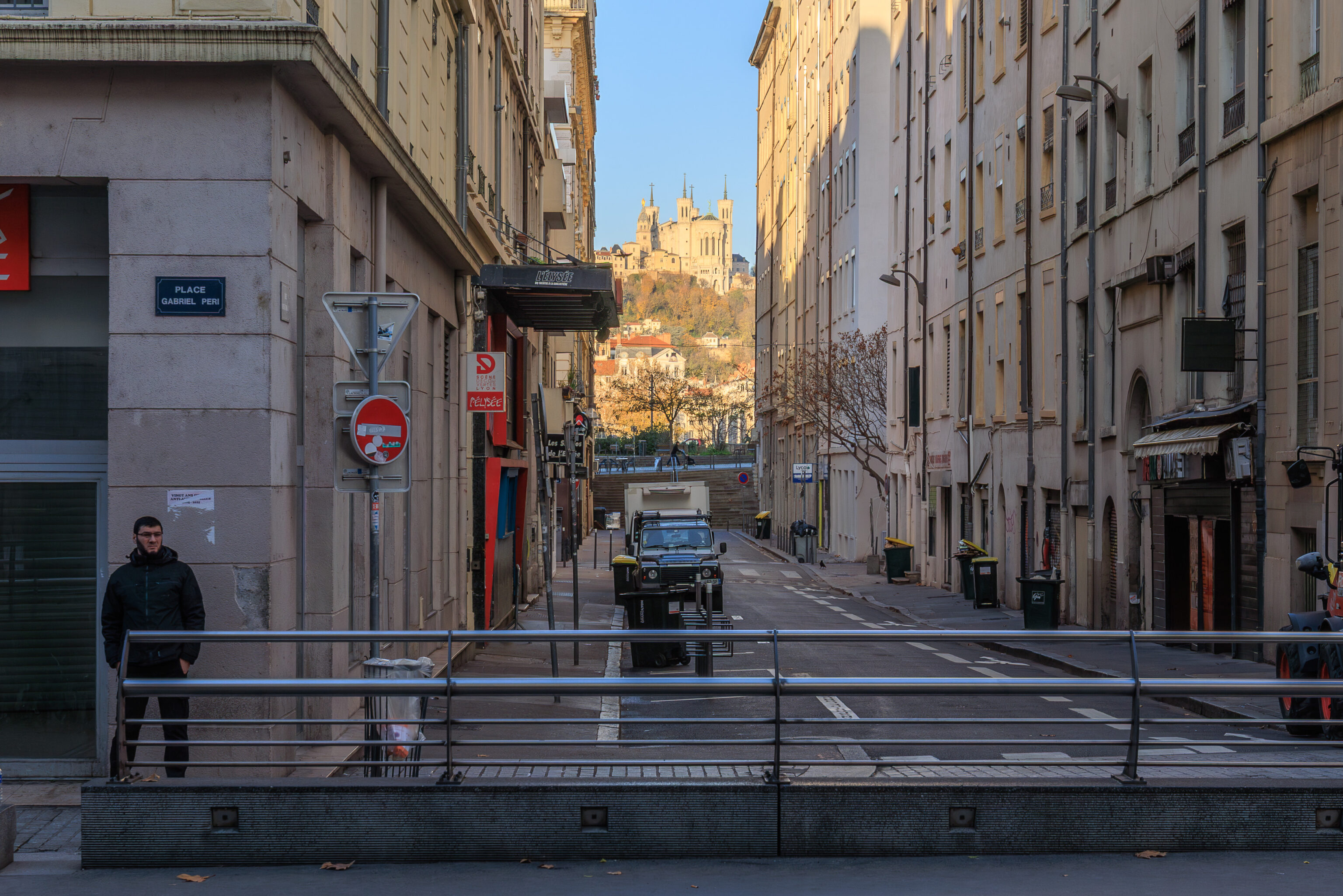 We had a good view from the Guillotière Gabriel Péri tram stop to the west with the Basilique Notre-Dame de Fourvière nicely framed in the background.