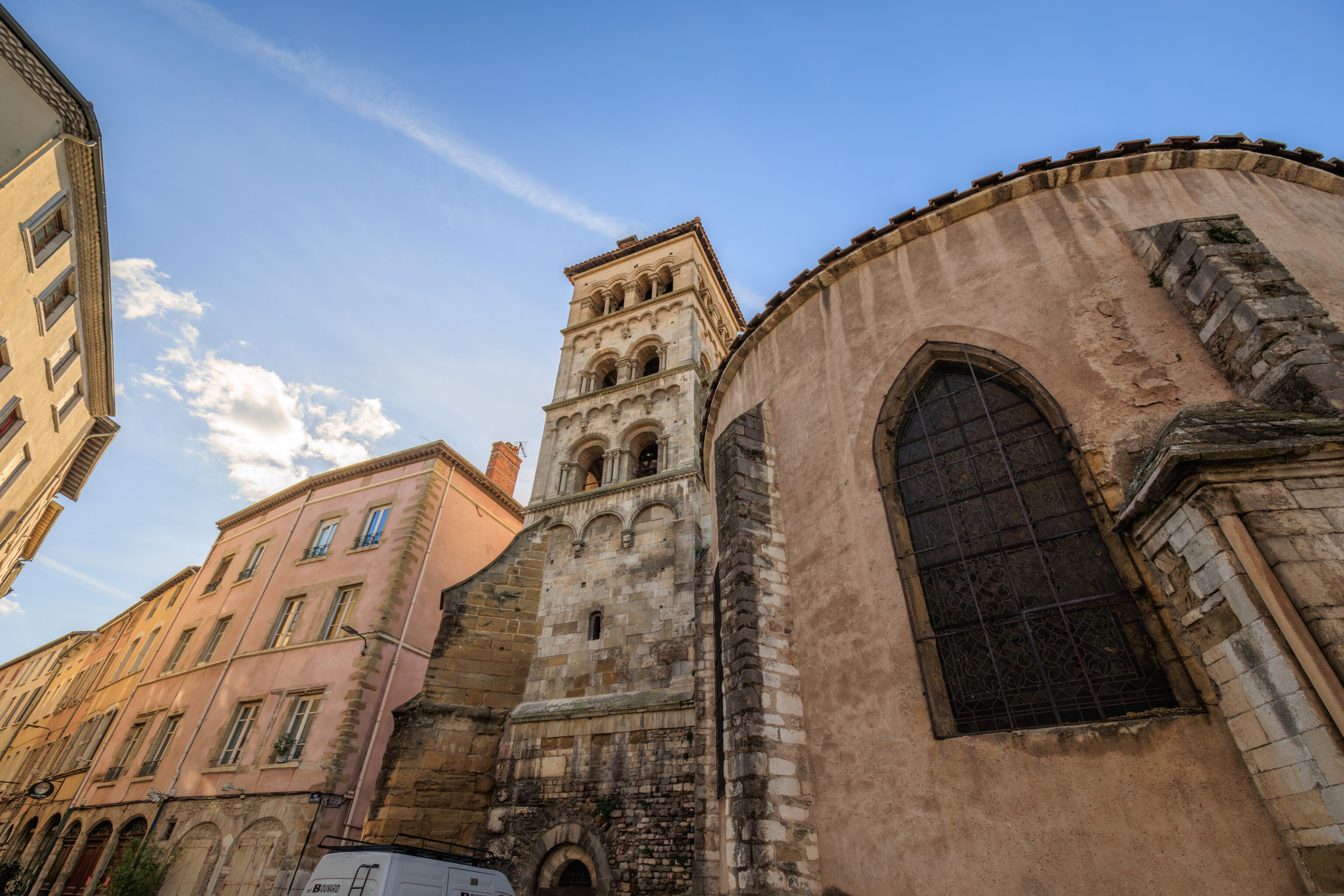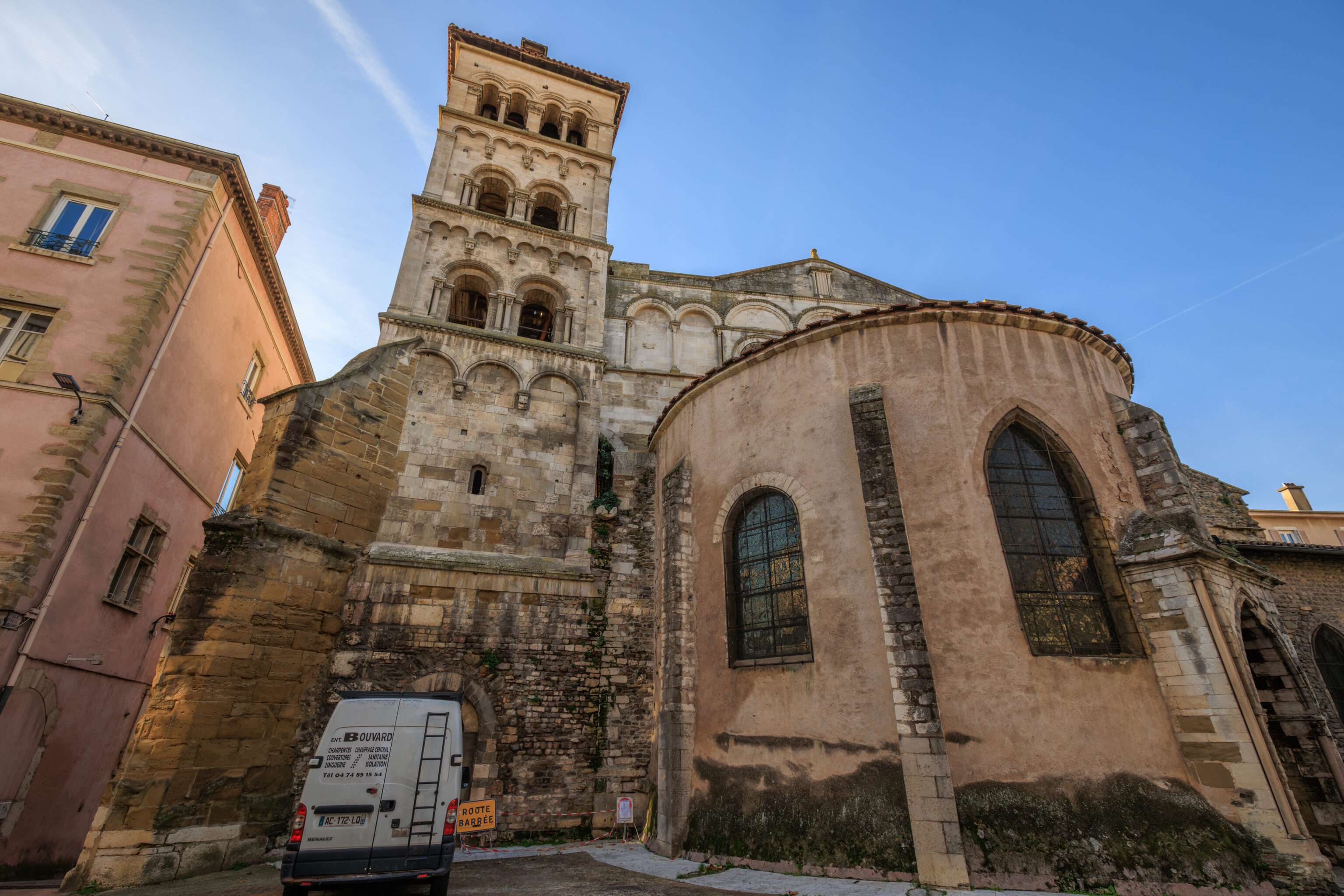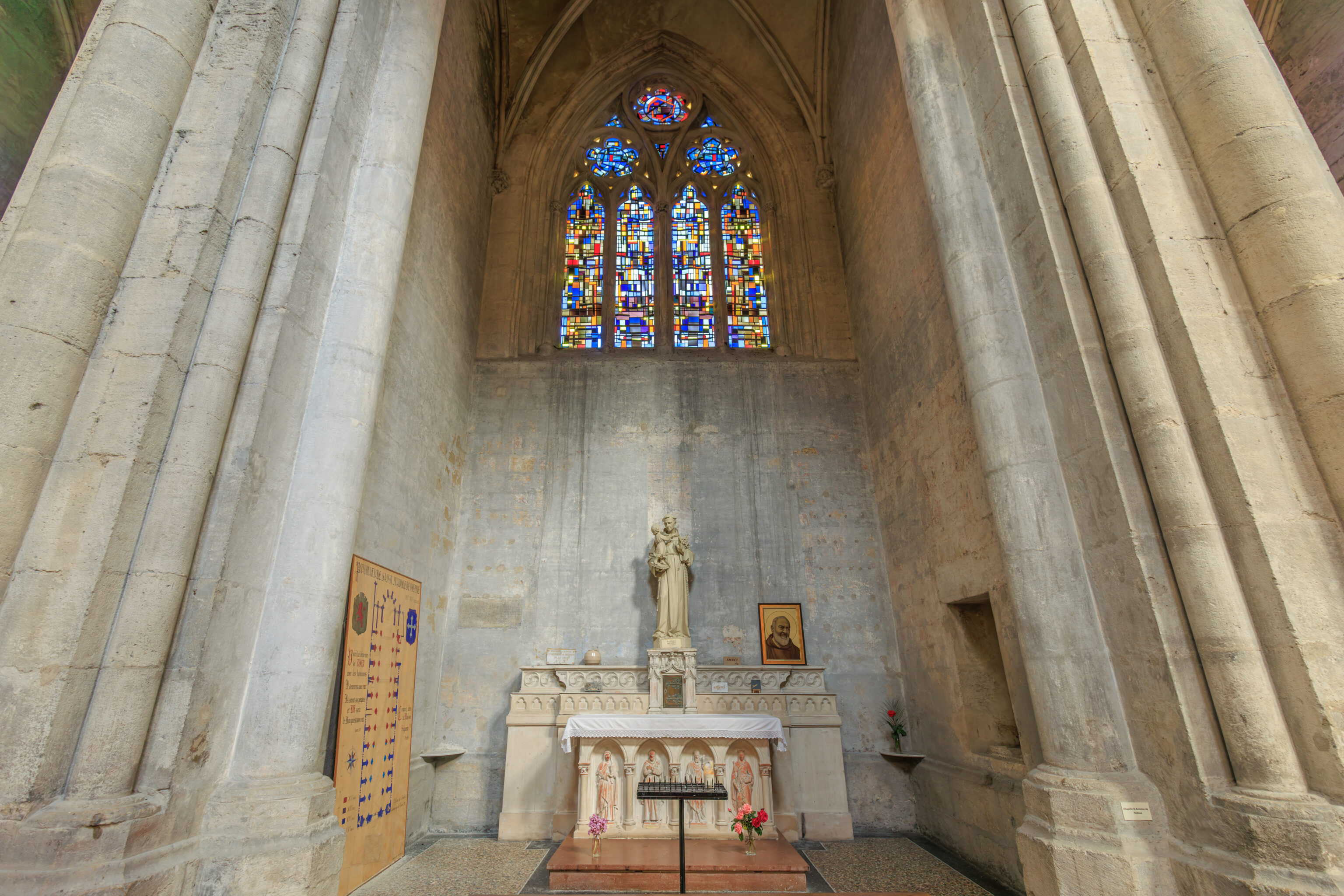 In the 13th century, the archbishop Jean de Bernin rebuilt the choir. Four bays were added on the western side during the Gothic period and the whole building was built higher and vaulted.