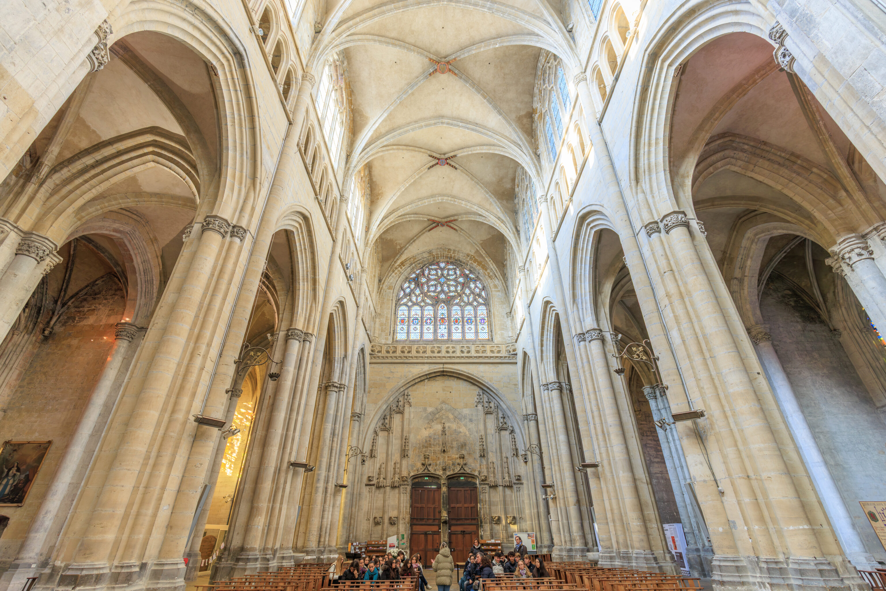 Under the episcopate of Jean de Bernin (1217-1266), a new architectural approach was chosen: a new choir, expansion with side chapels, westward extension, and pointed arch vaulting. Construction continued for over 300 years, until its completion under the episcopate of Pierre Palmier (1527-1556), in the Flamboyant Gothic and Renaissance styles. Written sources and the coats of arms of donors (on the keystones and the façade) provide valuable chronological markers.