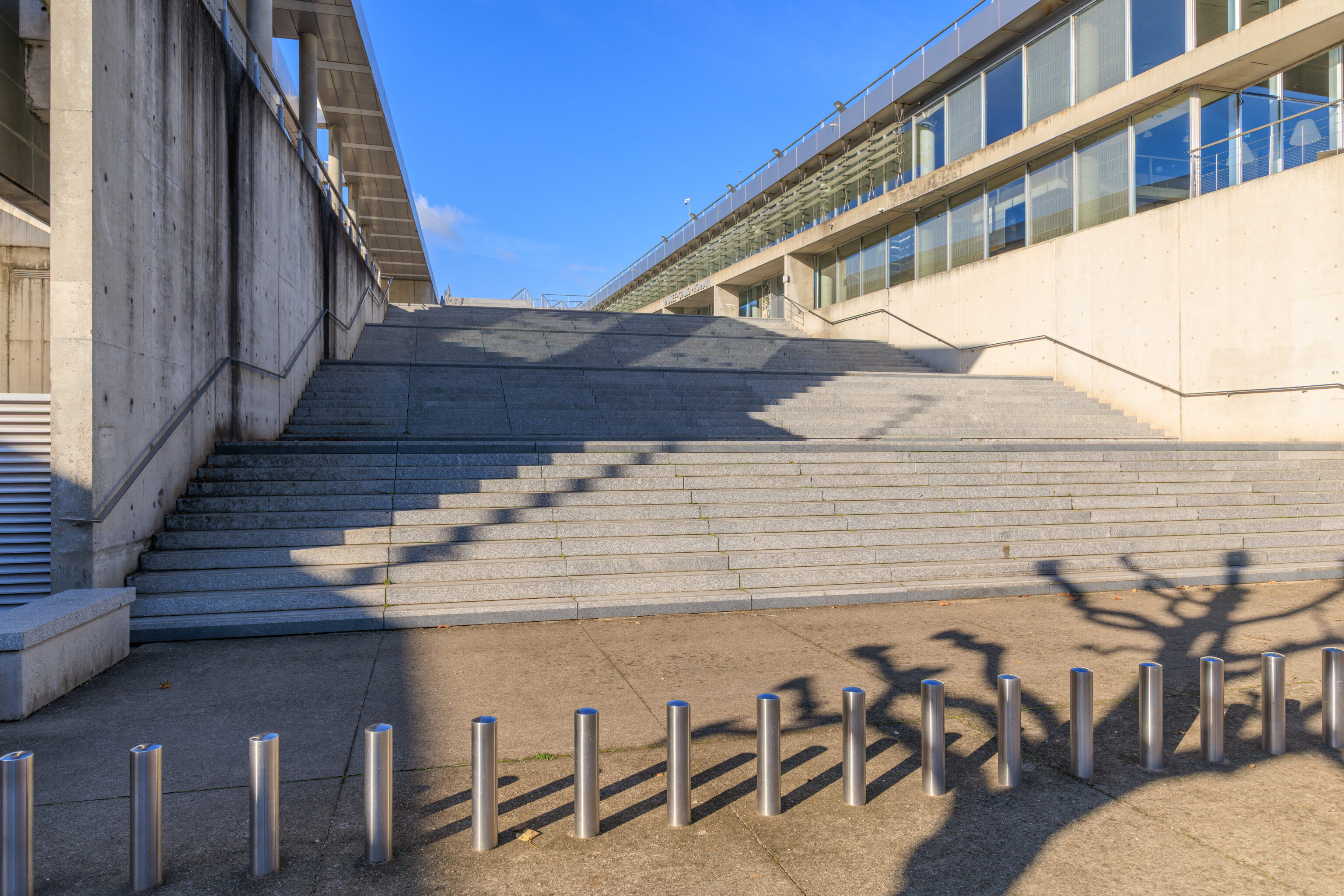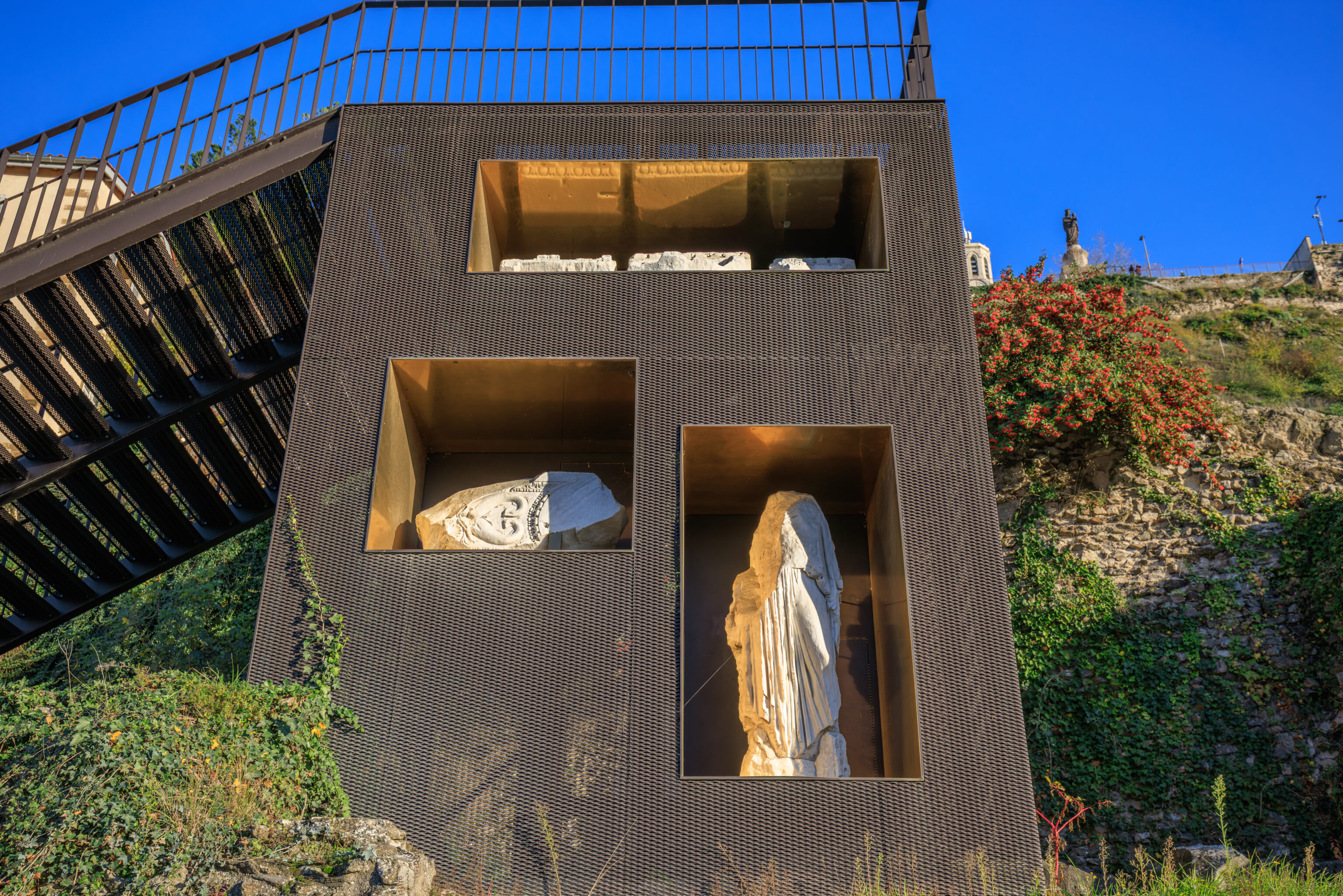 Some sculptures are on display here integrated into a modern stairway here on the north side of the theatre.
