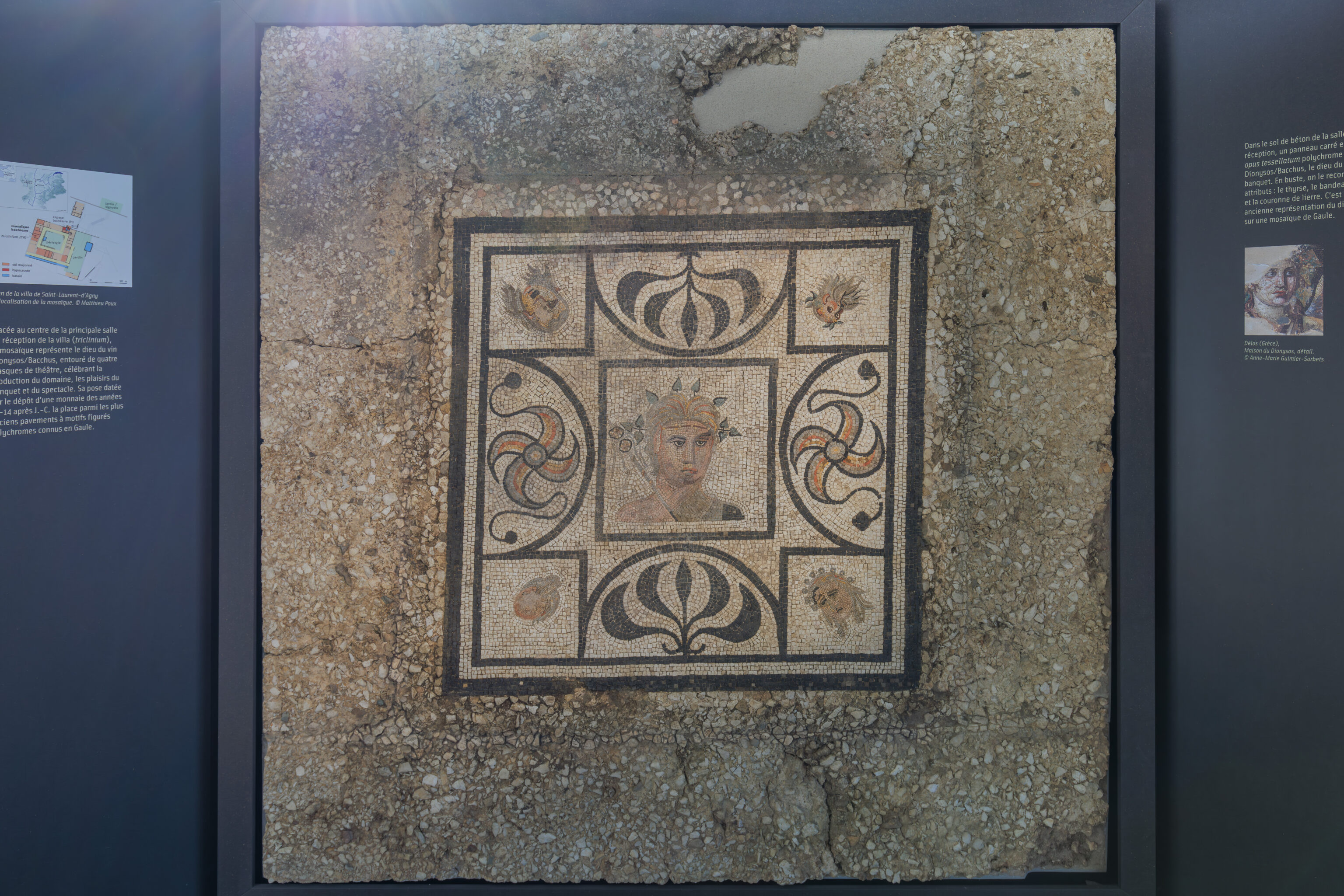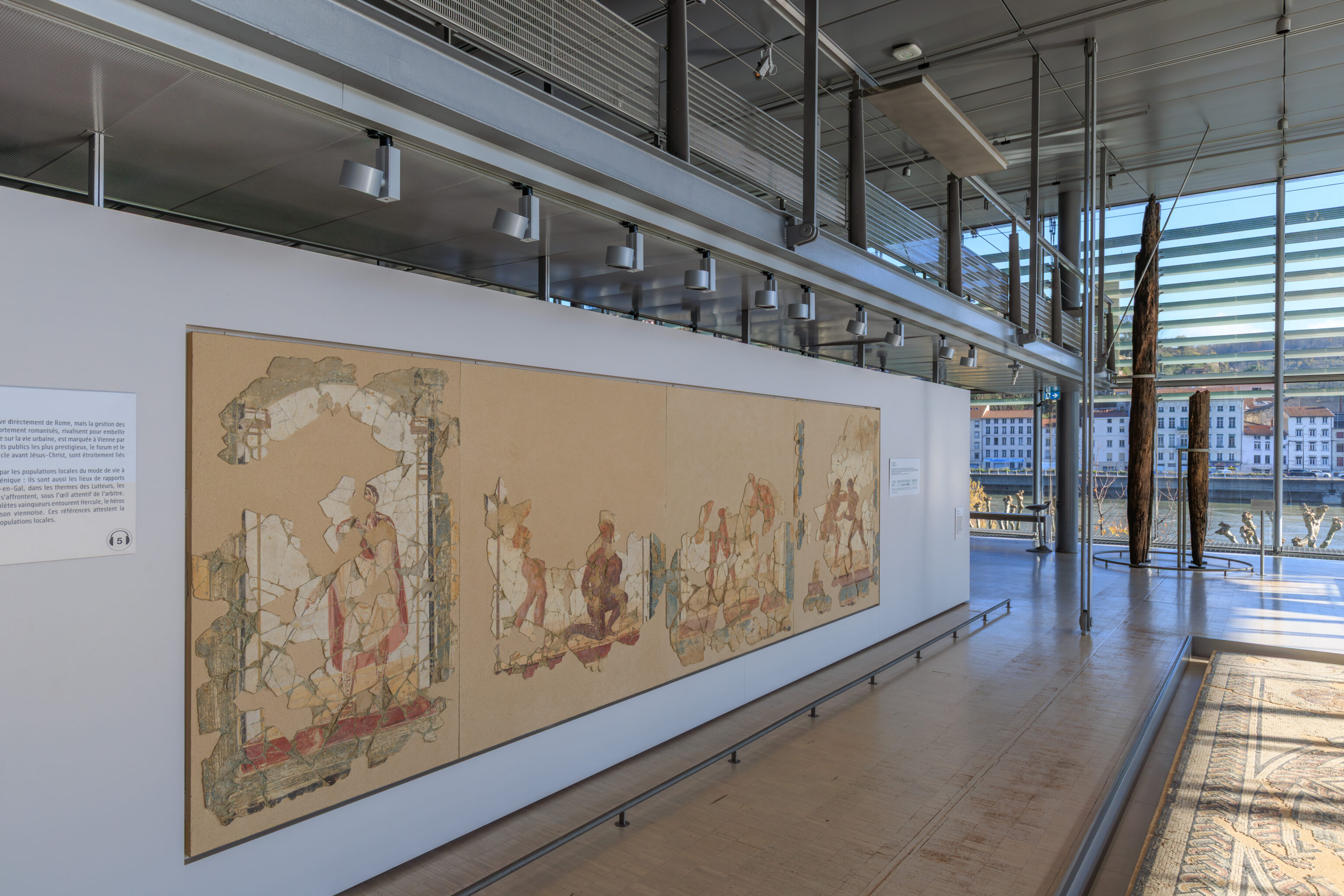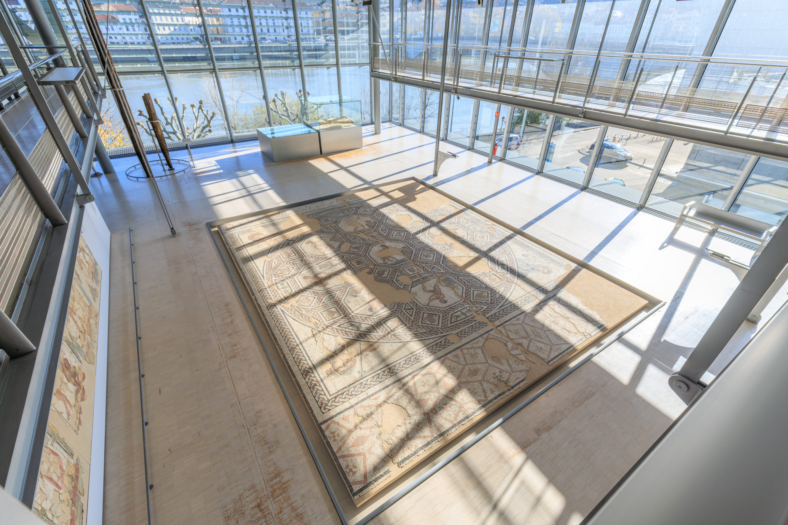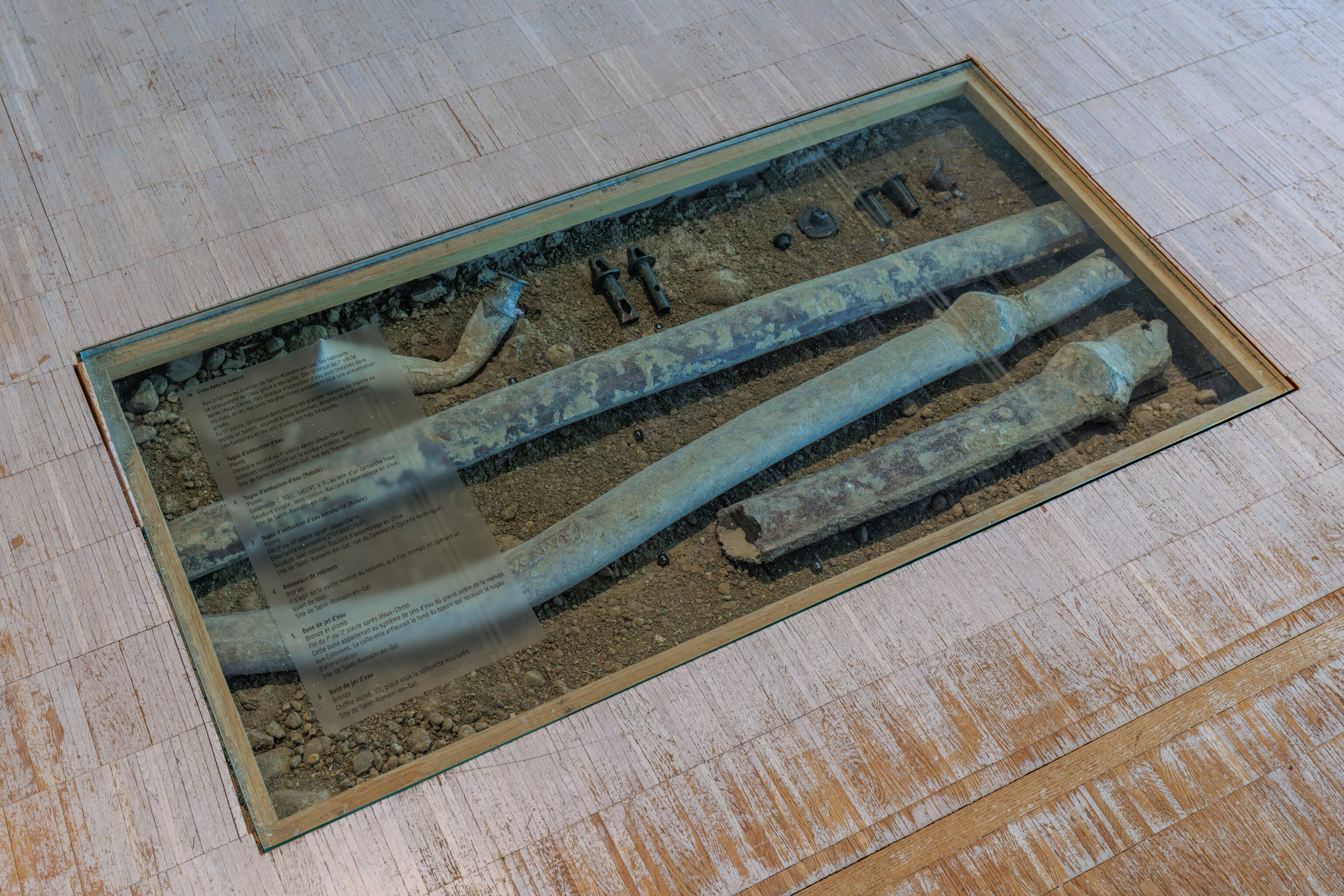 In parallel, preventive excavations have accompanied each stage of the work. Led by the Archeodunum company under the supervision of the Regional Archaeology Service, these excavations have expanded our knowledge of the southern part of the site. The 310 square meters excavated have allowed archaeologists to identify the different phases of occupation of the House of the Oscilla. In the vestibule, five construction campaigns have been identified. A major discovery was also made to the west of the house: the foundations of a large public fountain dating from the late 1st to early 2nd century. Some blocks bore epigraphic inscriptions mentioning public figures, such as Titus Decidius Domitianus and Licinia Optatina, enriching our understanding of the elites of ancient Vienne. After scientific surveys, the fountain was protected and reburied in situ. It is now part of the remains hidden beneath your feet, both those already known and those yet to be discovered.