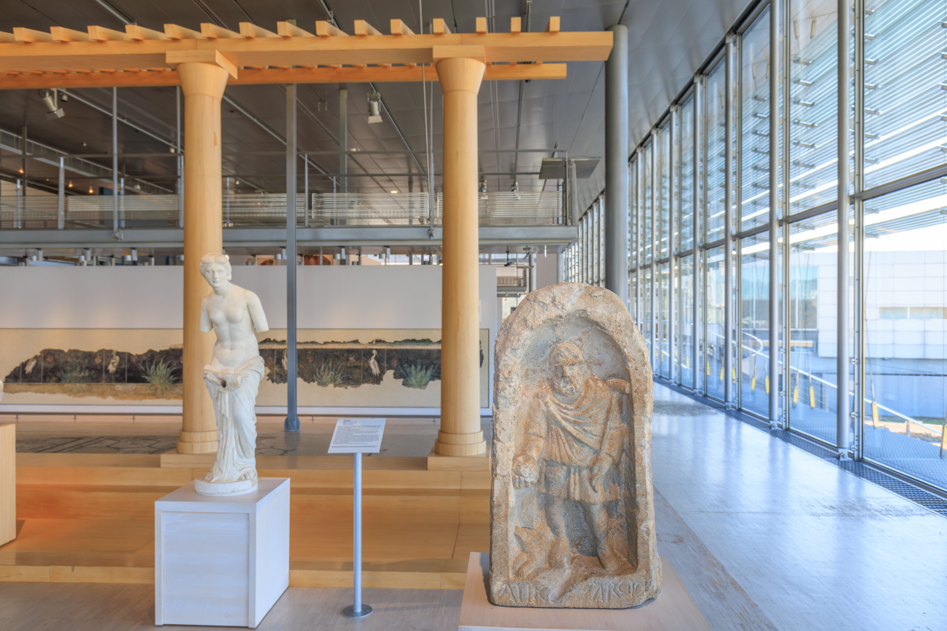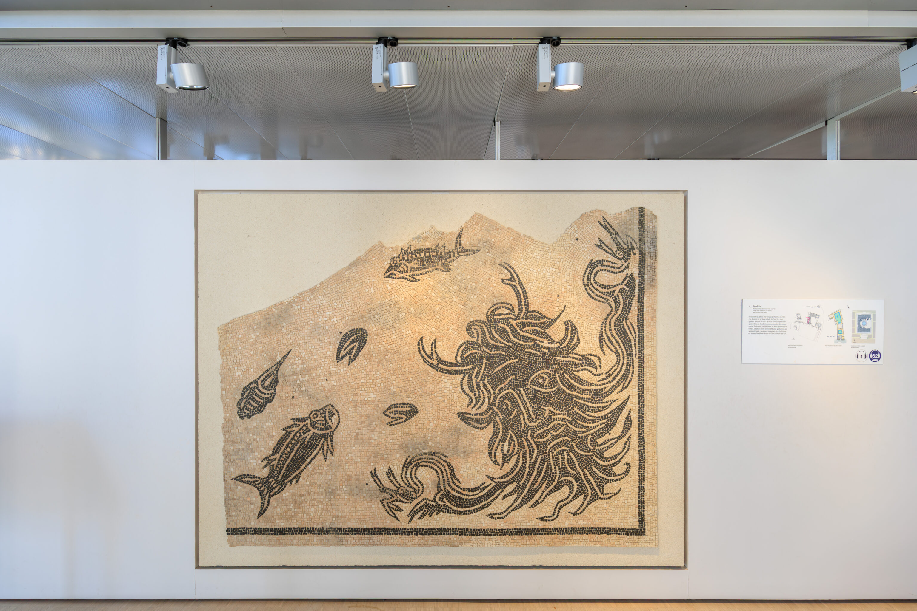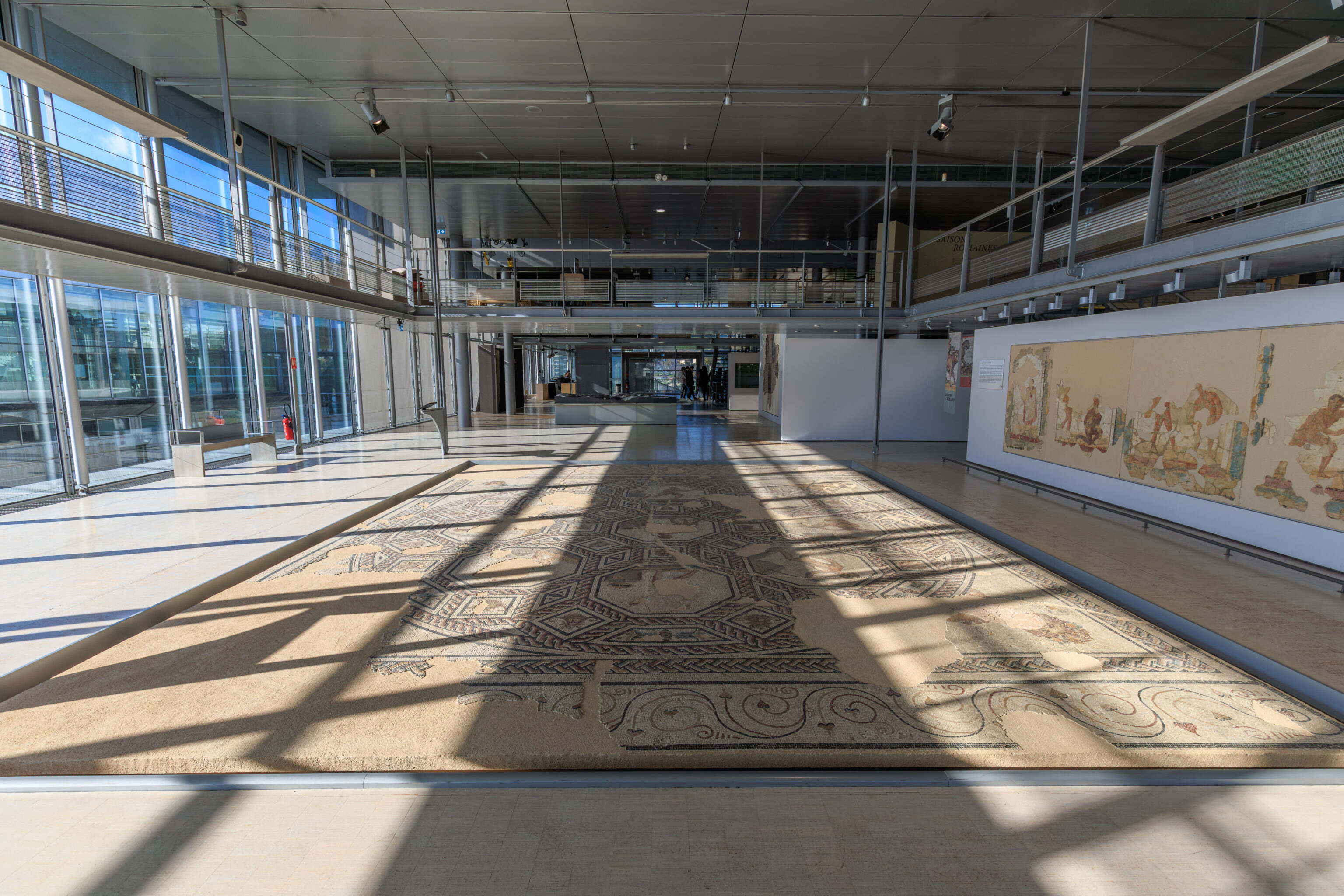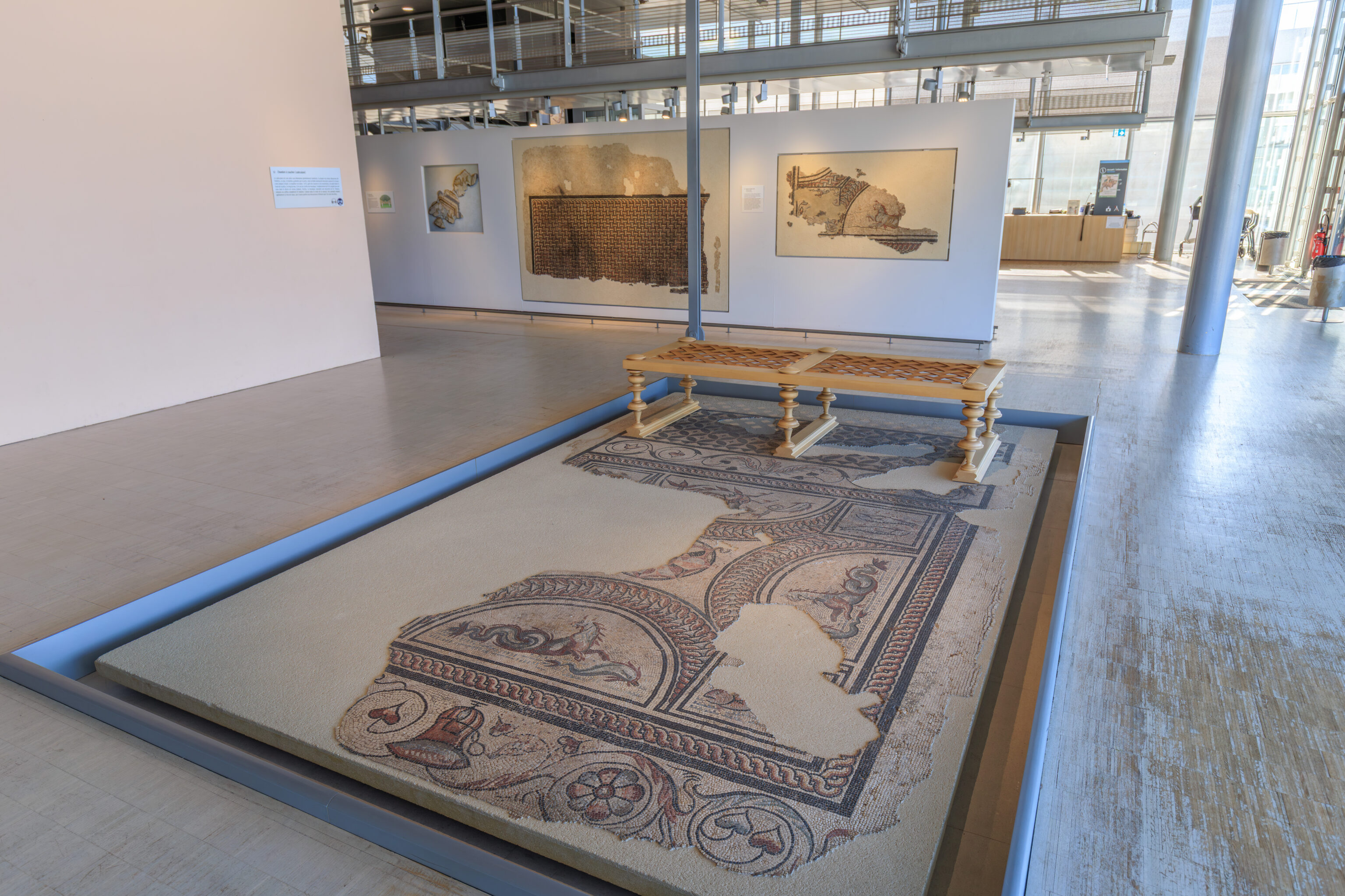 In parallel, preventive excavations have accompanied each stage of the work. Led by the Archeodunum company under the supervision of the Regional Archaeology Service, these excavations have expanded our knowledge of the southern part of the site. The 310 square meters excavated have allowed archaeologists to identify the different phases of occupation of the House of the Oscilla. In the vestibule, five construction campaigns have been identified. A major discovery was also made to the west of the house: the foundations of a large public fountain dating from the late 1st to early 2nd century. Some blocks bore epigraphic inscriptions mentioning public figures, such as Titus Decidius Domitianus and Licinia Optatina, enriching our understanding of the elites of ancient Vienne. After scientific surveys, the fountain was protected and reburied in situ. It is now part of the remains hidden beneath your feet, both those already known and those yet to be discovered.