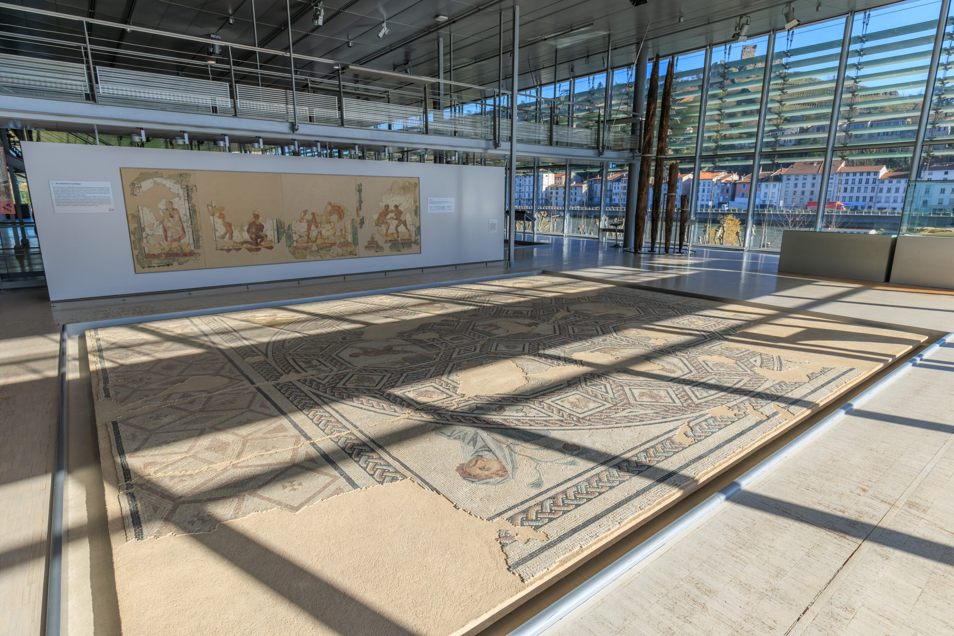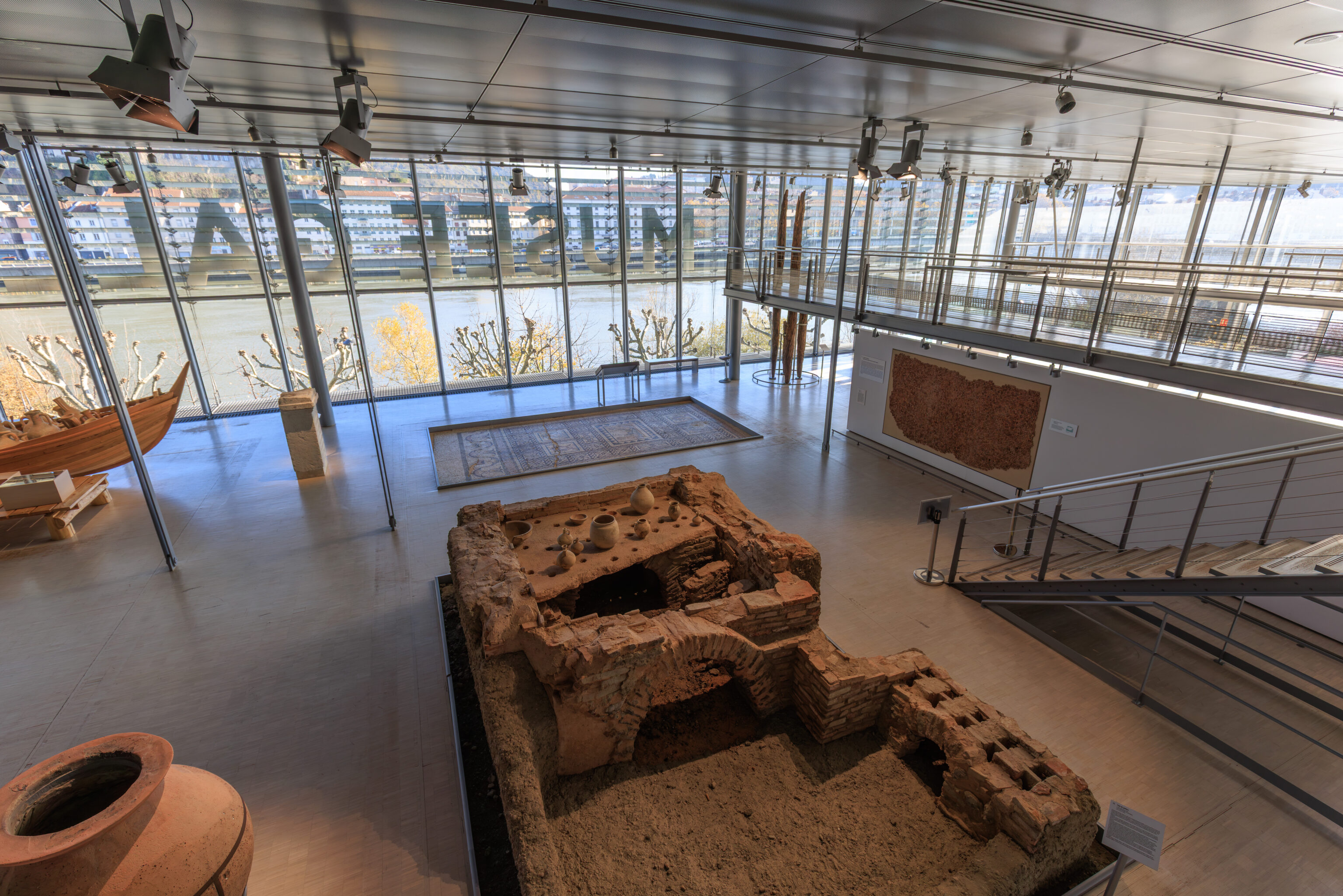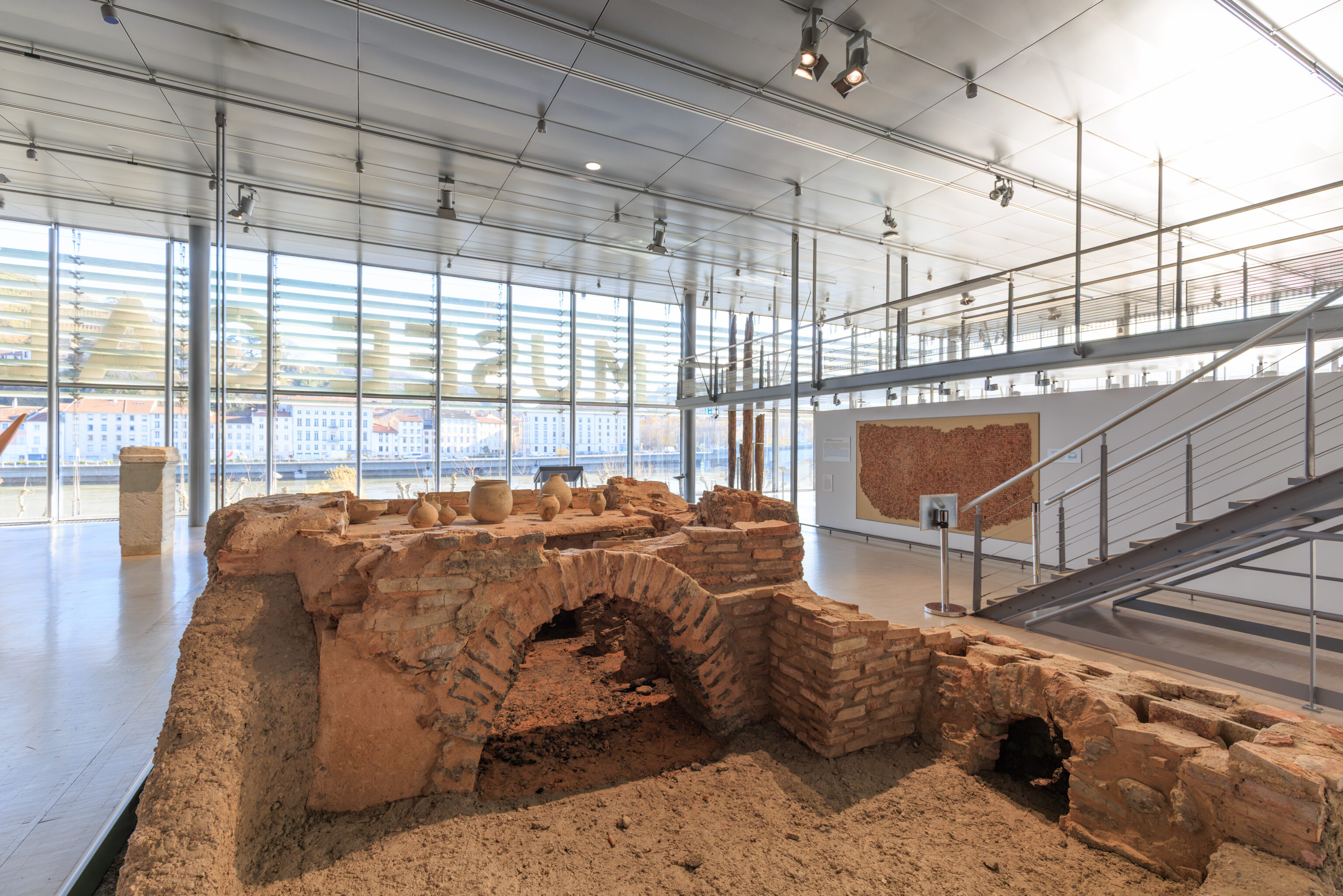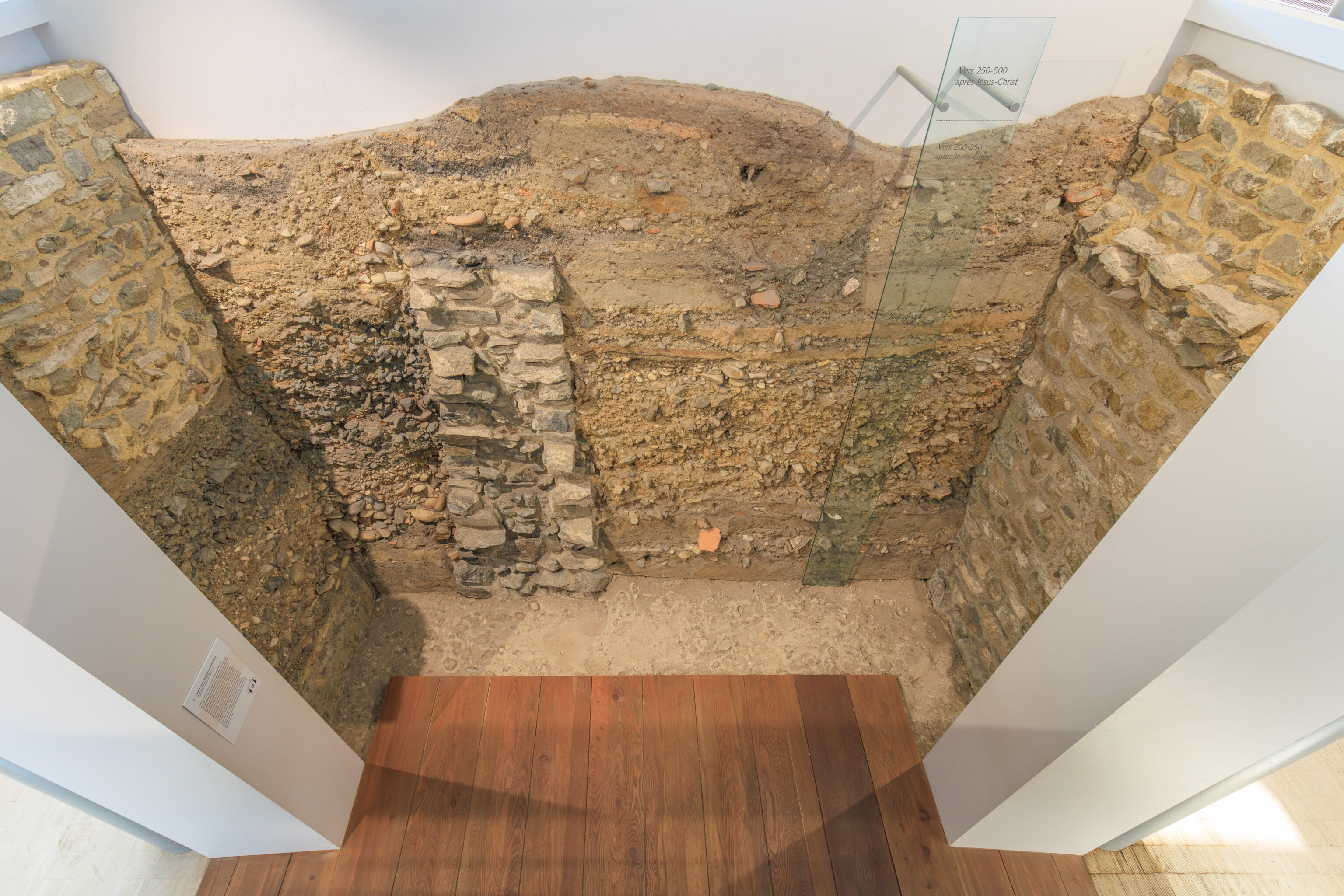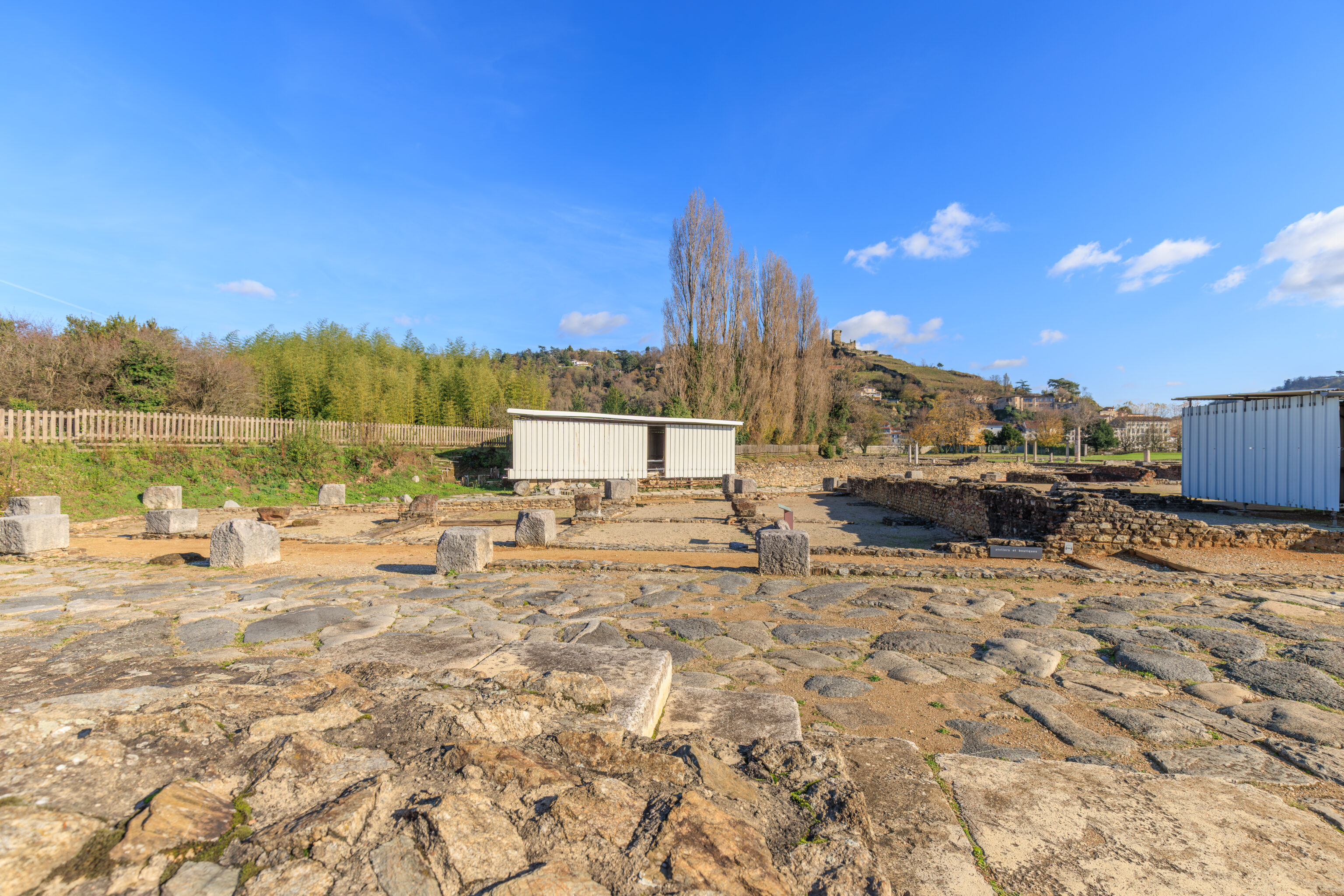 The walls do not encompass the entire urban area; excluded are, on the one hand, the southern plain where dwellings, large warehouses, and the circus were located, and on the other hand, the districts beyond the Rhône (Saint-Romain-en-Gal and Sainte-Colombe).