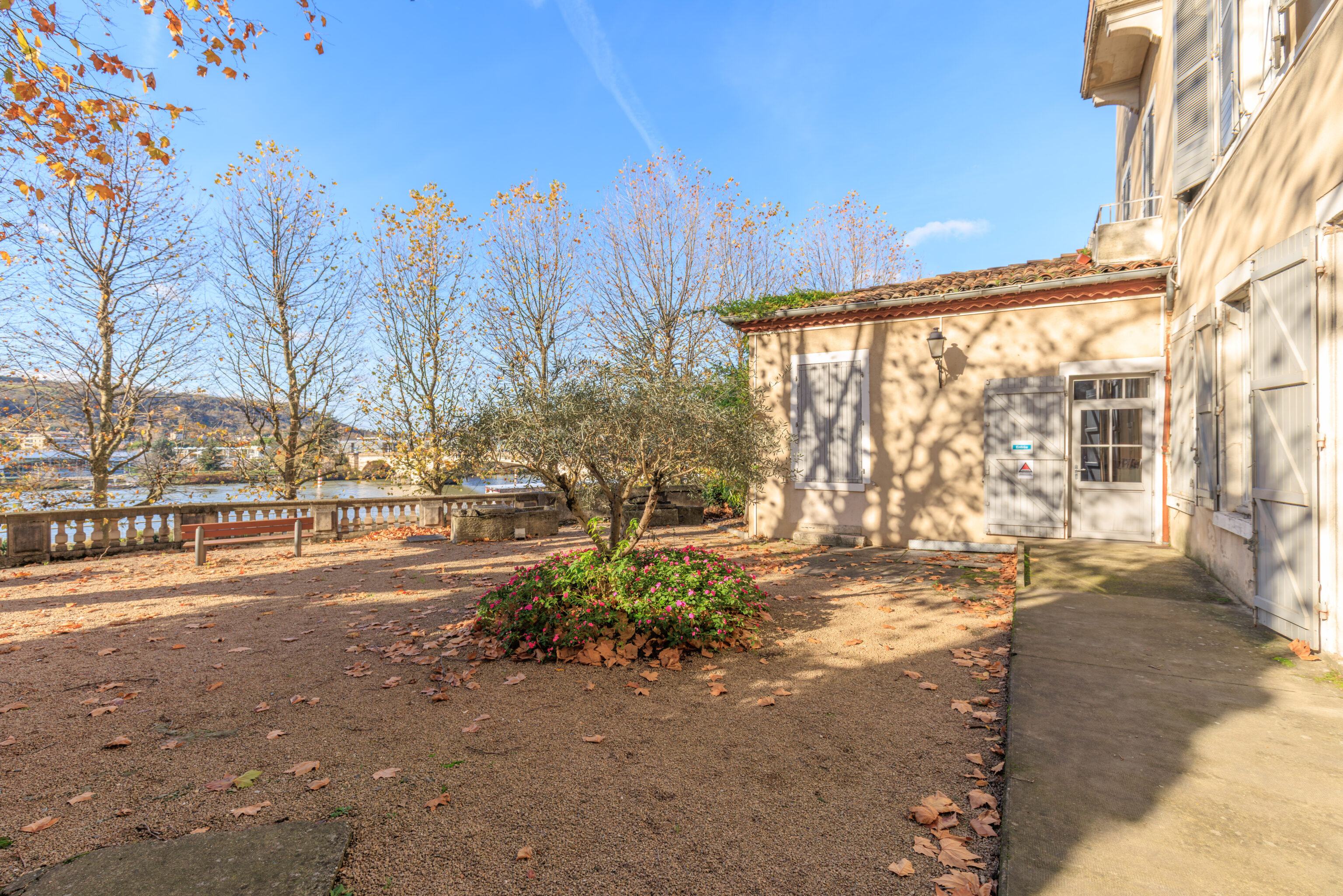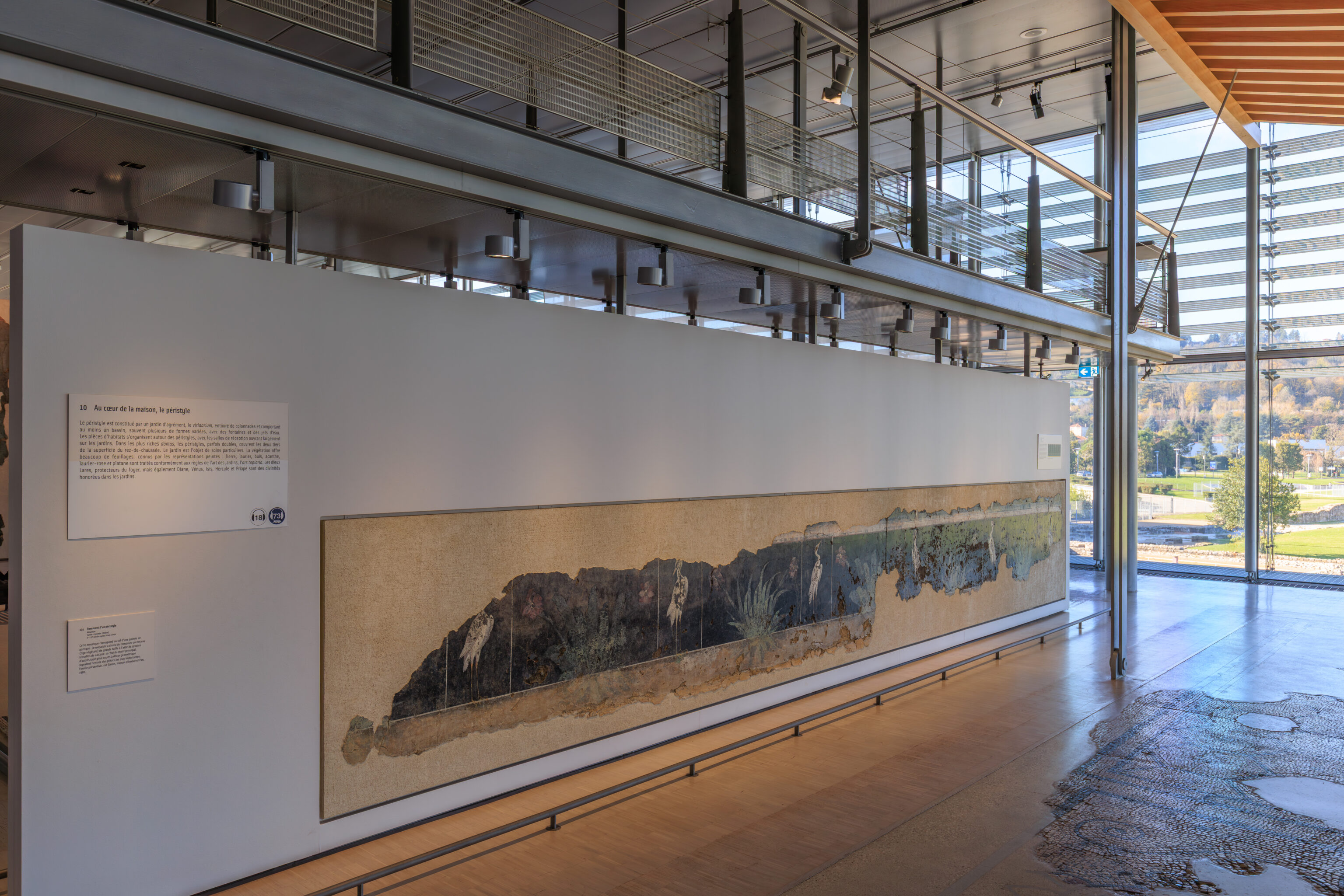 To the north of the garden, two archways mark the southeast corner of the ancient forum, the civic, legal, administrative, and religious heart of the city. One served as a monumental passageway to the esplanade of the Forum where the Temple of Augustus and Livia stood; the other provided access to the bay of the basilica, the Roman tribunal. At the foot of these archways, steps and a paved floor still remain.