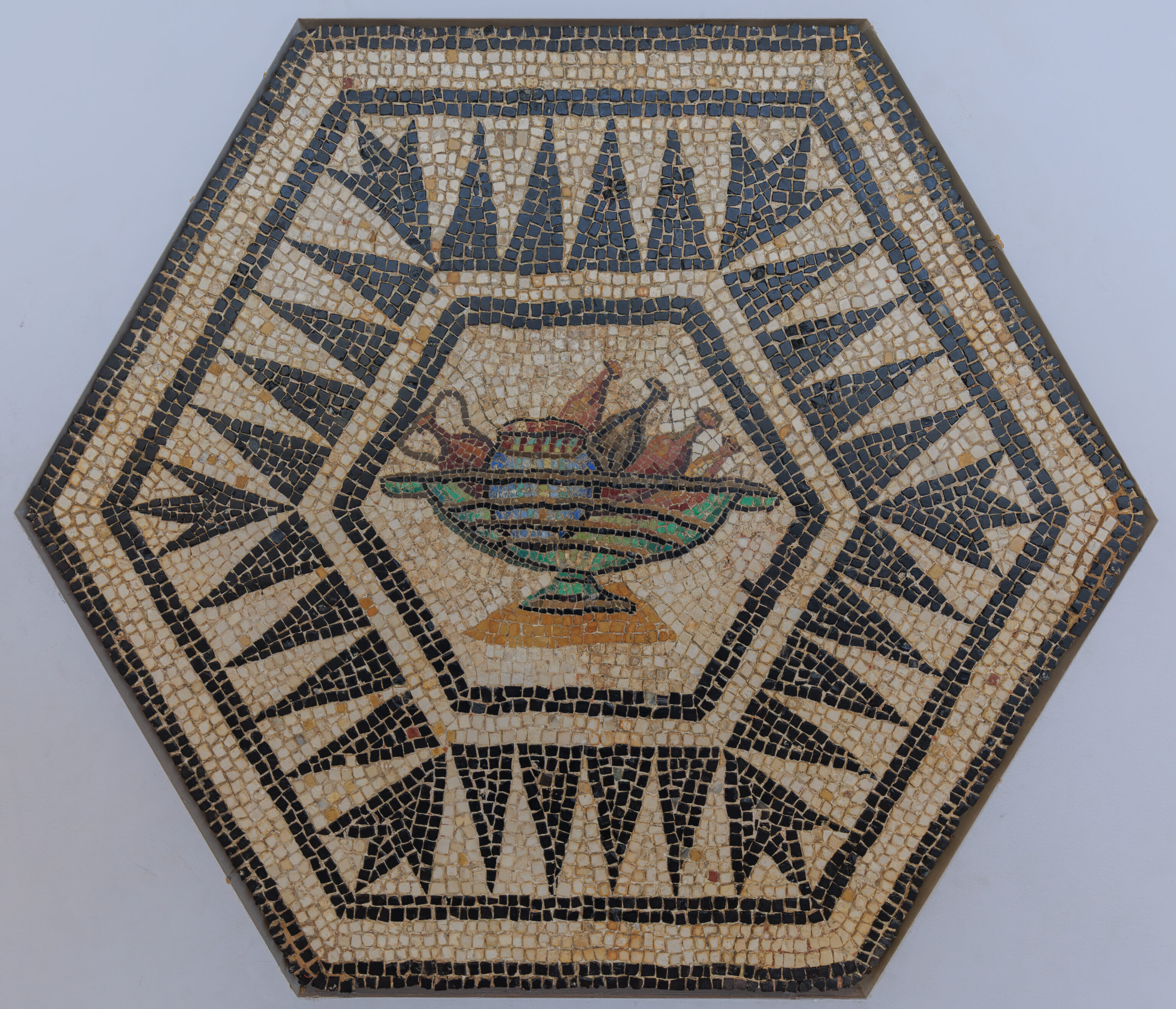 There is a mosaic heart on the ground here in front of the altar: