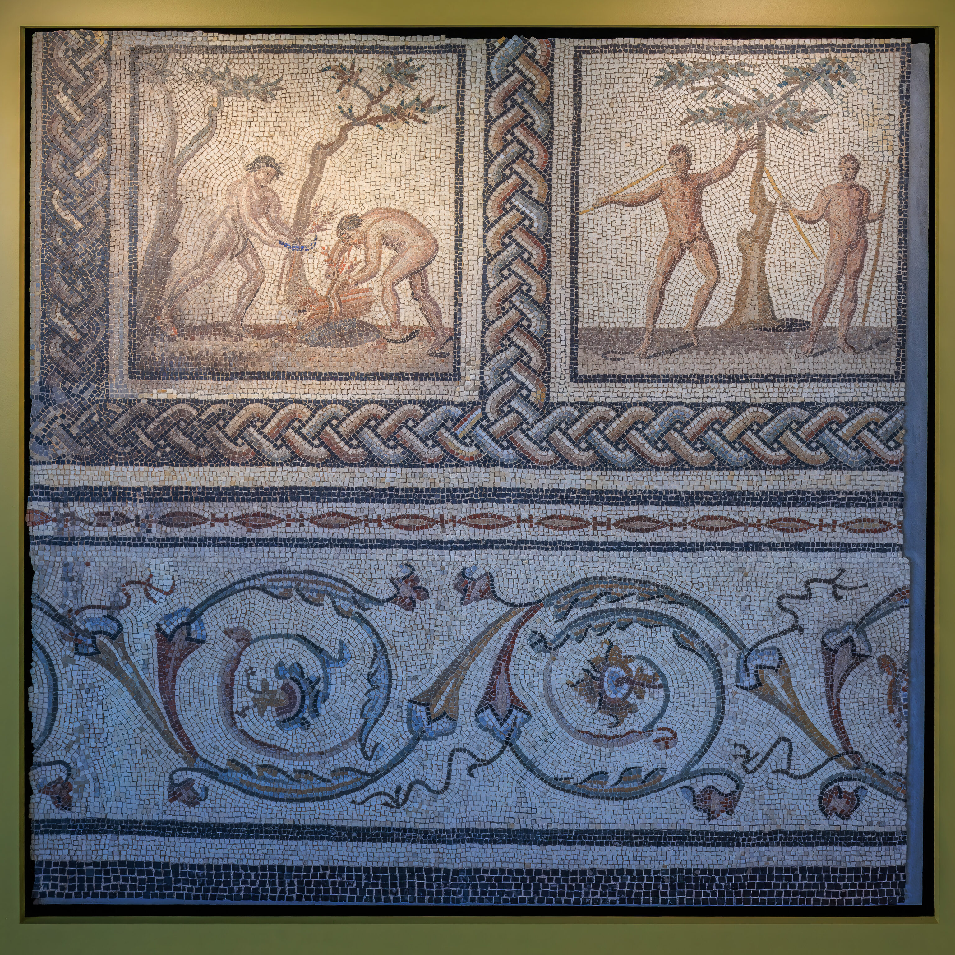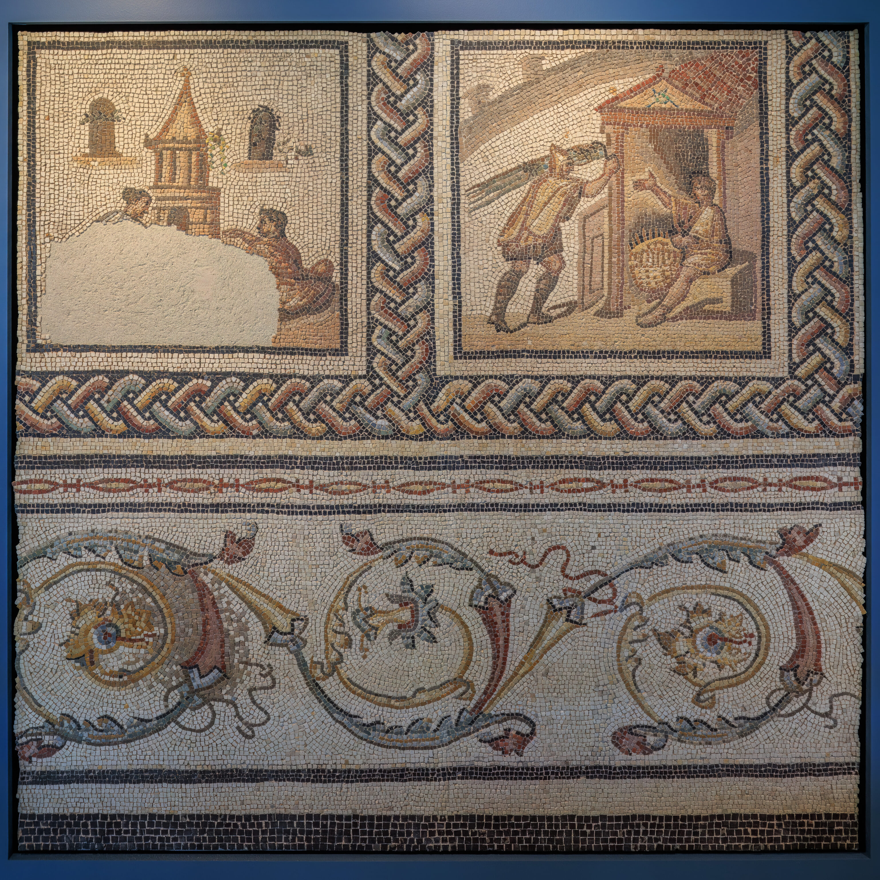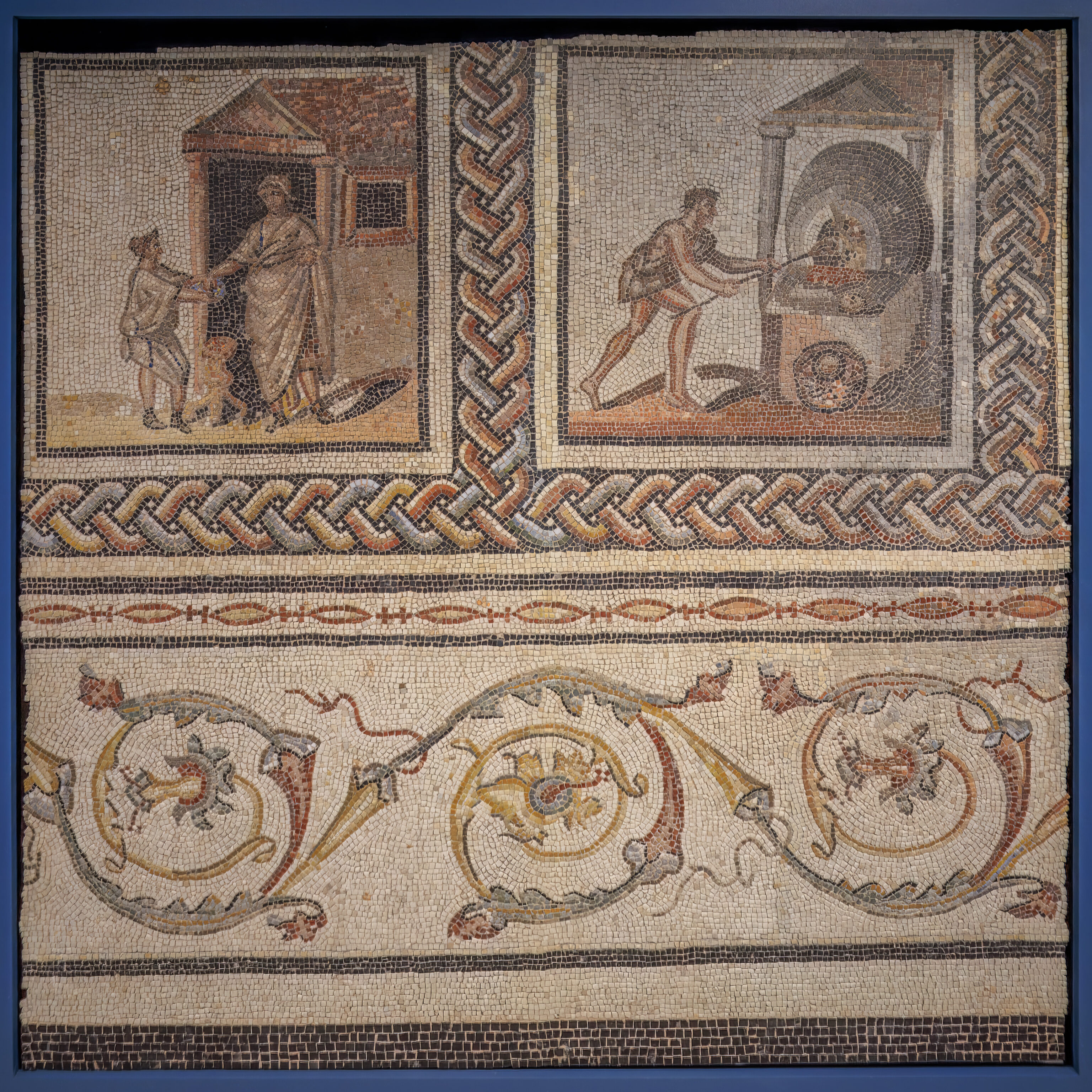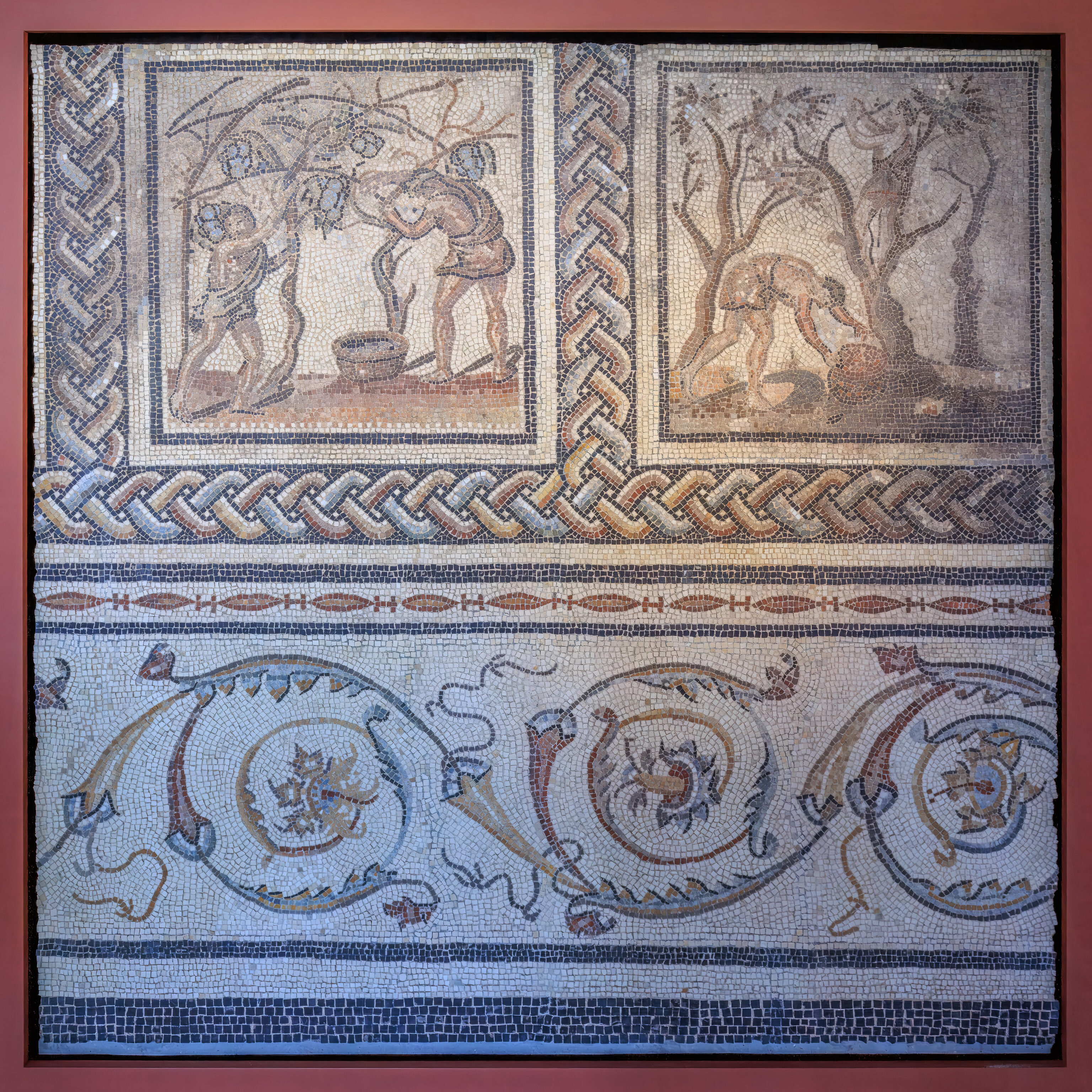 Finally, to the south of the garden, between two steep alleyways, lay a residential area consisting of shops and two houses. One of them, whose foundations and steps are still clearly visible, is nicknamed the House of the Oscilla, after the sculpted marble discs suspended in Roman houses, which were discovered during excavations.