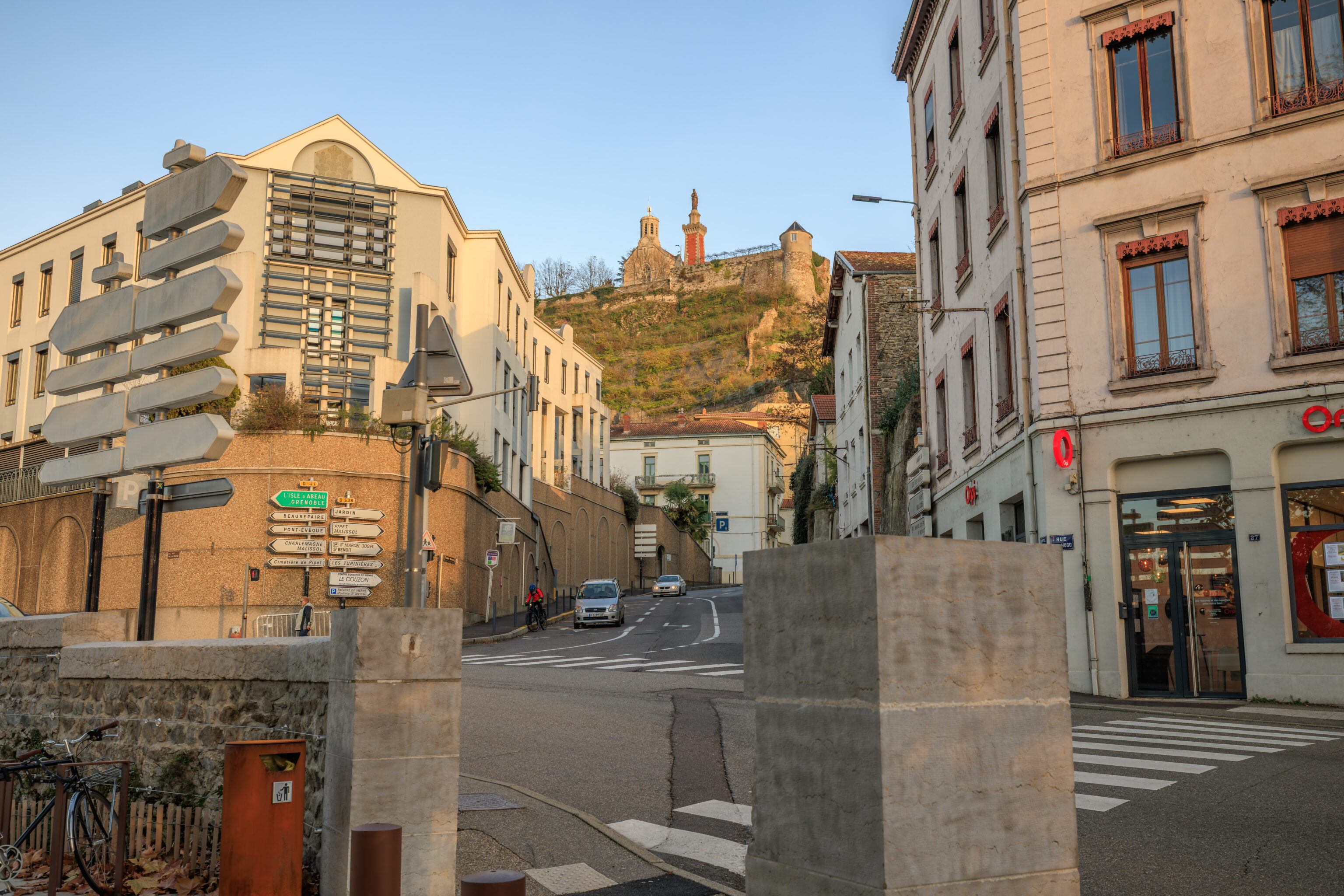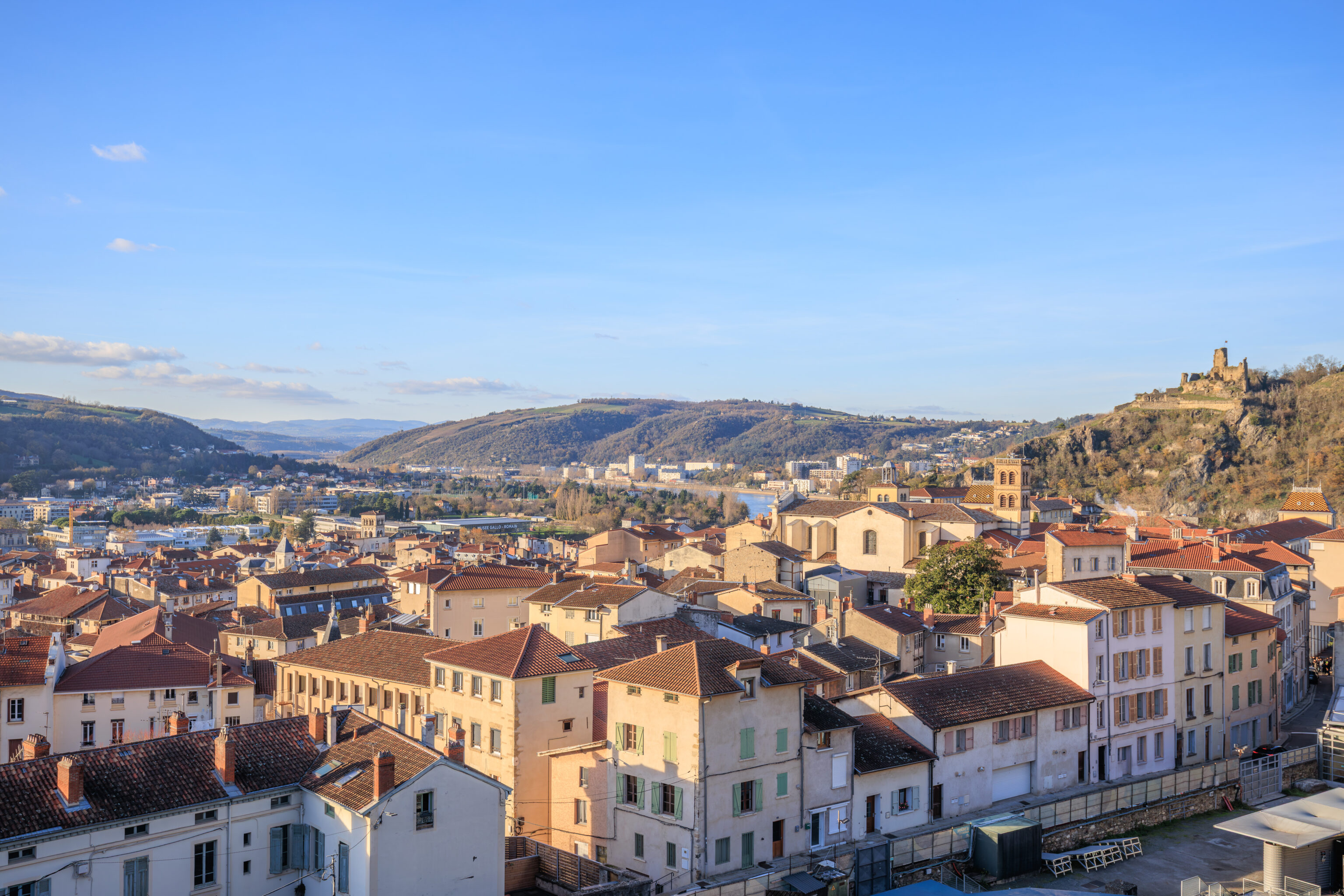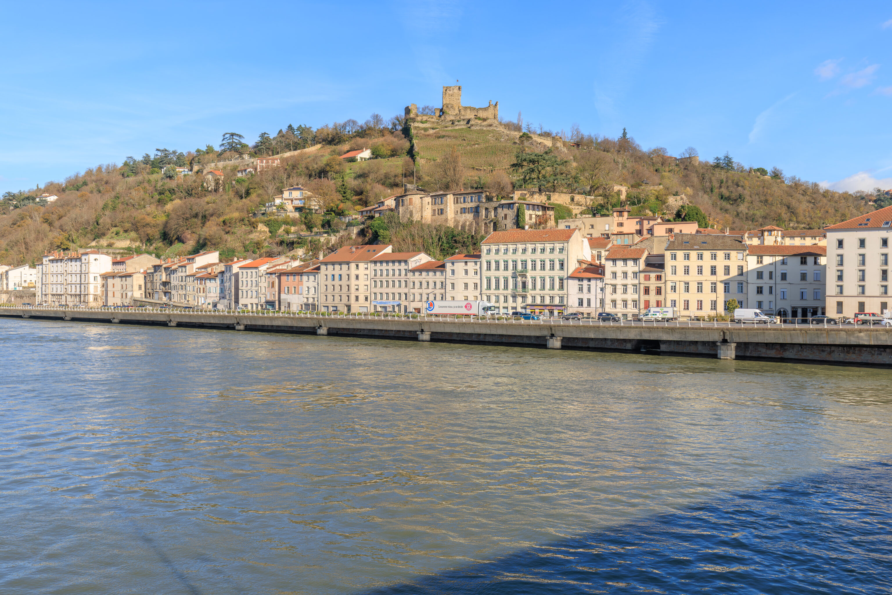 We arrived at Vienne at around 9:45am. The train station sits between a narrow slice of land between the Rhône and this hill to the east.