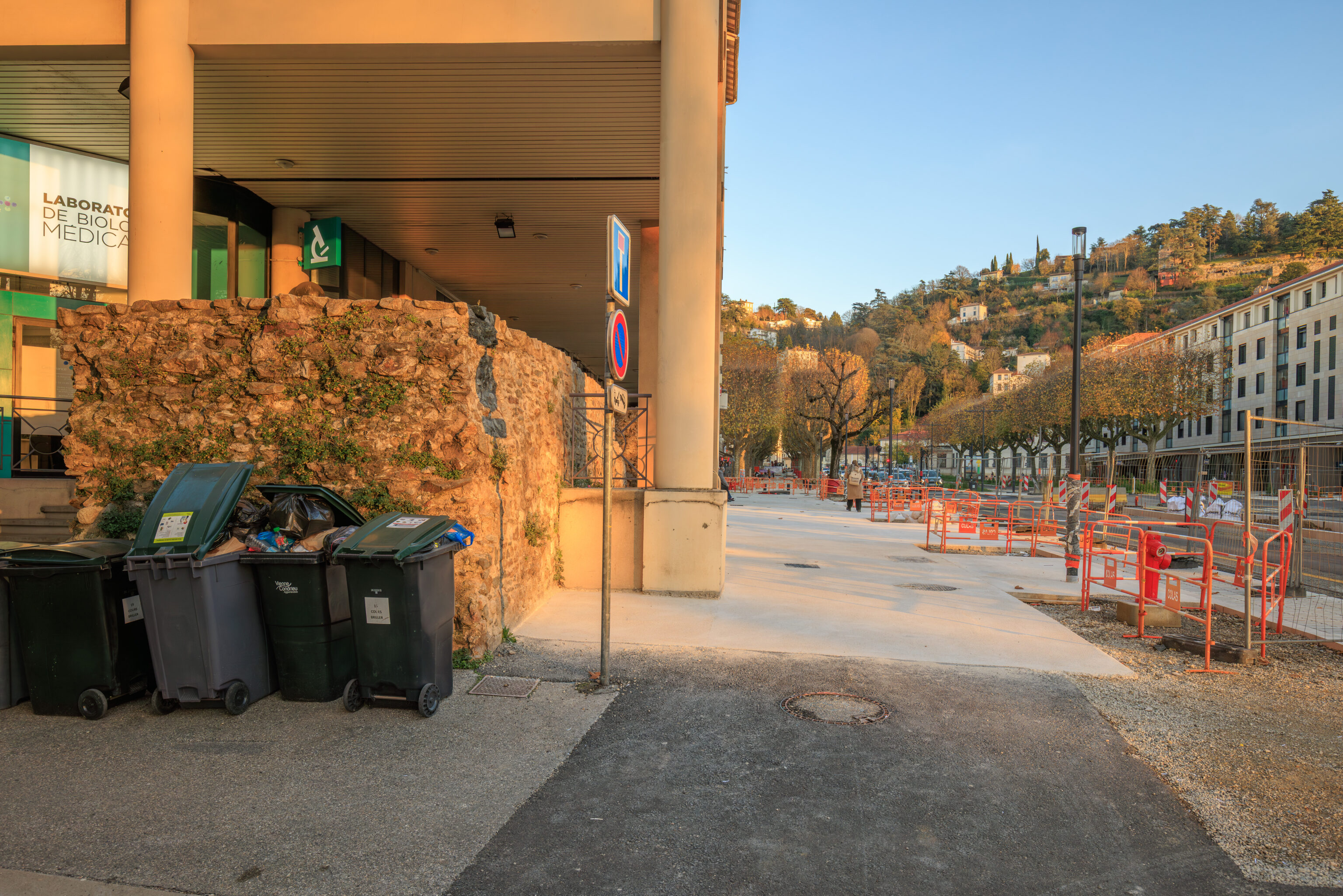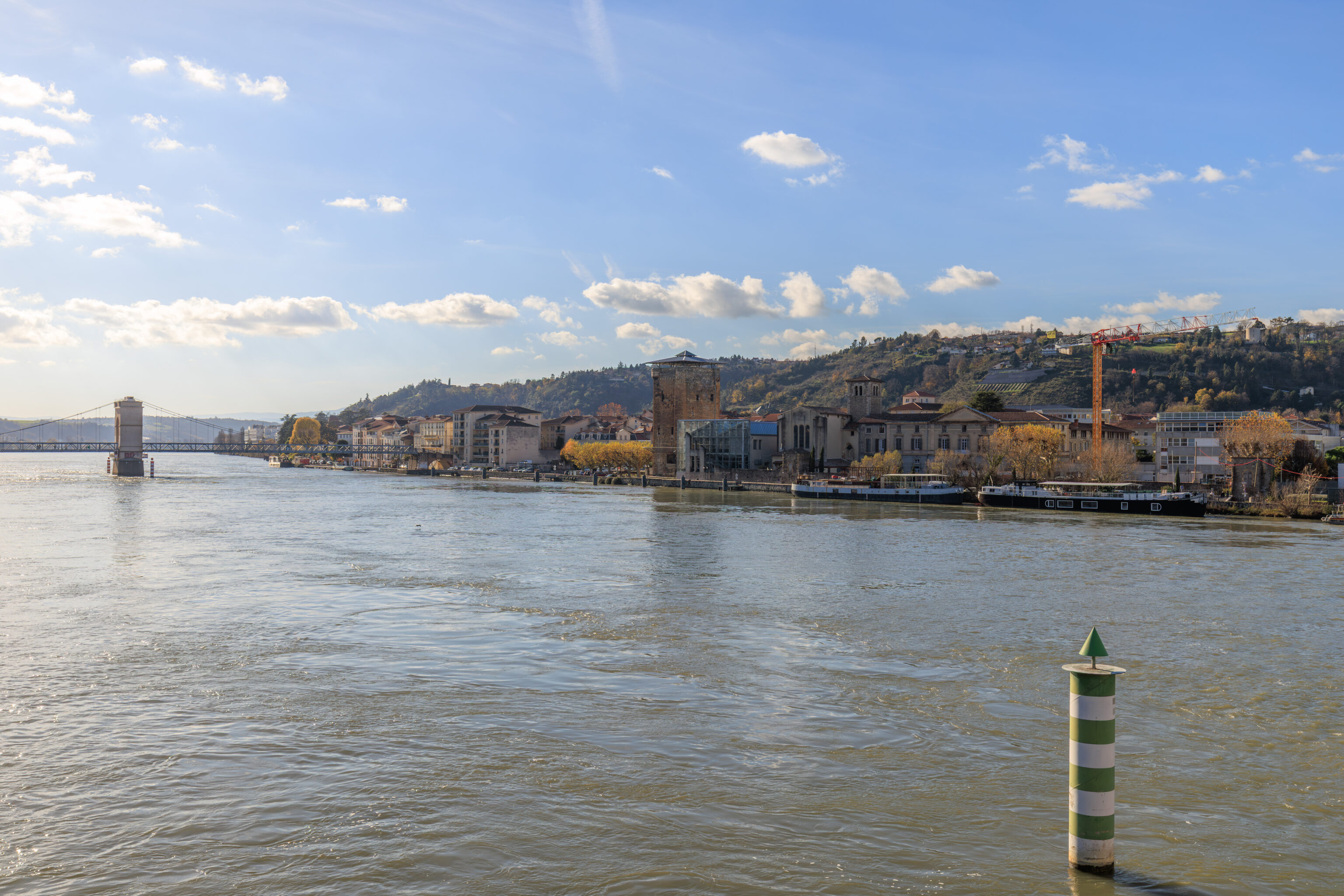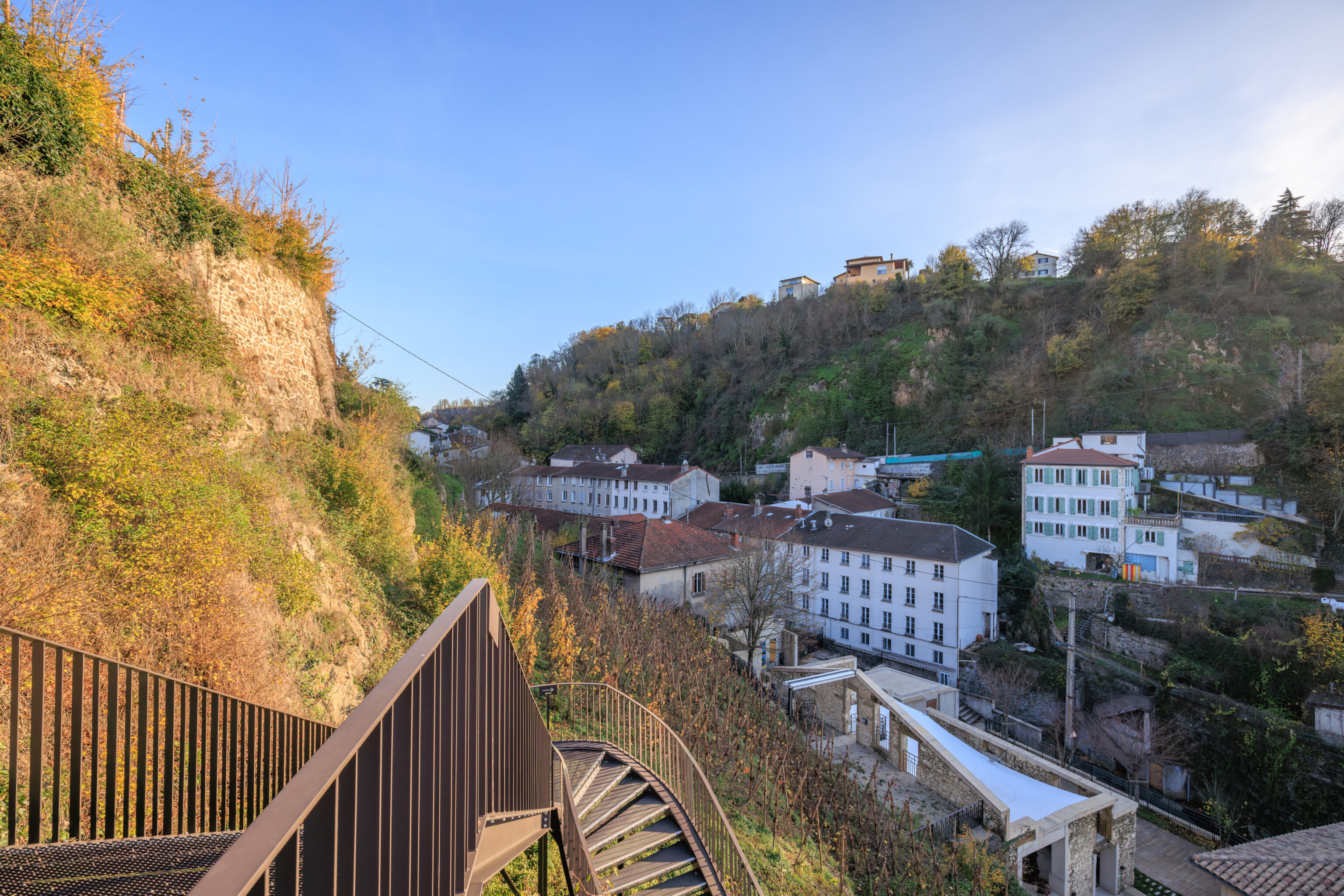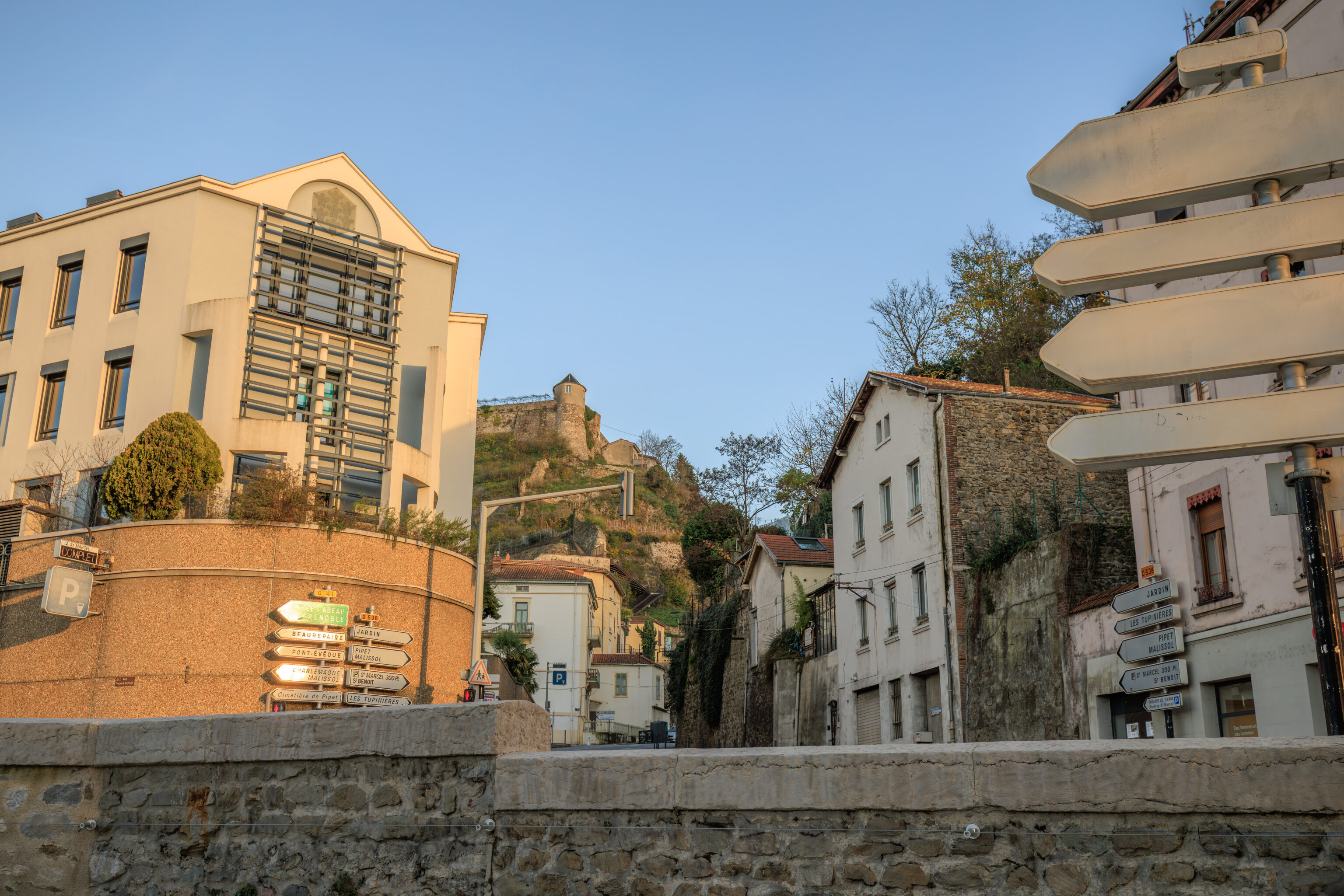 We arrived at Vienne at around 9:45am. The train station sits between a narrow slice of land between the Rhône and this hill to the east.