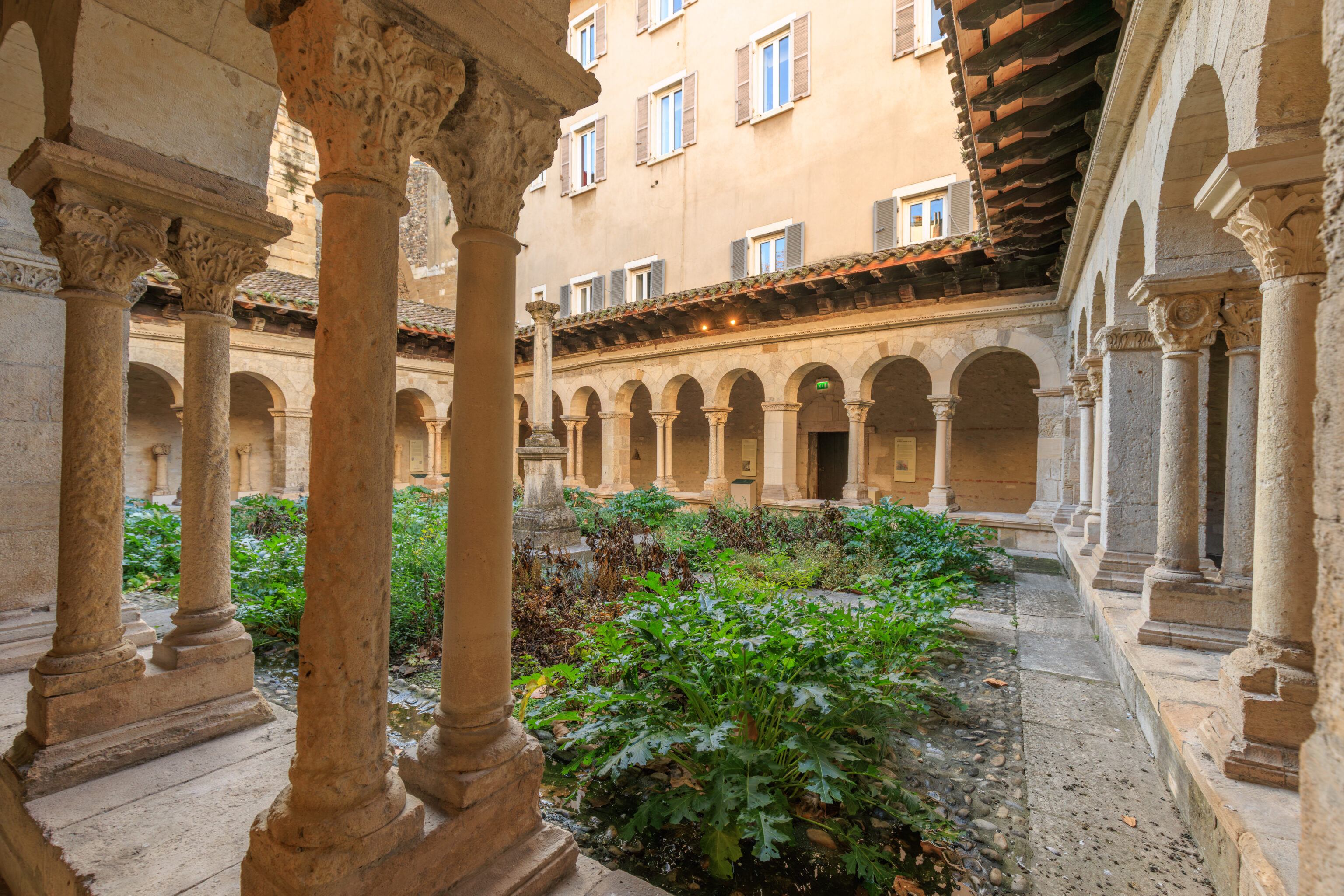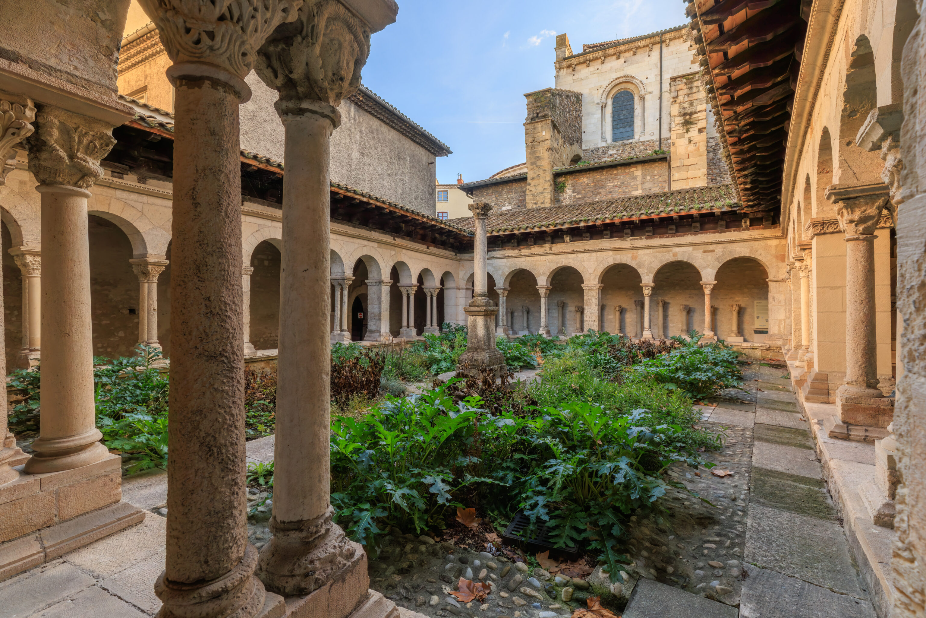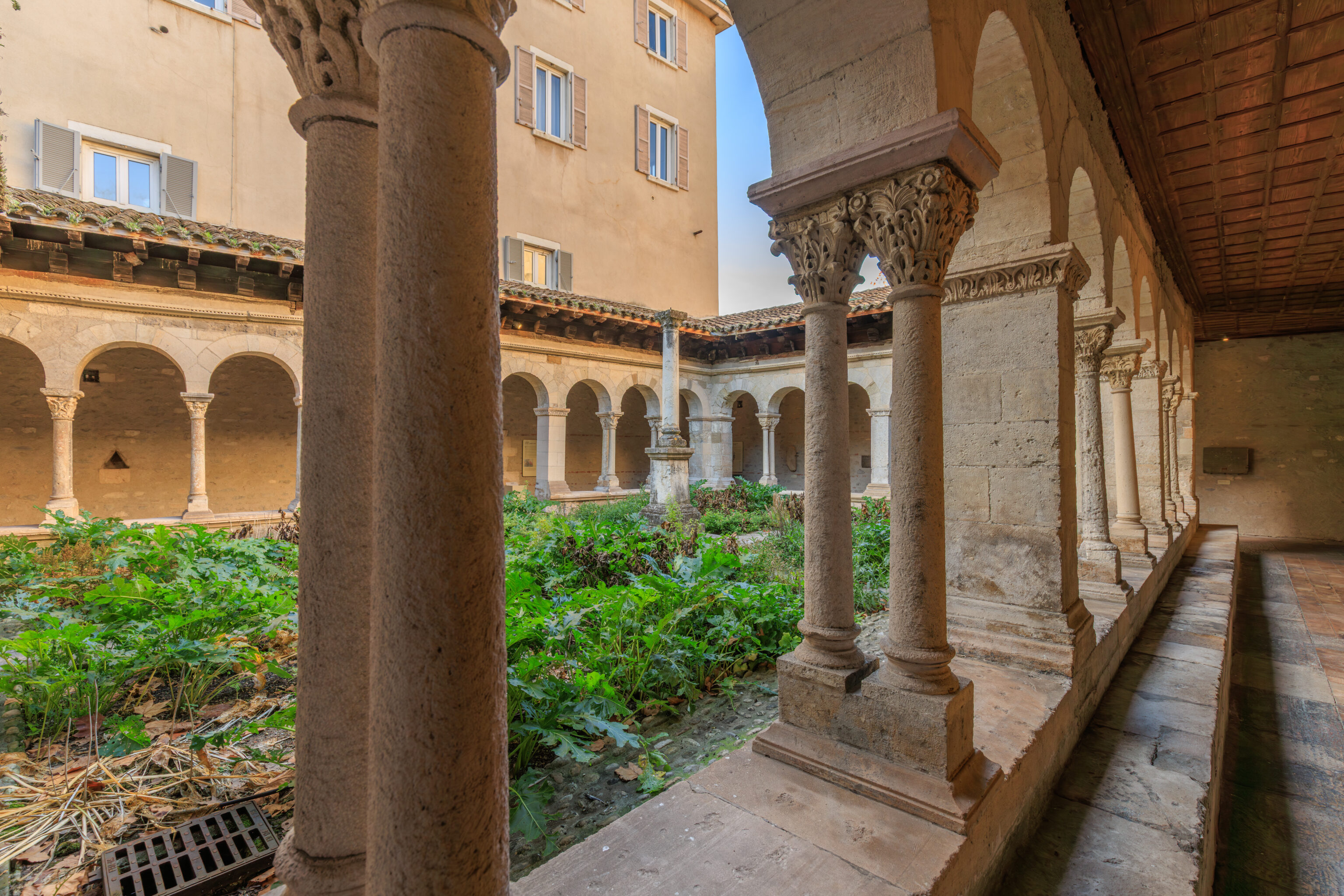 The cathedral church, which succeeded the cathedral group at the beginning of the Middle Ages, was transformed in the 12th century. The seven Romanesque bays (on the eastern side) with their 59 capitals date back to this period.