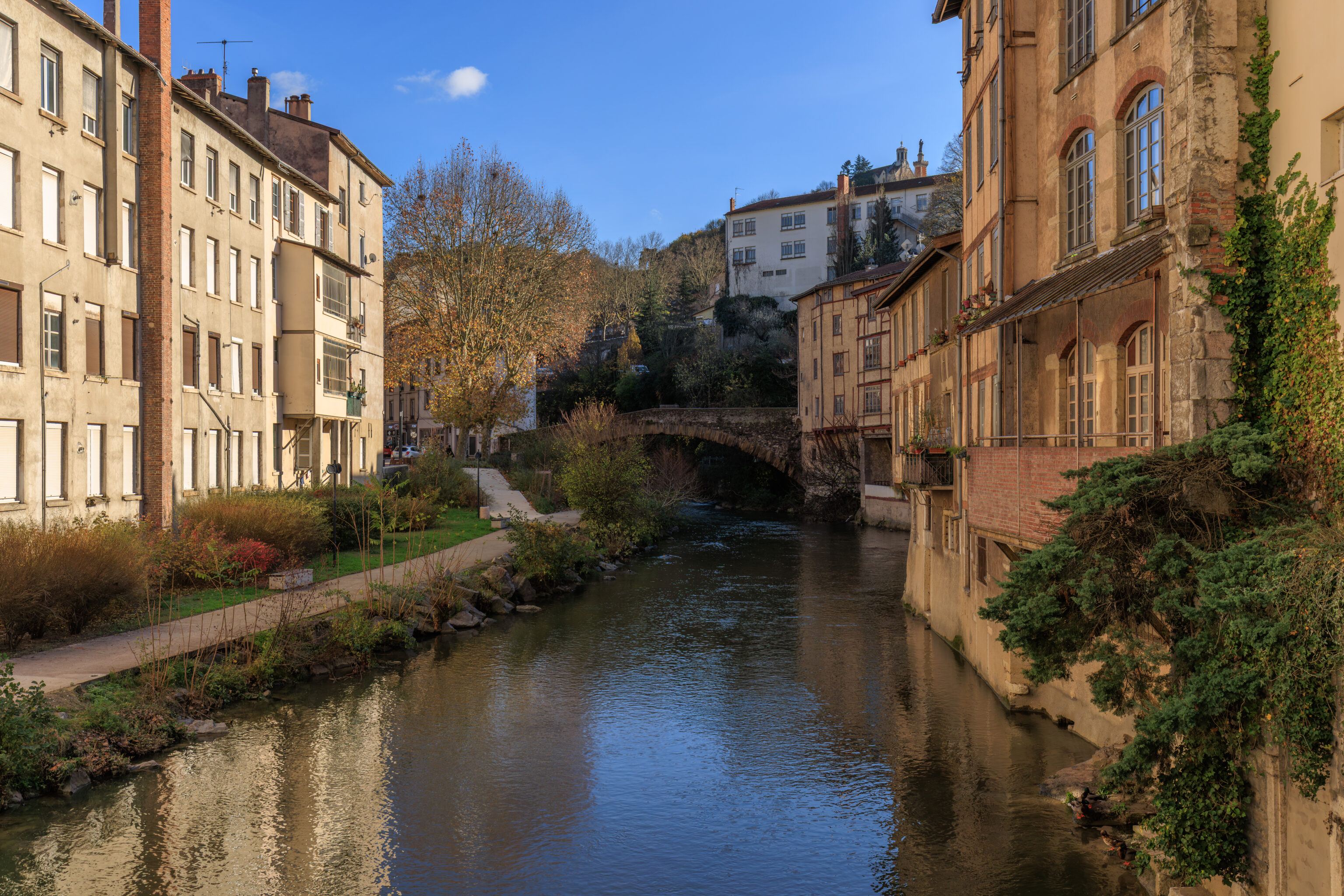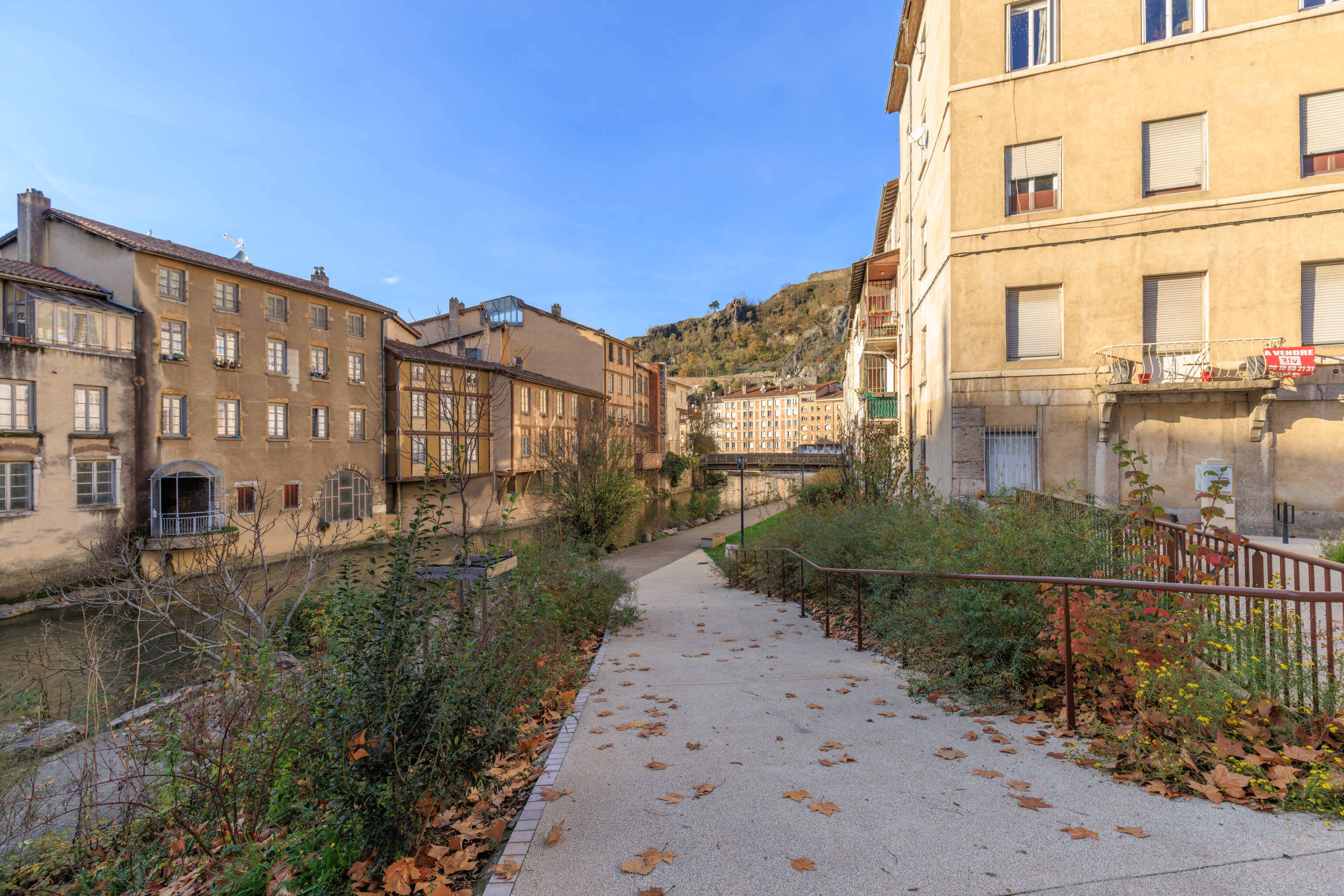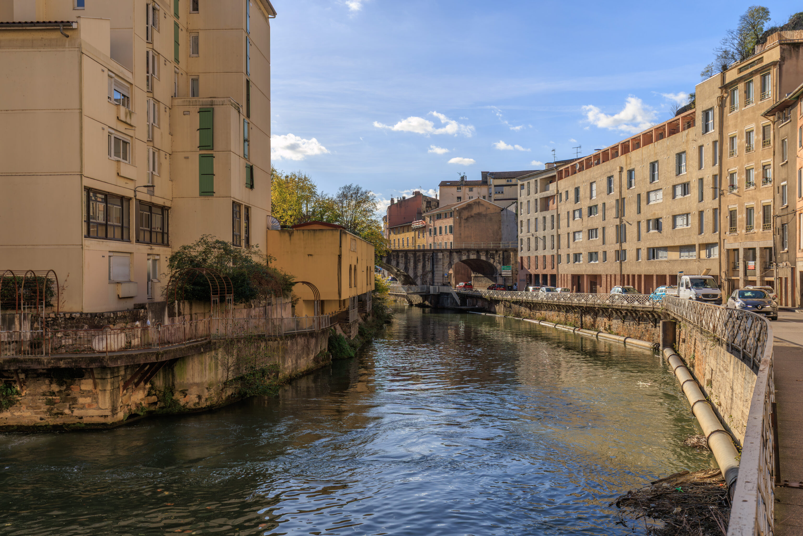 In the Middle Ages, housing and crafts retreated within the walls, defended to the north by the Serpaize Gate and to the east by the Fûterie Gate; beyond, on the road to Grenoble, a suburb was defended by the Orose or Servageot Gate (Place Louis-Revol). A hospital was founded in 1265 near the Church of Saint-Martin. The banks of the Gère River were home to a variety of activities: inns, slaughterhouses, mills, forges... Houses from this period are preserved on Rue du Port-de-l'Écu, Rue de la Petite-Cocarde, and along the Gère riverfront.