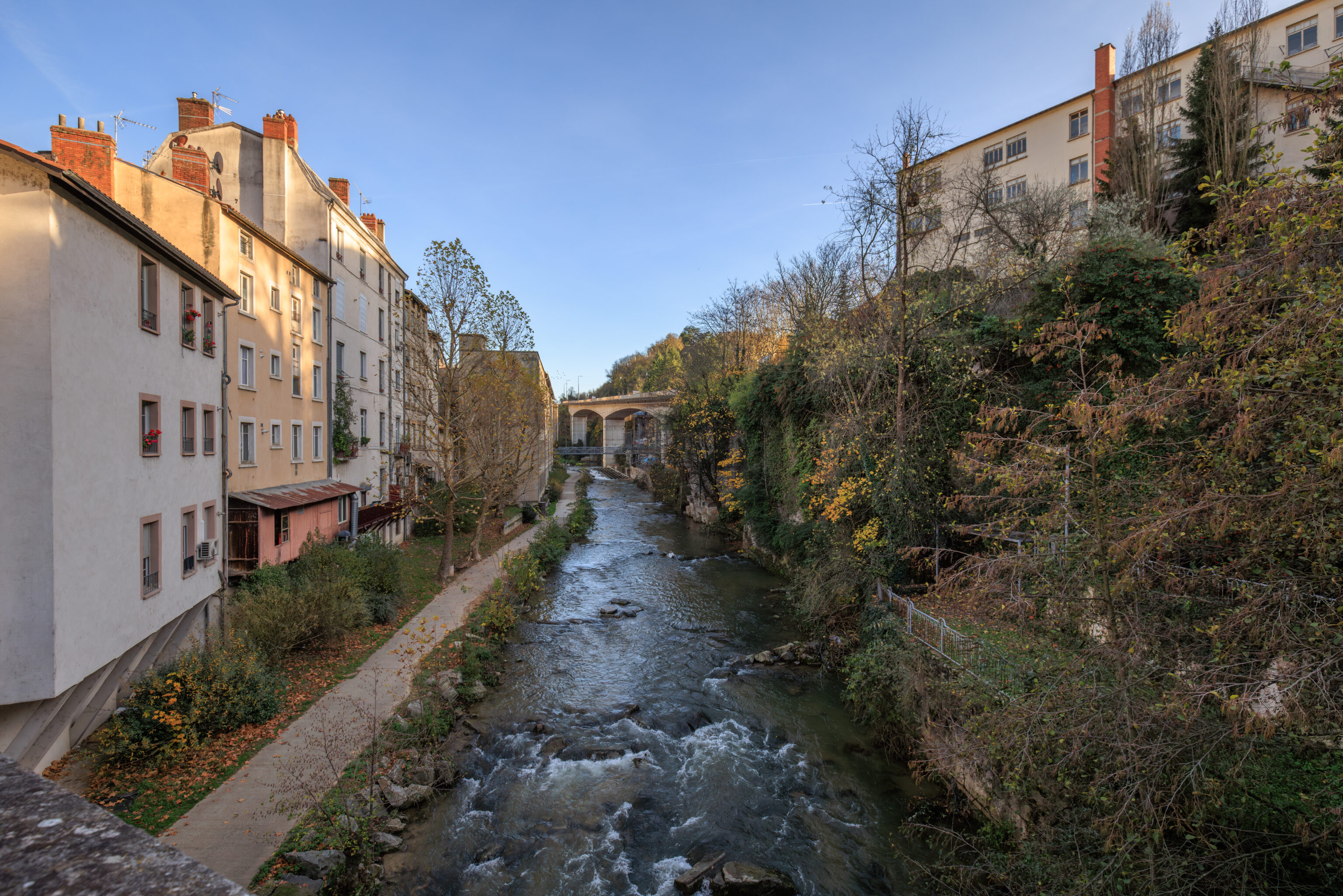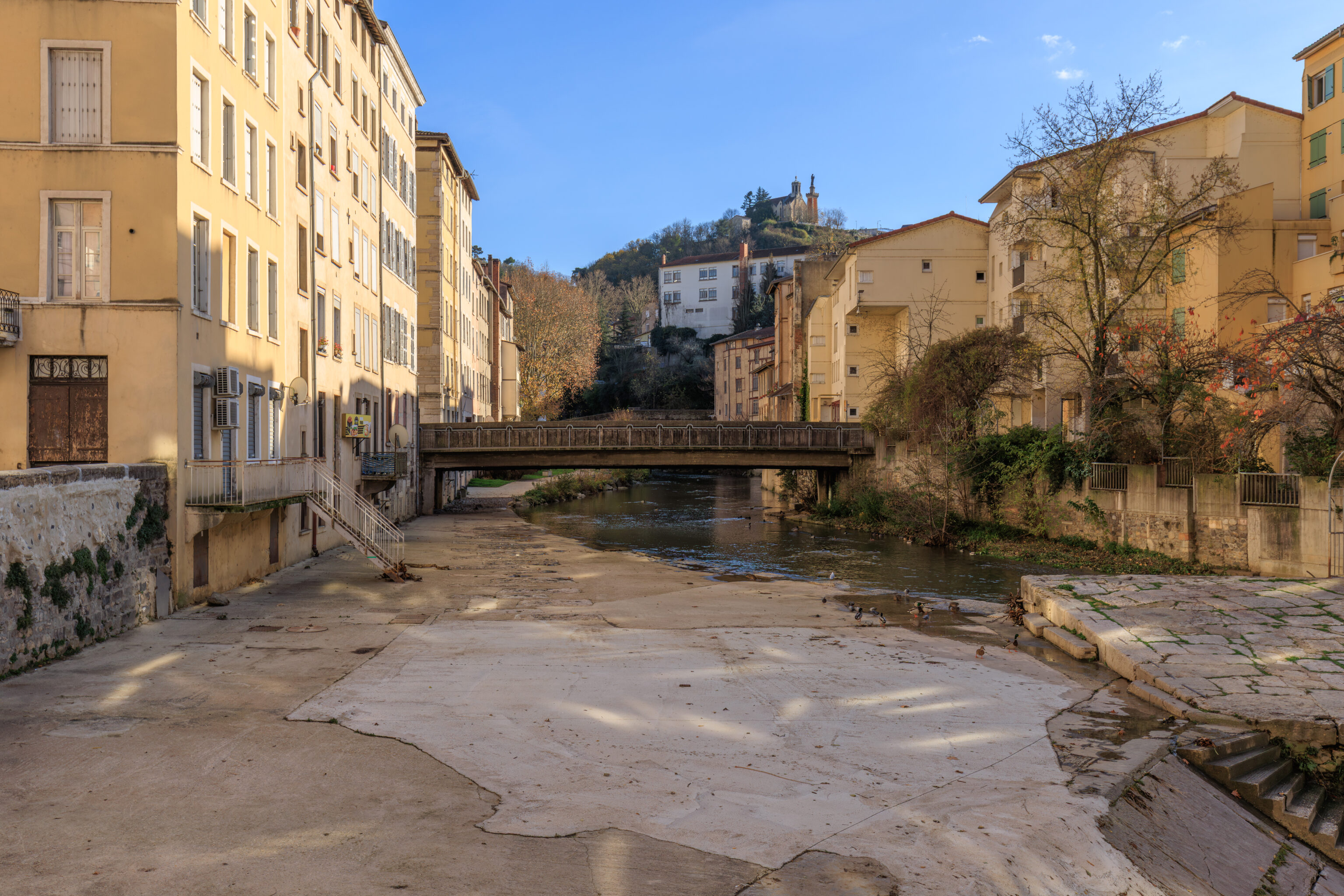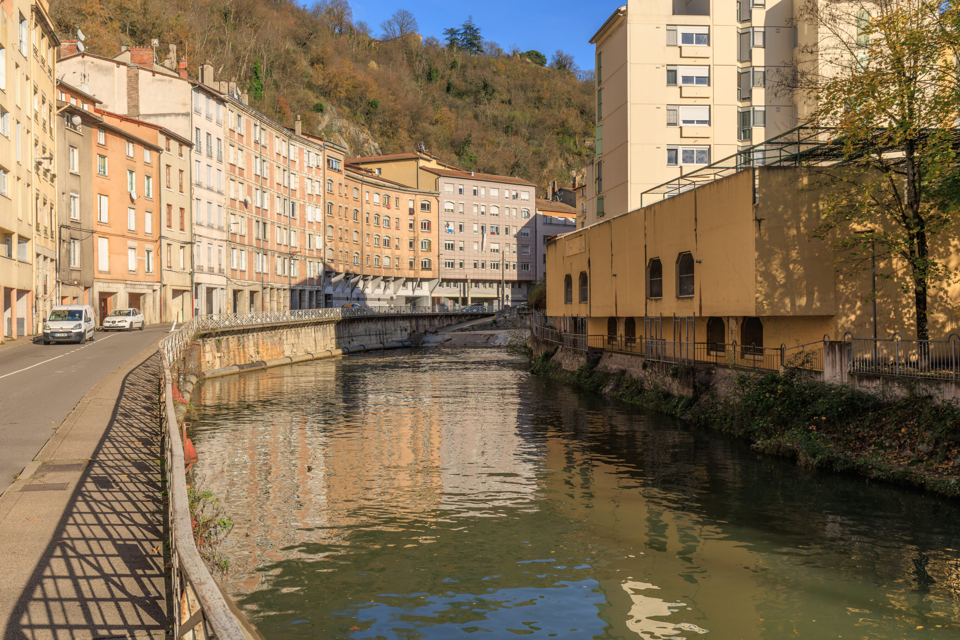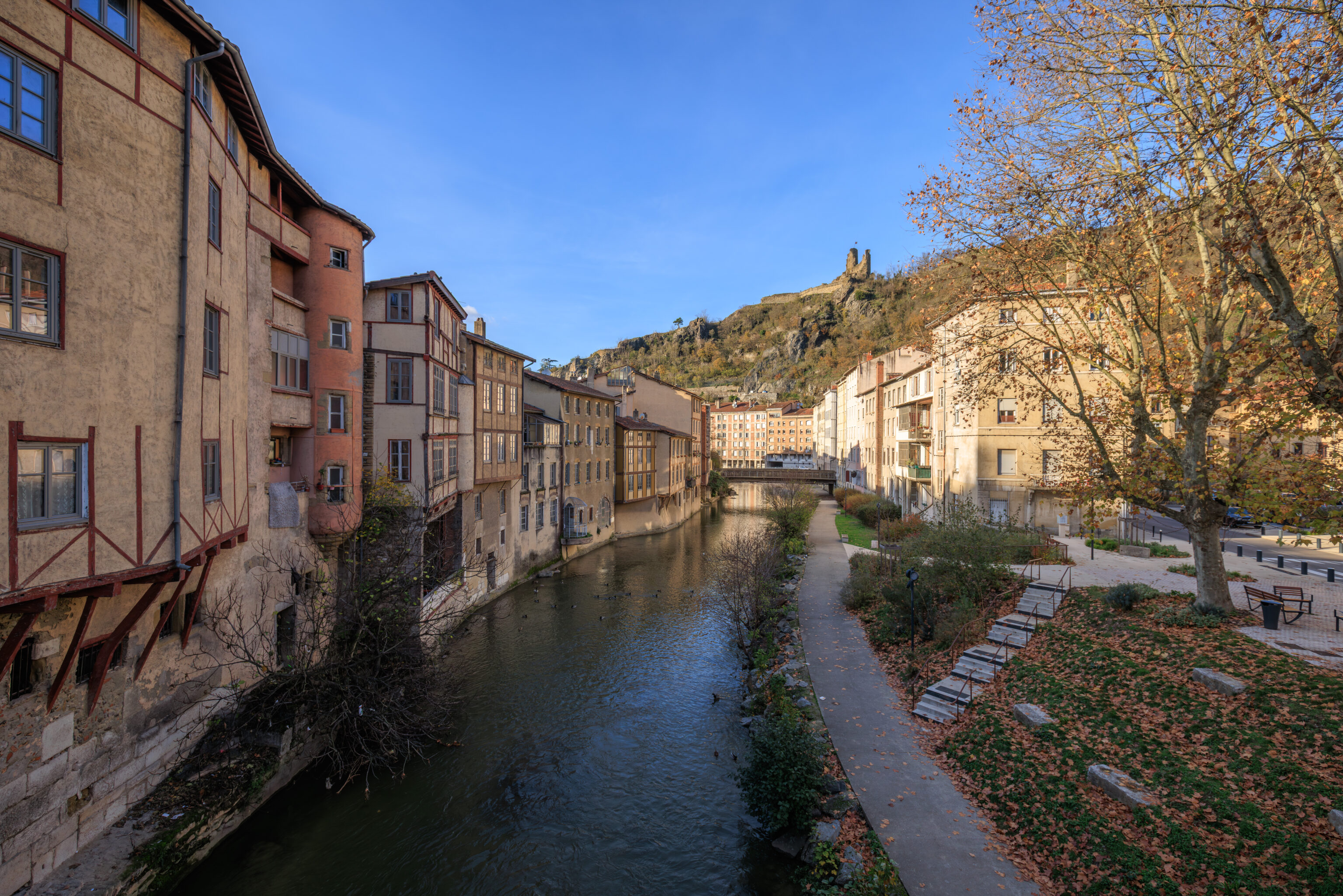 In the Middle Ages, housing and crafts retreated within the walls, defended to the north by the Serpaize Gate and to the east by the Fûterie Gate; beyond, on the road to Grenoble, a suburb was defended by the Orose or Servageot Gate (Place Louis-Revol). A hospital was founded in 1265 near the Church of Saint-Martin. The banks of the Gère River were home to a variety of activities: inns, slaughterhouses, mills, forges... Houses from this period are preserved on Rue du Port-de-l'Écu, Rue de la Petite-Cocarde, and along the Gère riverfront.