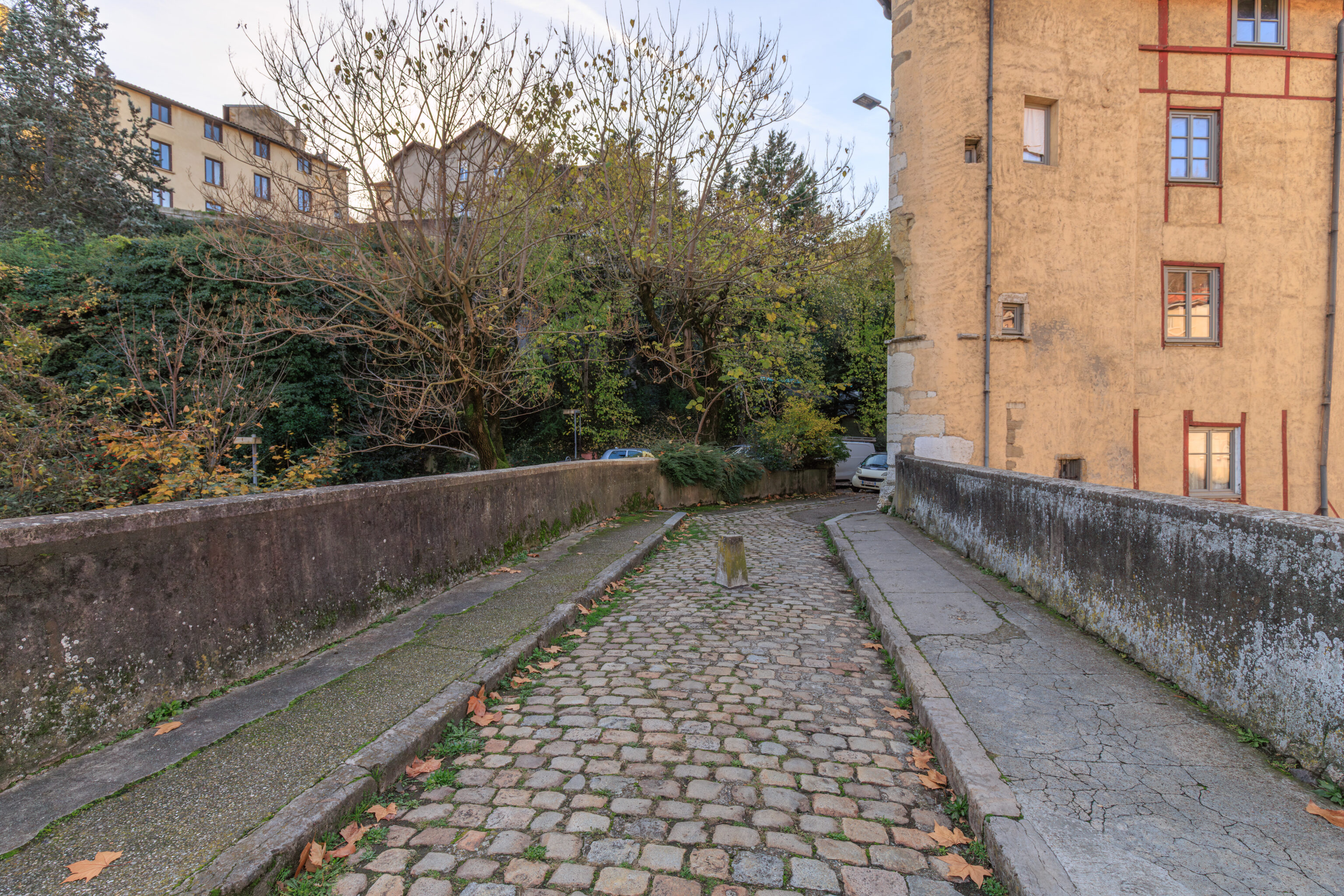 The Gère Bridge (Place Saint-Louis) existed in Roman times at the start of the road to Lyon; other bridges are mentioned in the 10th century. The Saint-Martin Bridge was restored by Archbishop Jean de Bernin (1217-1266). Destroyed by a flood in 1381, it was rebuilt in 1400. A stone cross stood in the middle, the base of which can still be seen. A square tower, the Rochette Gate, commanded it to the south; it was demolished in 1648.