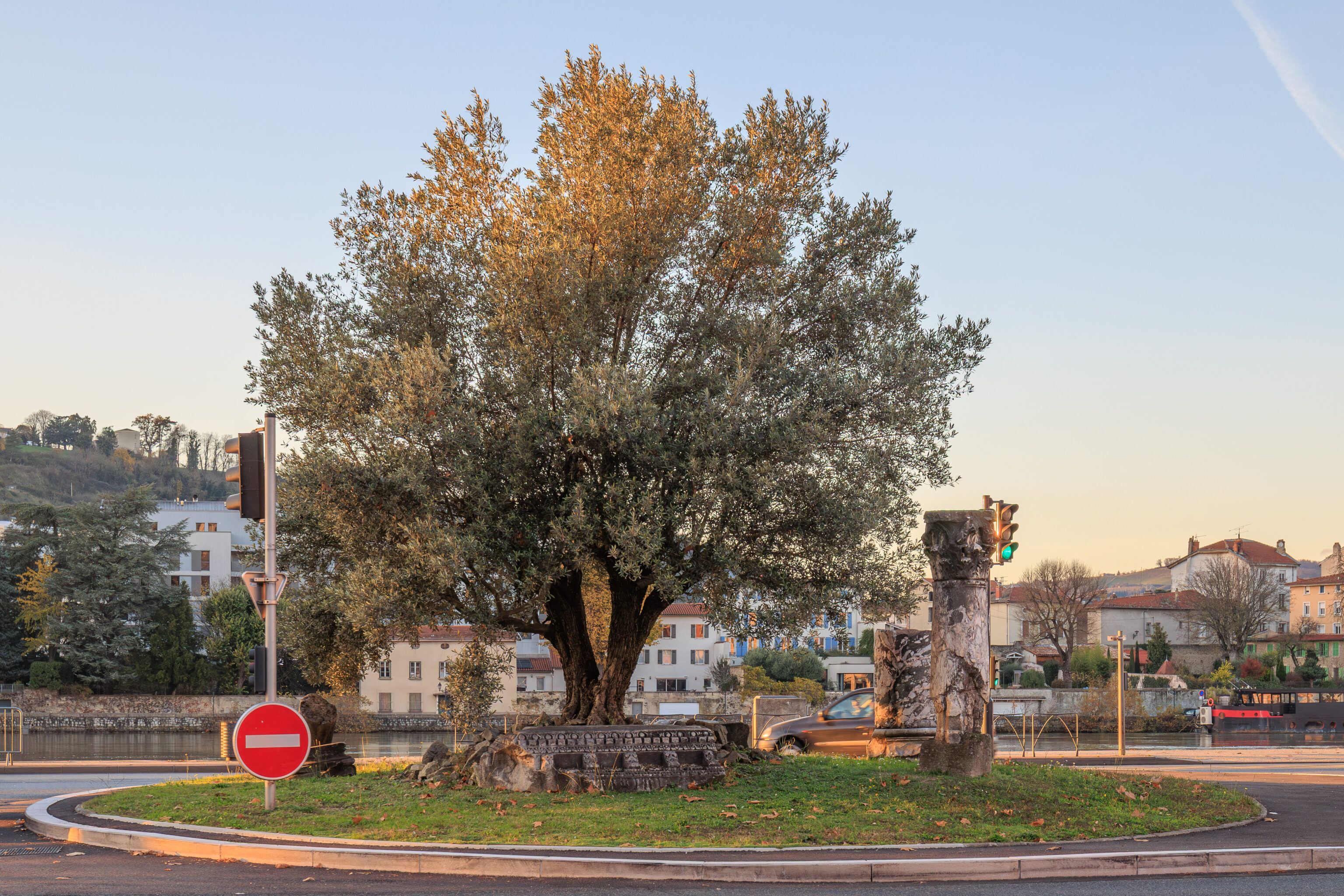 We continued to the west, reaching a traffic circle at the western shore of the Rhône. There were pieces of ruins within the traffic circle.