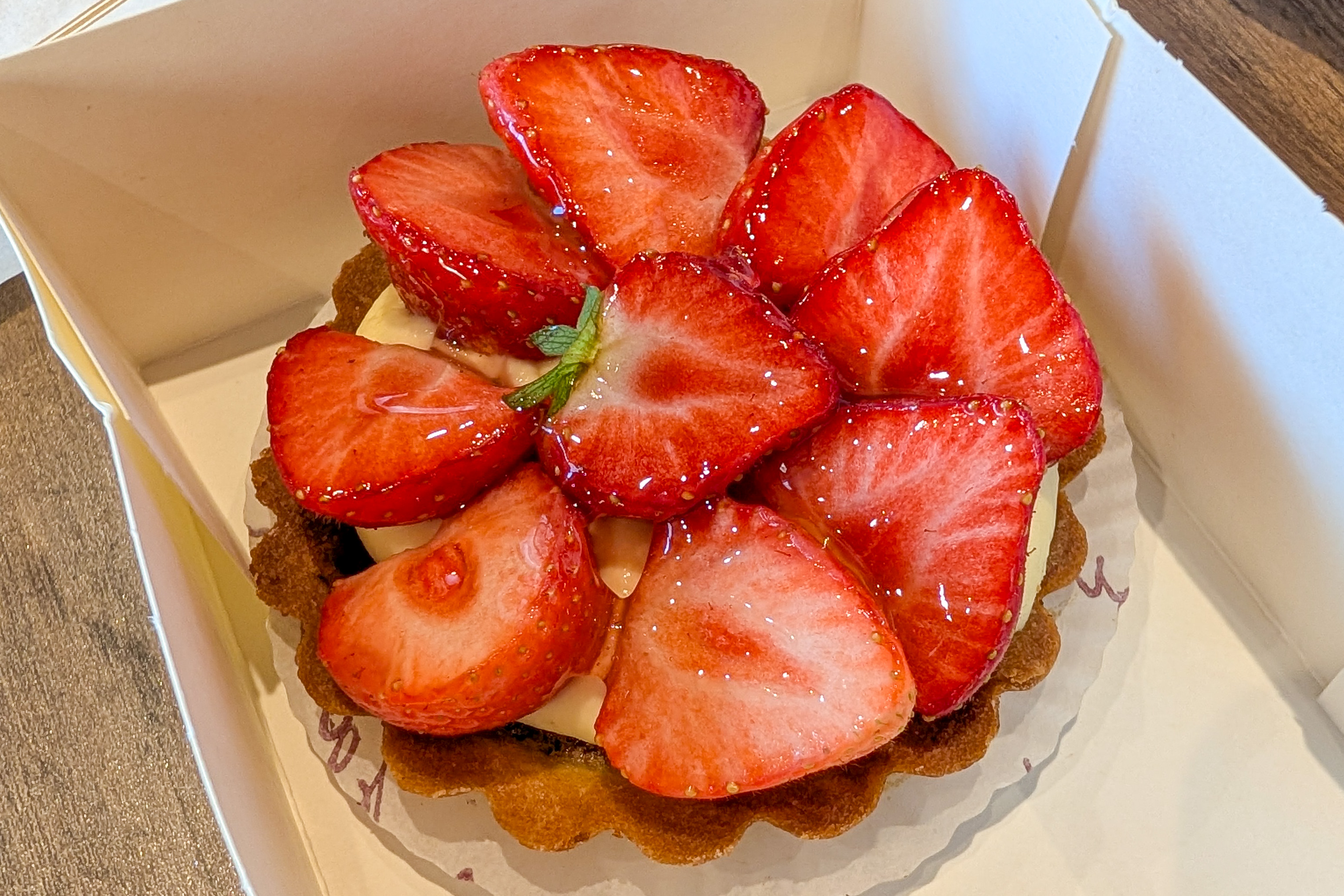 We got a strawberry croissant and some cheese pastry. We had the cheese pastry heated. It was terrible. The strawberry croissant was much better, but not really French good. Unfortunately, while woman running the shop was friendly, this is a place to skip. The Google Maps reviews aren’t great either with a 3.5 overall rating and many 1 star reviews.