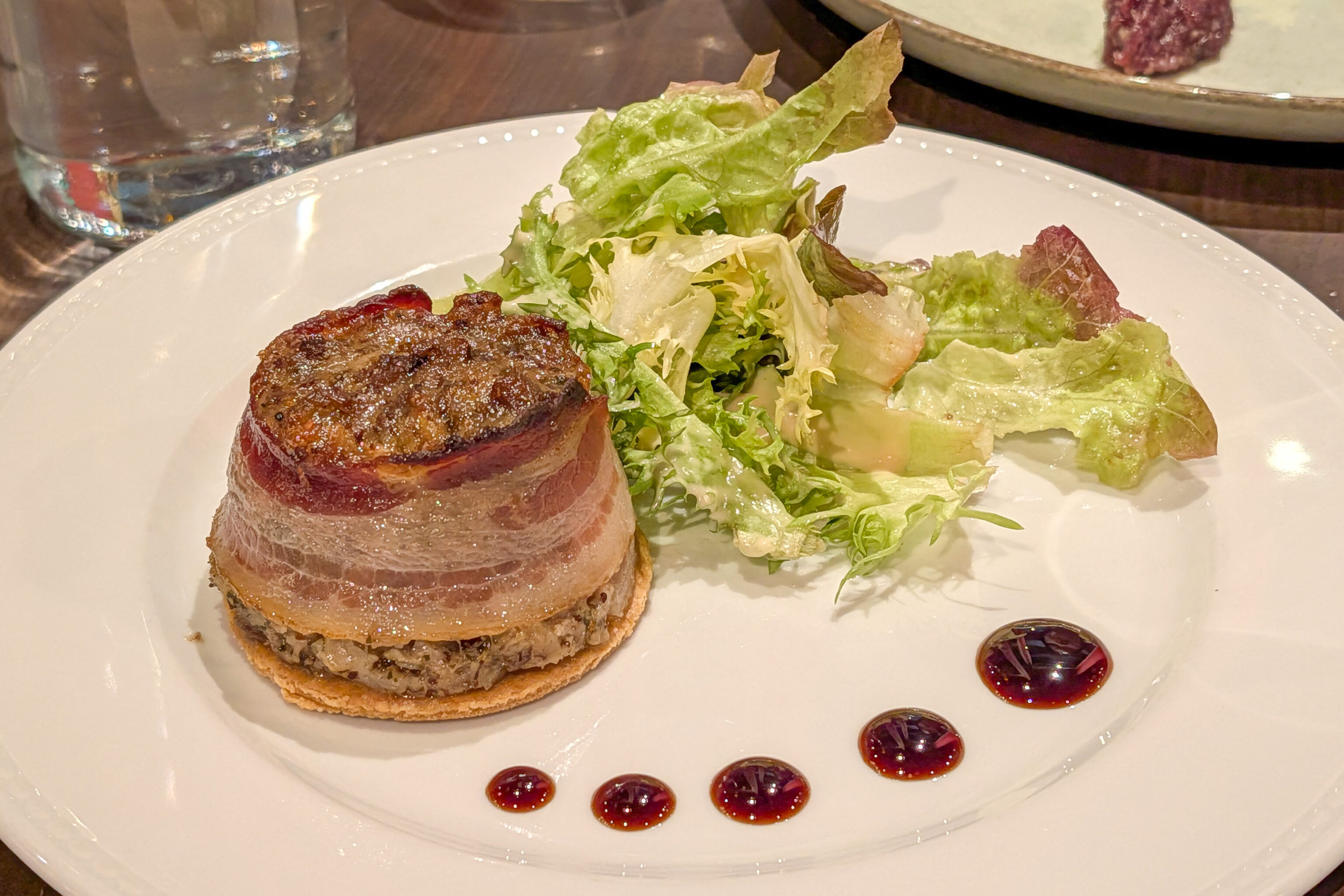We weren’t sure what we were getting here with pigs feet and snails. It was excellent, particularly with the bacon wrapped around it!