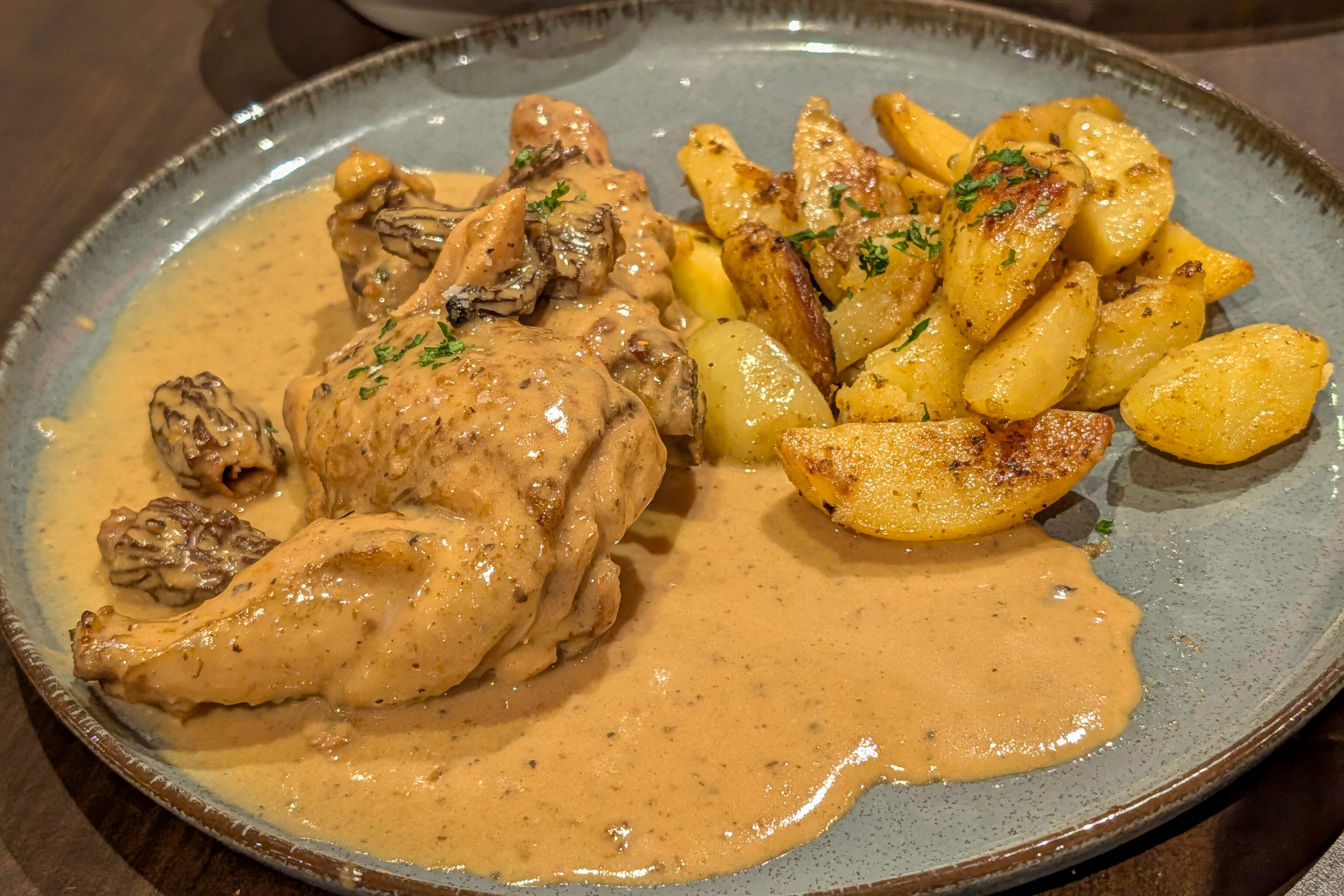 For one of our mains, we ordered the plat du jour, which was something like farmer’s chicken. It also had the word black, beyond that, we don’t recall. It was again excellent. The chicken was well cooked and the sauce was fantastic.