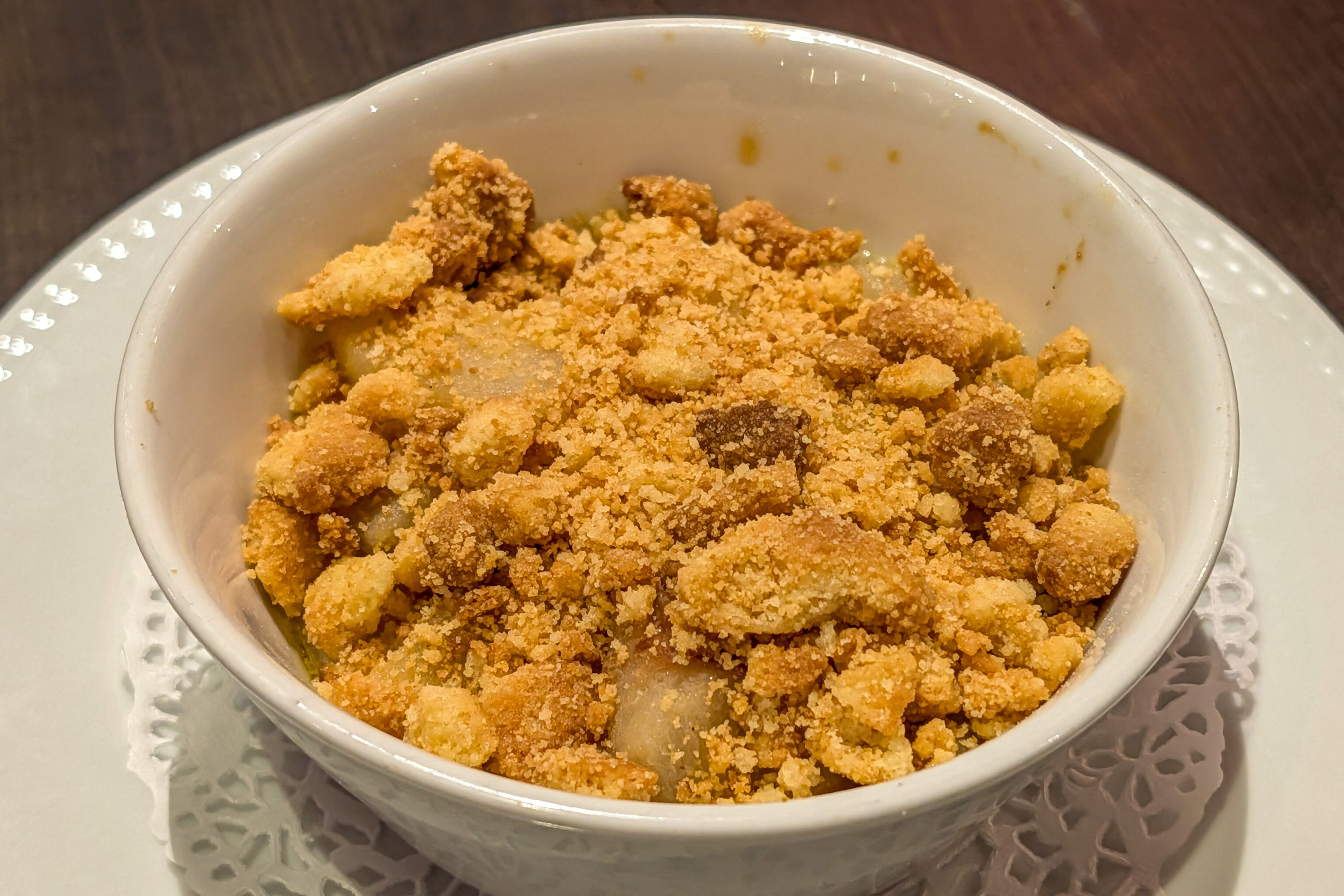 The pear crumble was pretty straightforward and what we expected. An excellent dinner ending our last full day here in Lyon.