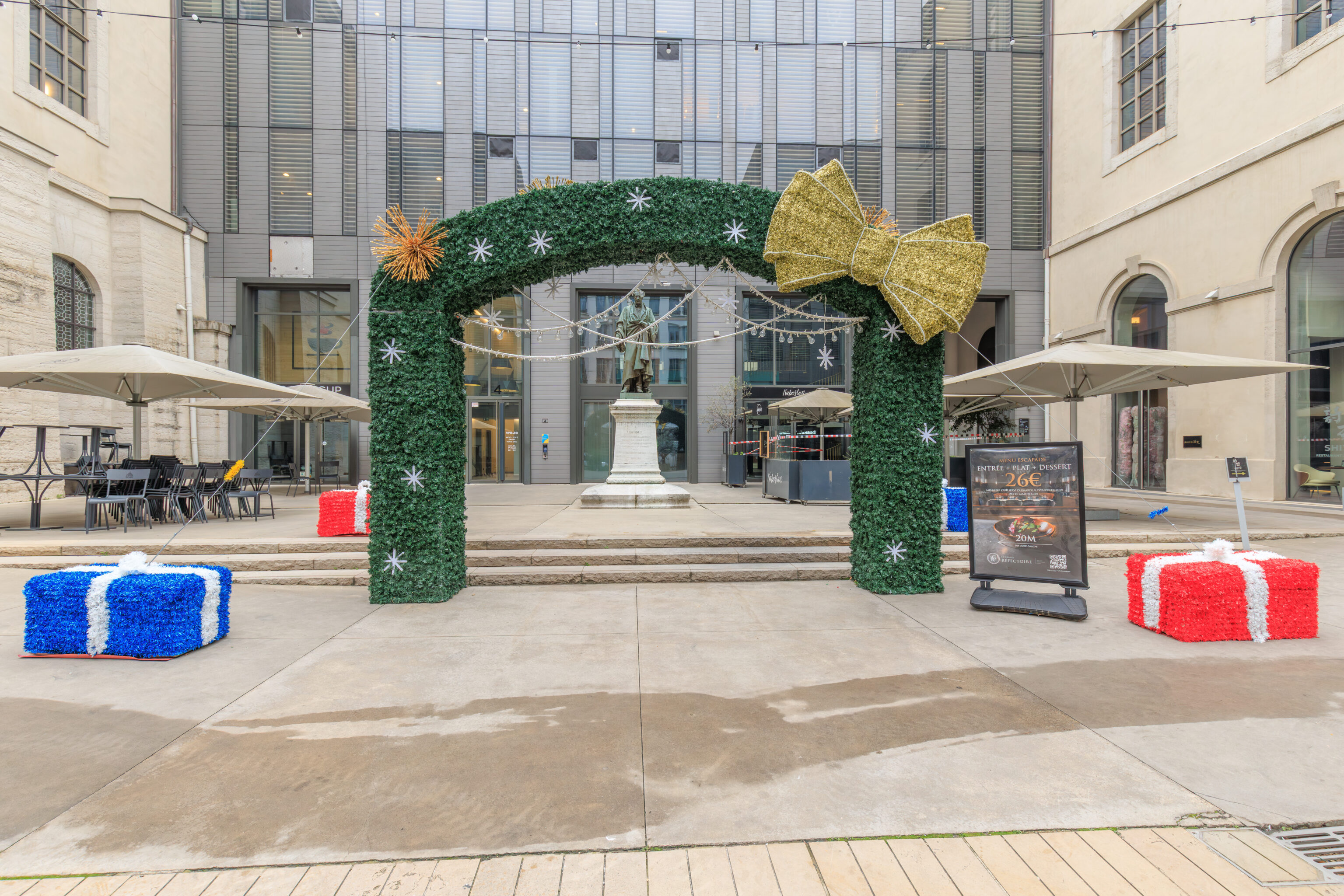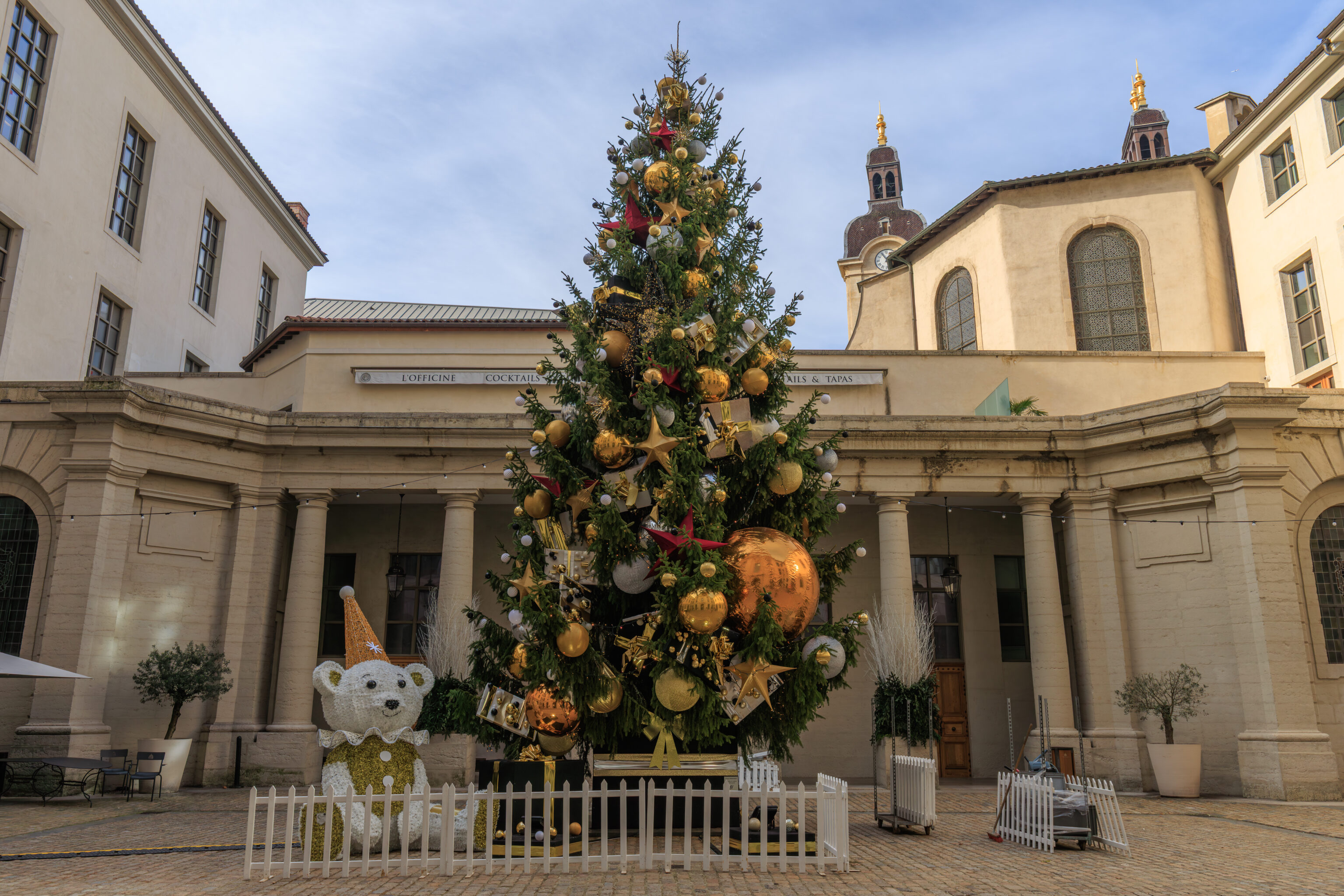 We decided to walk over to the Bellecour Metro station to the Vieux Lyon – Cathédrale Saint-Jean station. We walked by a decorative arch and some large presents on the ground by one of the Hôtel-Dieu entrances.