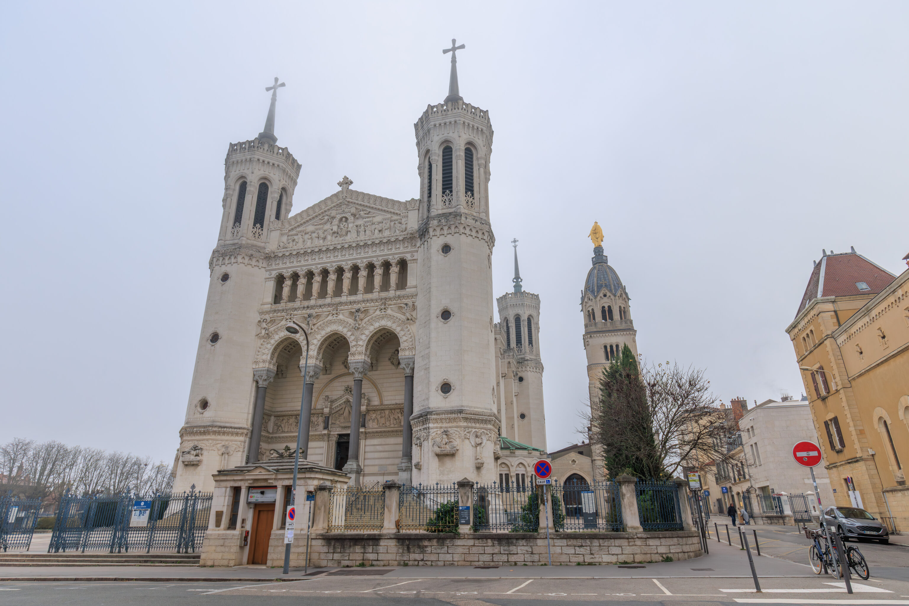 After arriving one stop away at Vieux Lyon – Cathédrale Saint-Jean, we took the funicular up to the Fourvière. We exited in front of the Basilique Notre-Dame de Fourvière. Having already visited on our second day in Lyon, we walked past it to the south.