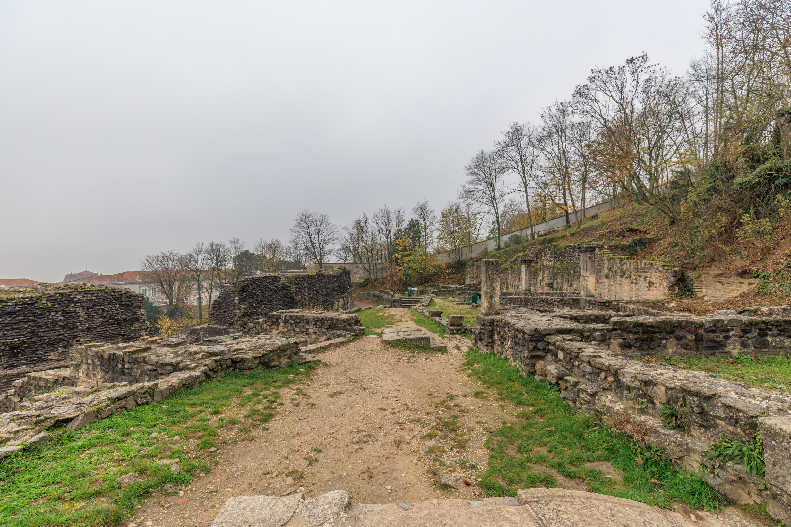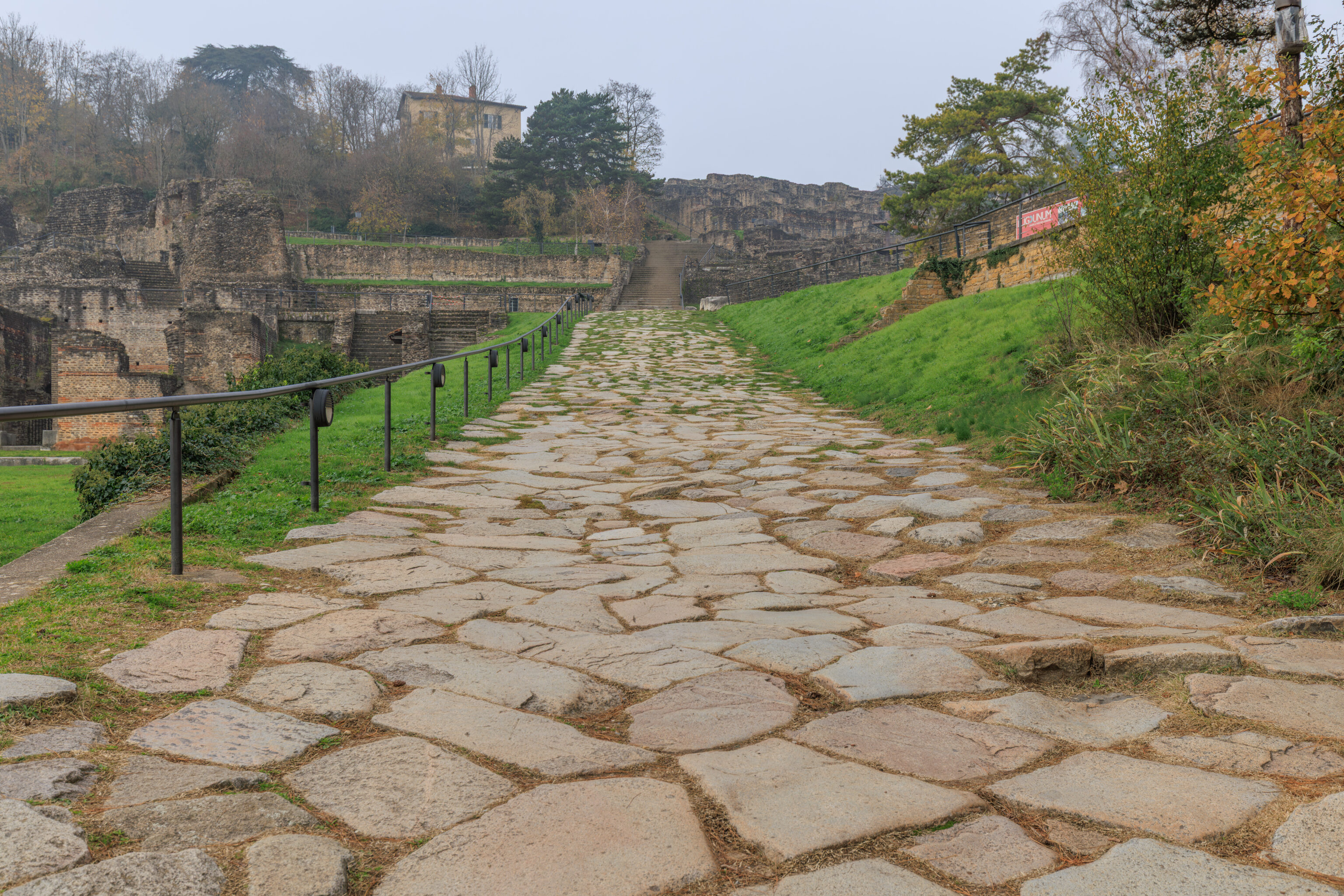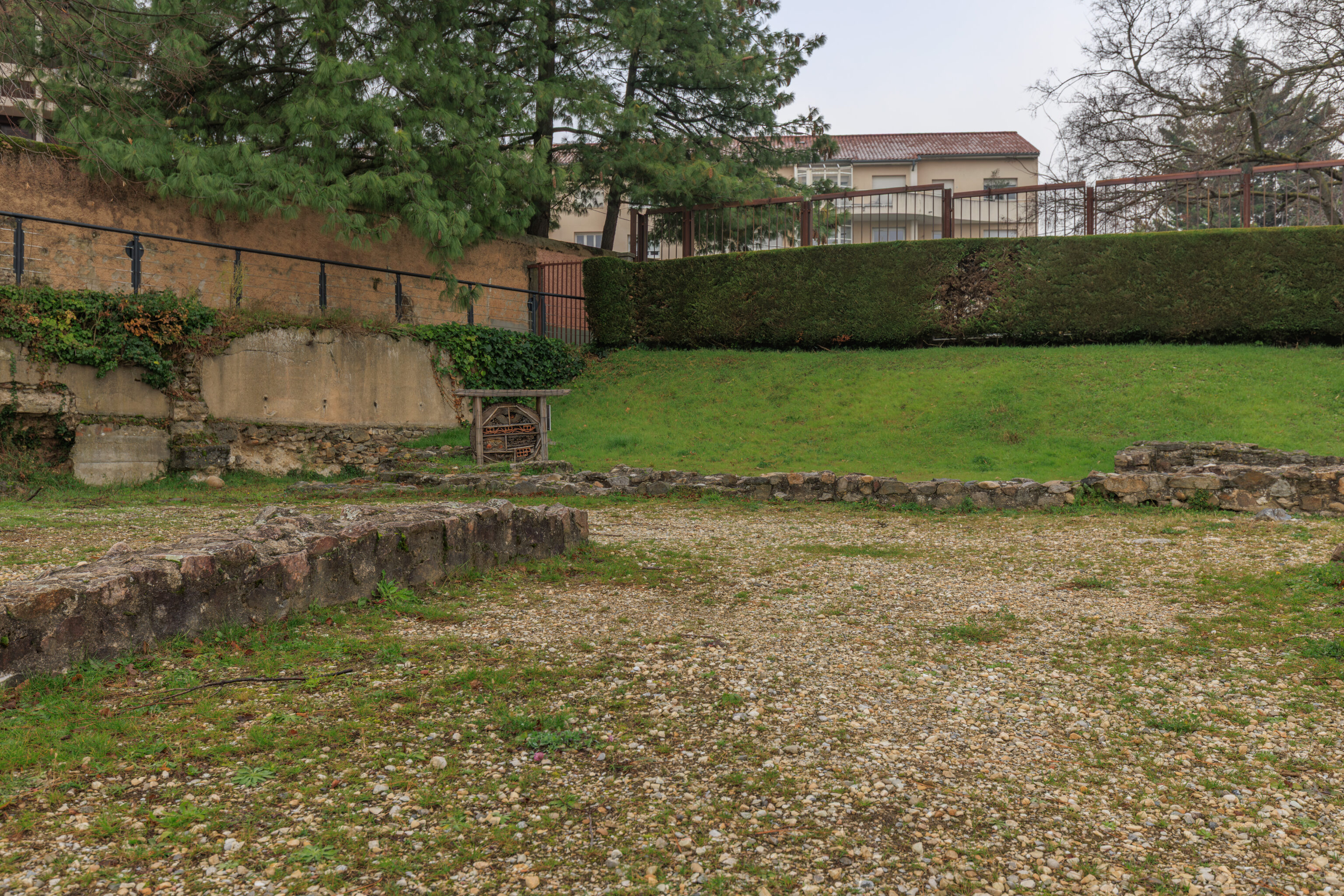 2.000 years ago, Fourvière hill was a heavily populated area built on terraced land and divided into quarters. The paved road you are standing on continues on past the current borders of the site. It led to a quarter that housed apublic therma, or bath complex, measuring 6600m2. as well as a prosperous housing area, whose vestiges are still visible in the archaeological gardens located on the modern day rue des Farges.