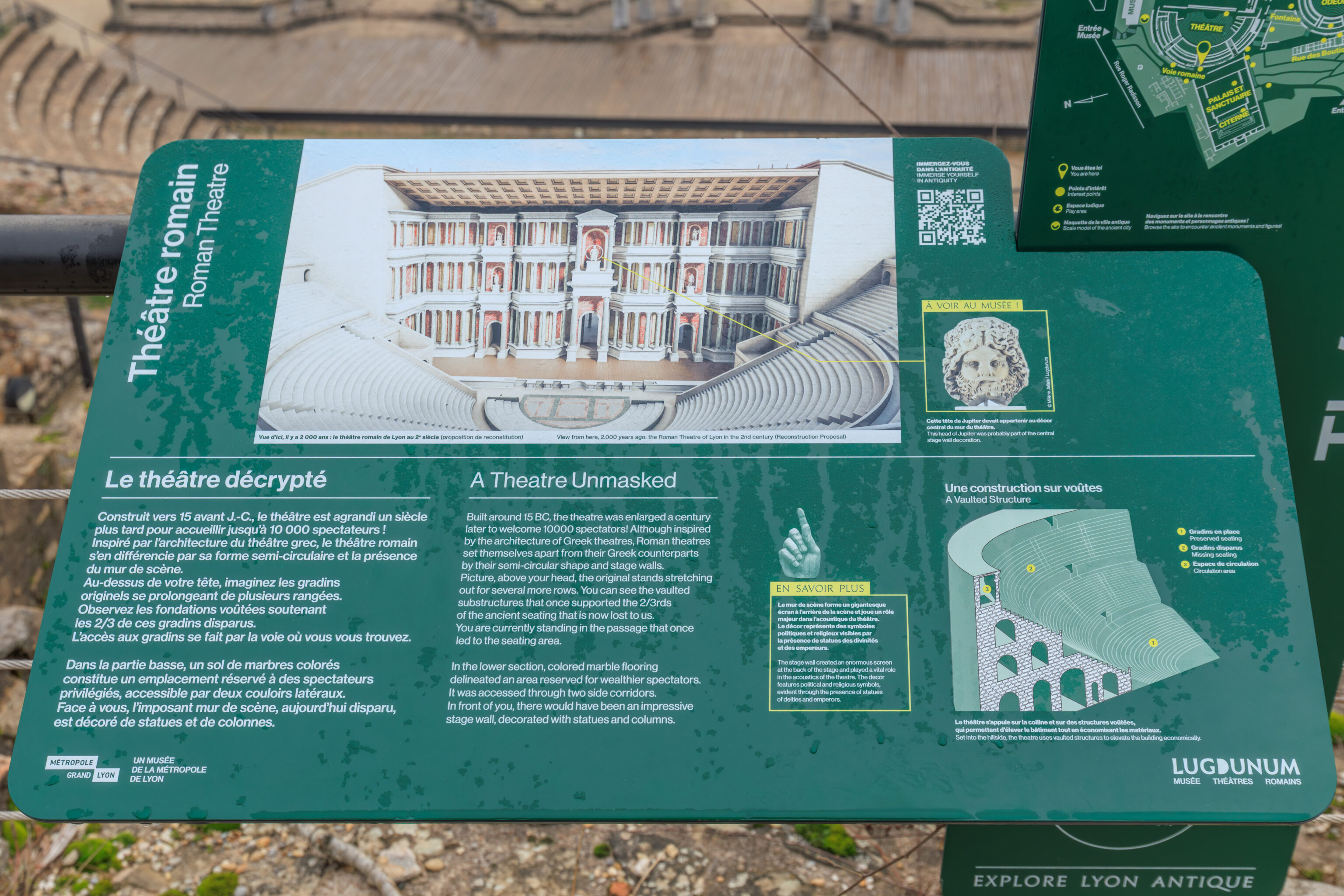 We were happy to see that the entrance into the Lugdunum Théâtres Romains (Roman Theatres) was open!