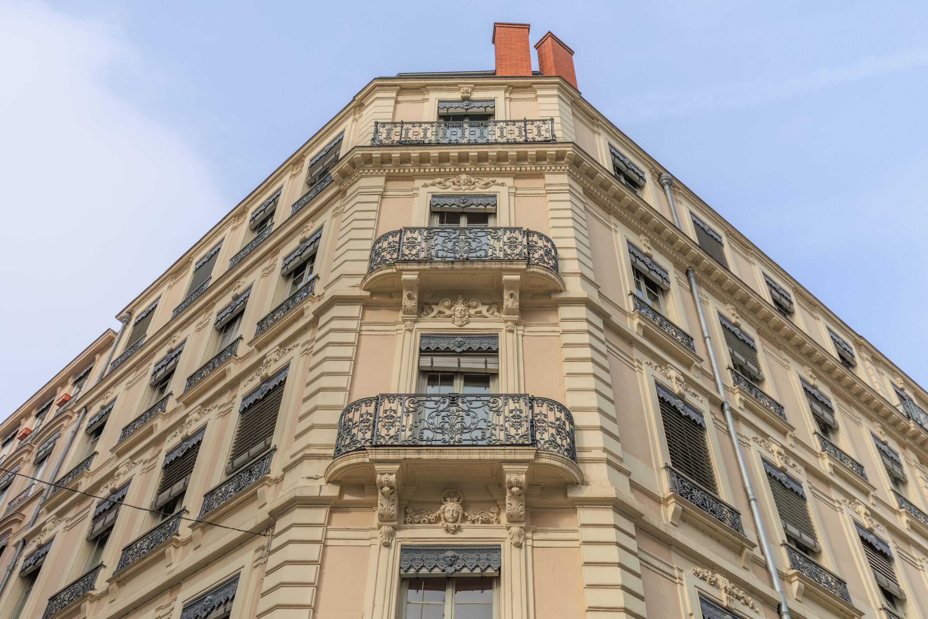 A building at the corner of Rue Tupin, where the bouchon is located.