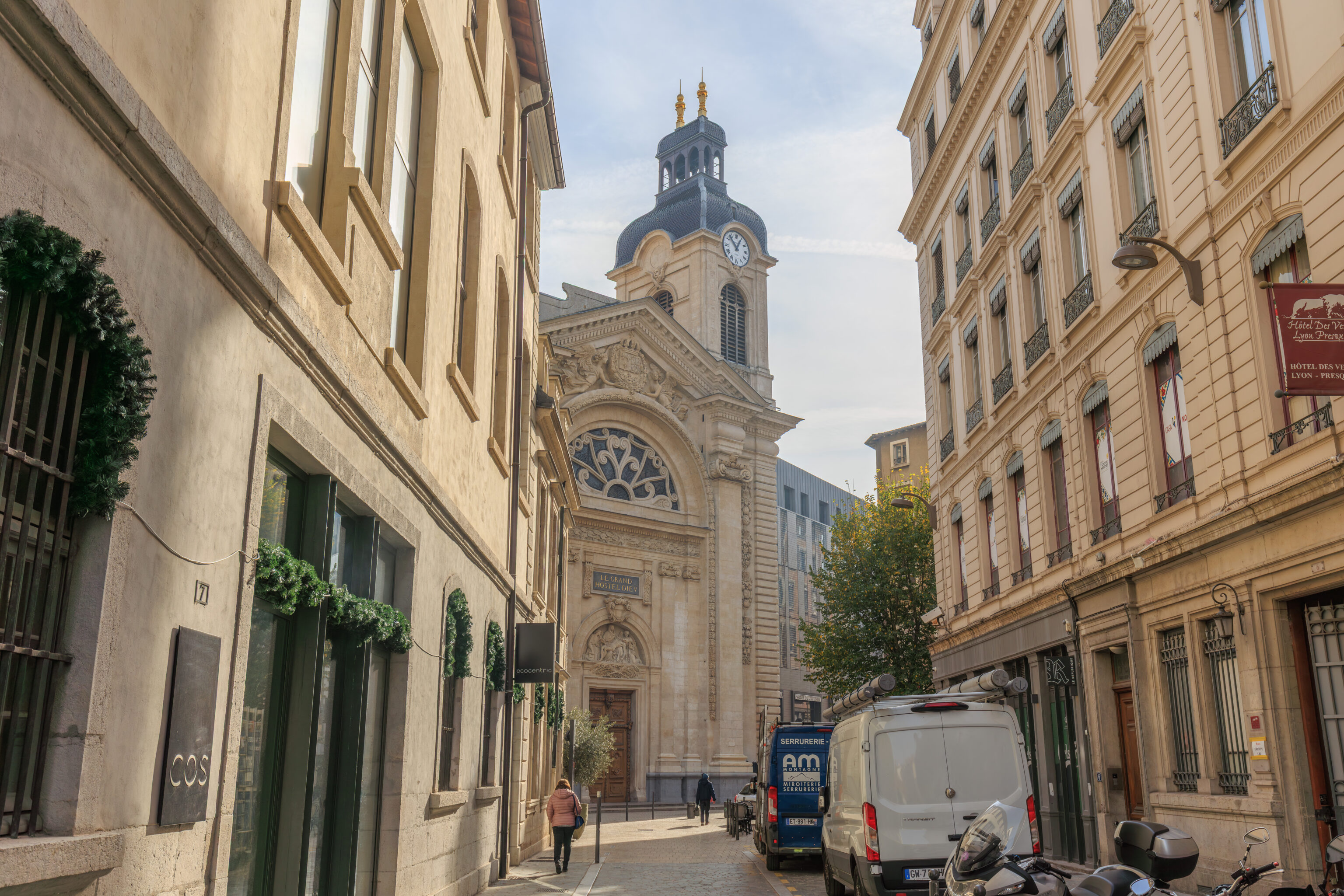 We descended via funicular and took the Metro over to Cordeliers, one stop north of Bellecour, the station closest to the InterContinental. We decided to see if we could get lunch at Bouchon Tupin, the restaurant we wanted to eat at last night. We exited the Metro by this building, the Palais de la Bourse. It was built in the mid-19th century for commerce related purposes and currently houses the Chamber of Commerce and Industry.