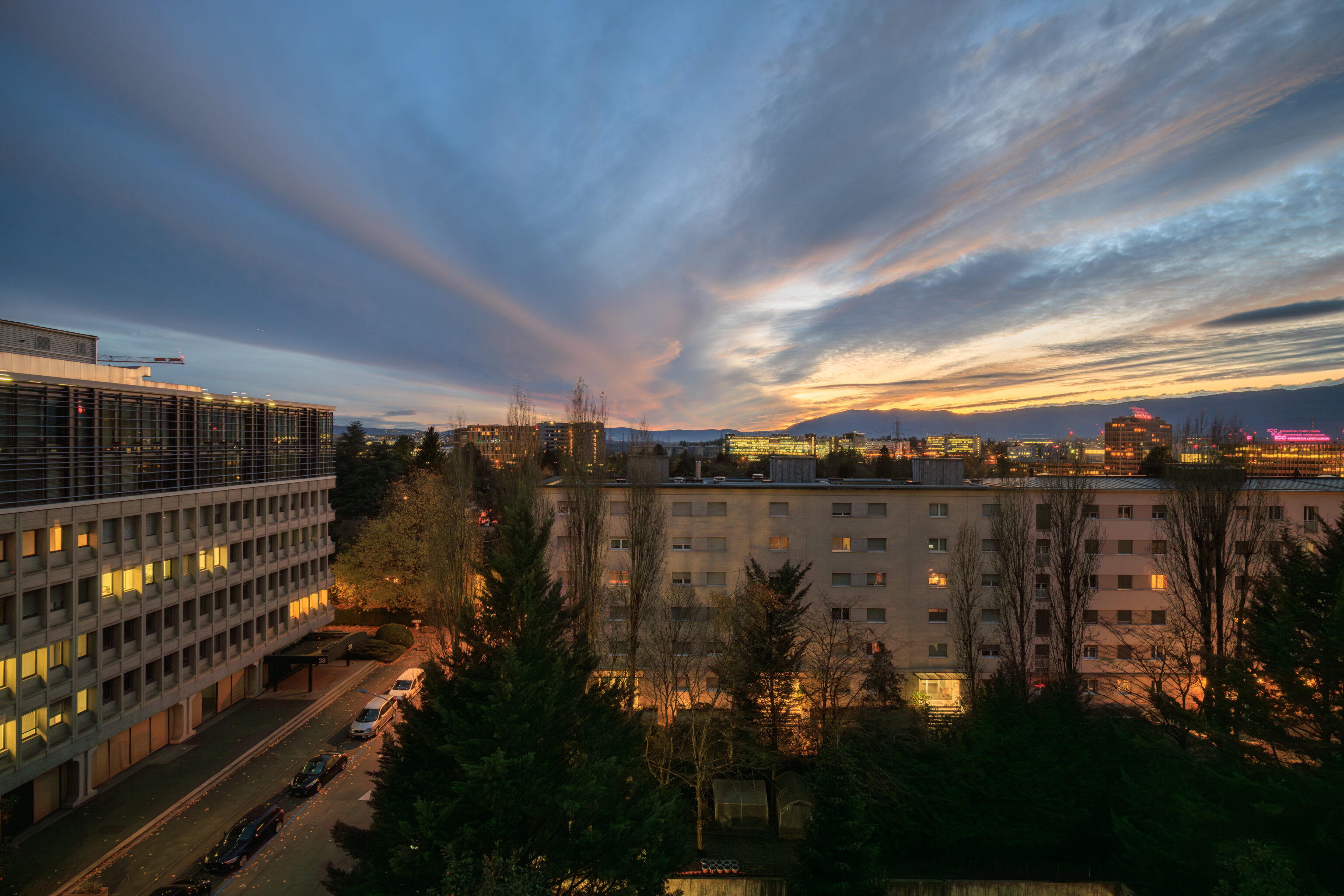 After arriving at Geneva Cornavin, the city’s main train station, we caught a bus to the Meyrin, De Joinville stop. The Crowne Plaza Geneva was basically right across the street.