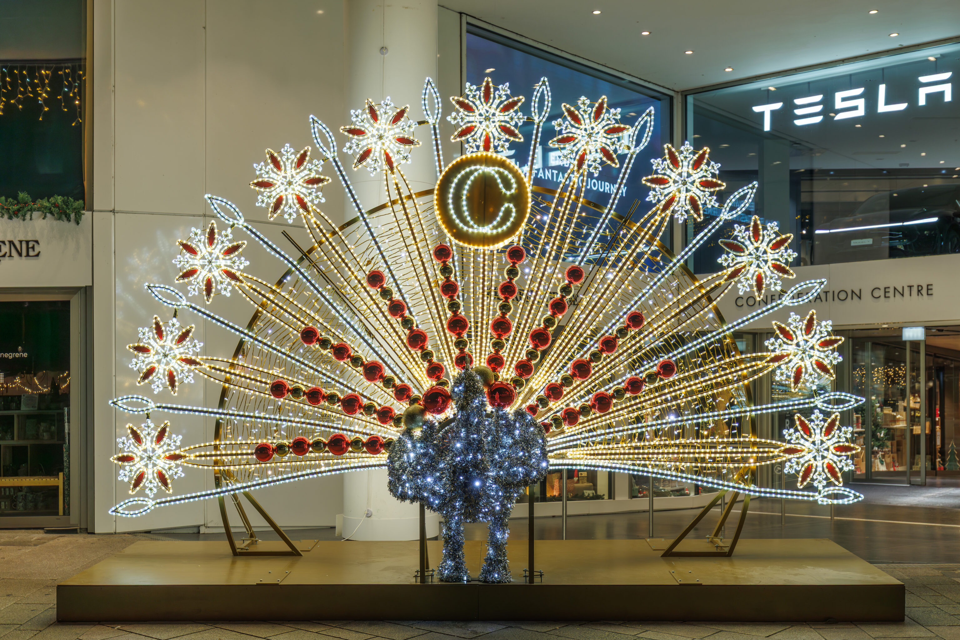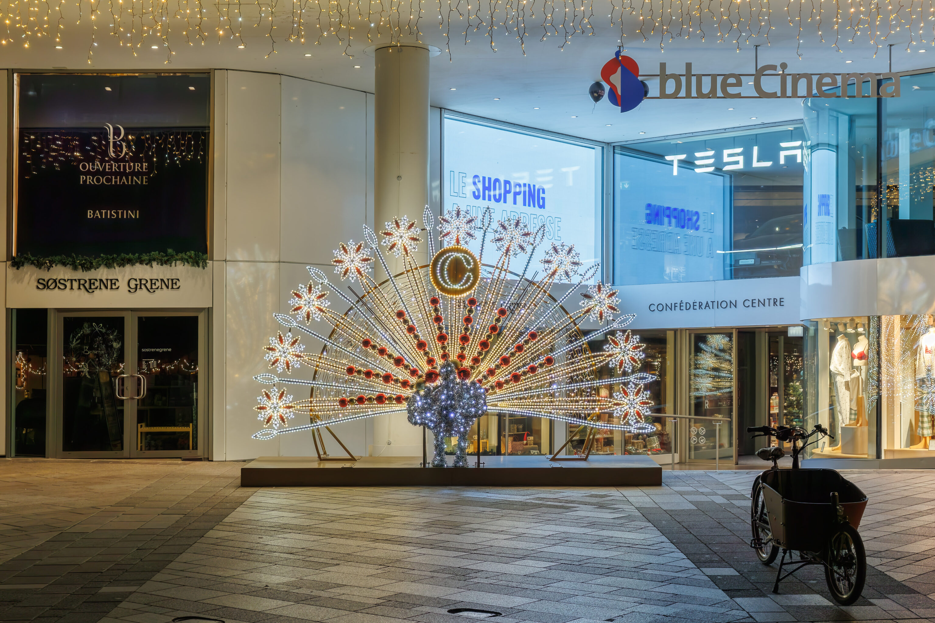 We passed by this lighted peacock in front of the Confédération Centre mall.