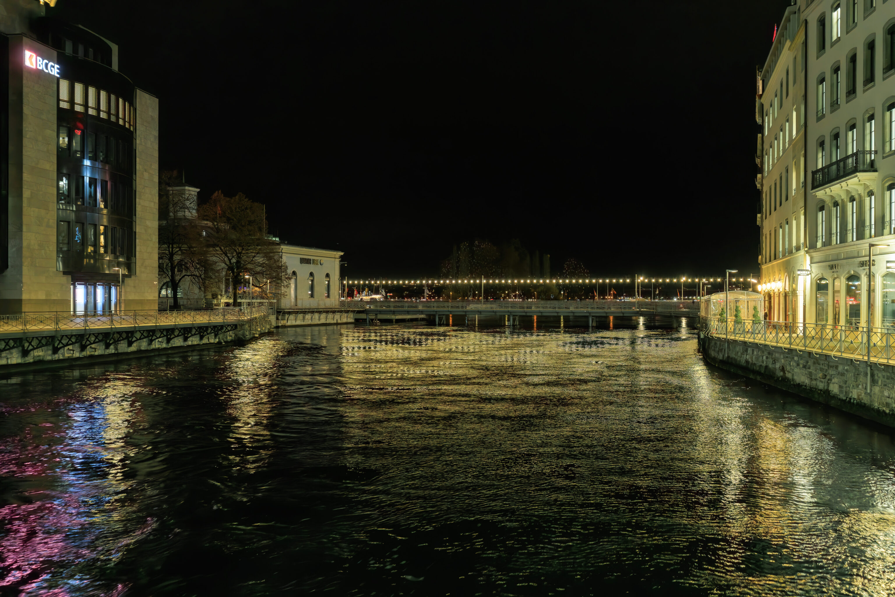 The view looking up the Rhône towards the nearby Lake Geneva, which is a few bridges away.